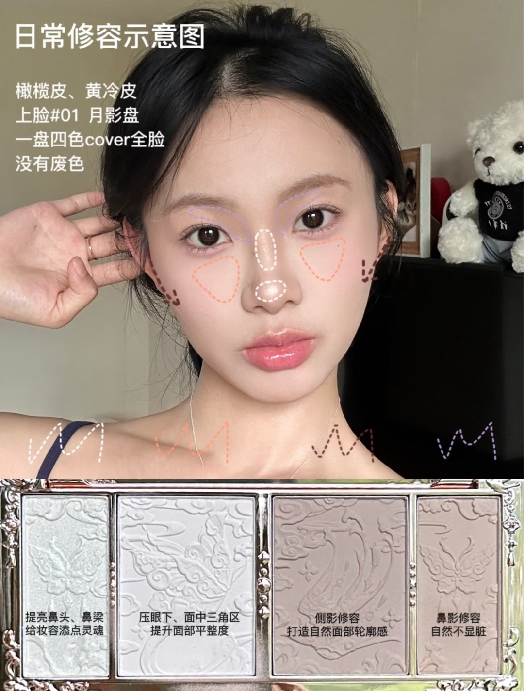 Flower Knows Butterfly Cloud Shoulder Embossed Highlighter and Contour Palette Matte Natural Brightening Pearlescent 3D Nose Shadow
