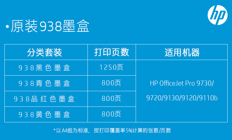 HP HP printer official original 938 black ink cartridge color ink cartridge suitable for HP OfficeJet Pro 9110b 9120 9130 9720 9730 printer genuine