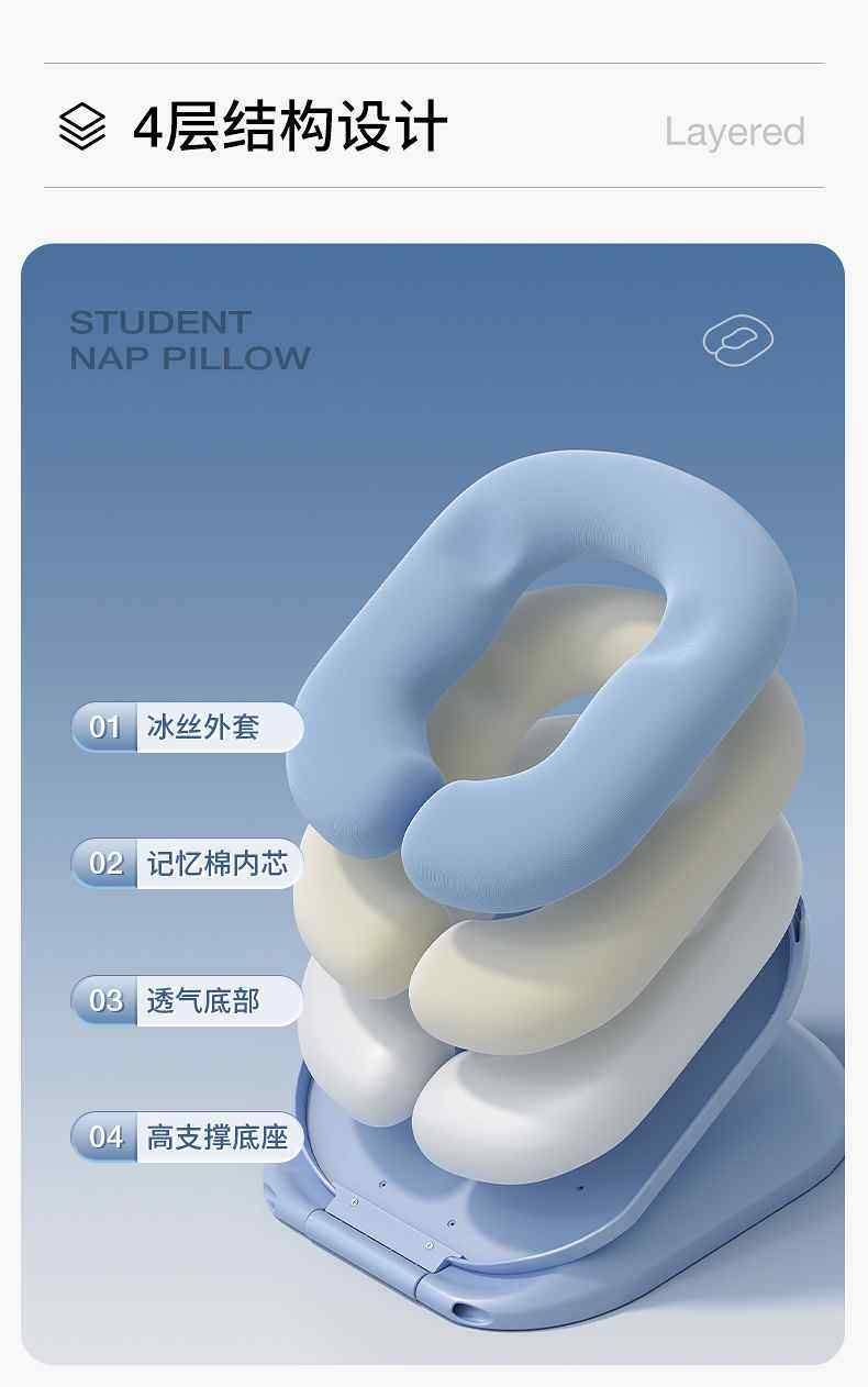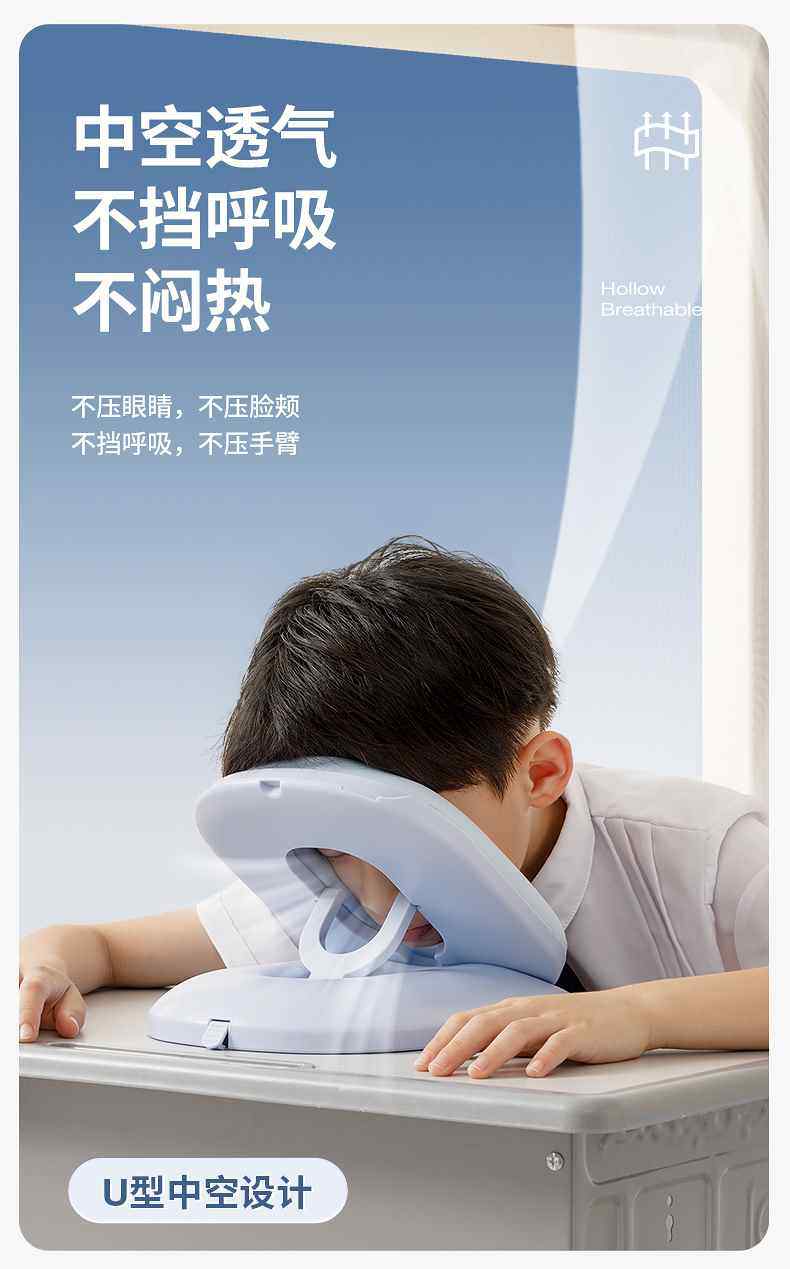 High-end nap pillow for children to sleep on their stomachs, elementary school students' lunch break artifact, ice silk memory foam, portable classroom sleeping pillows