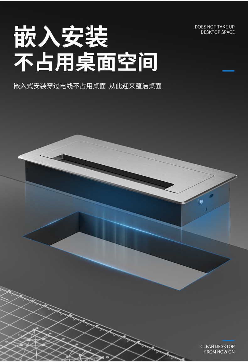 Aluminum alloy buffer threading box square computer desk wire hole cover desktop opening decorative hole cover desk hole