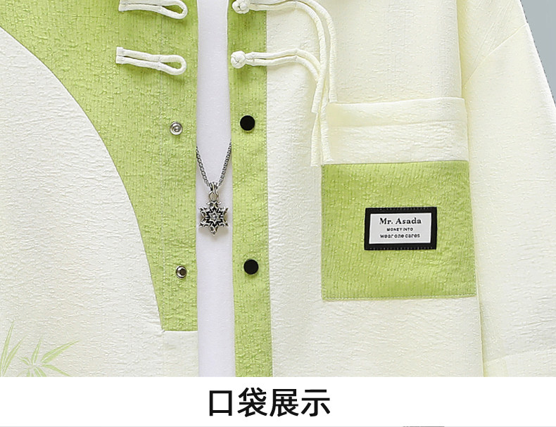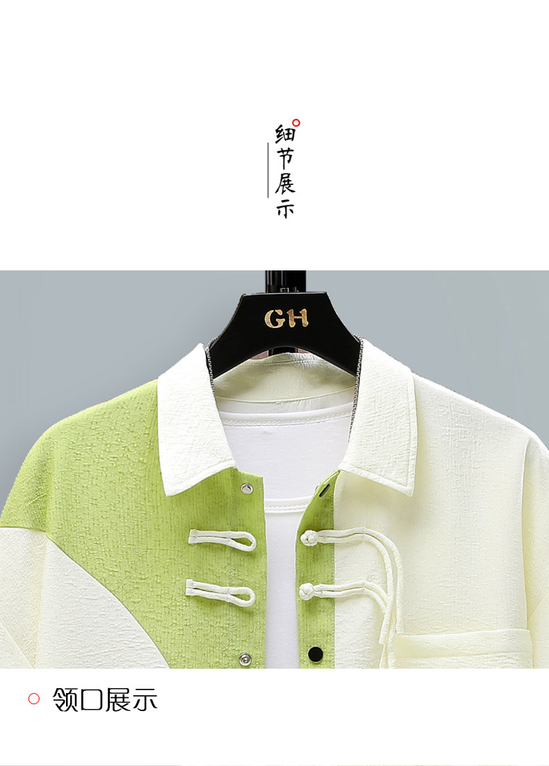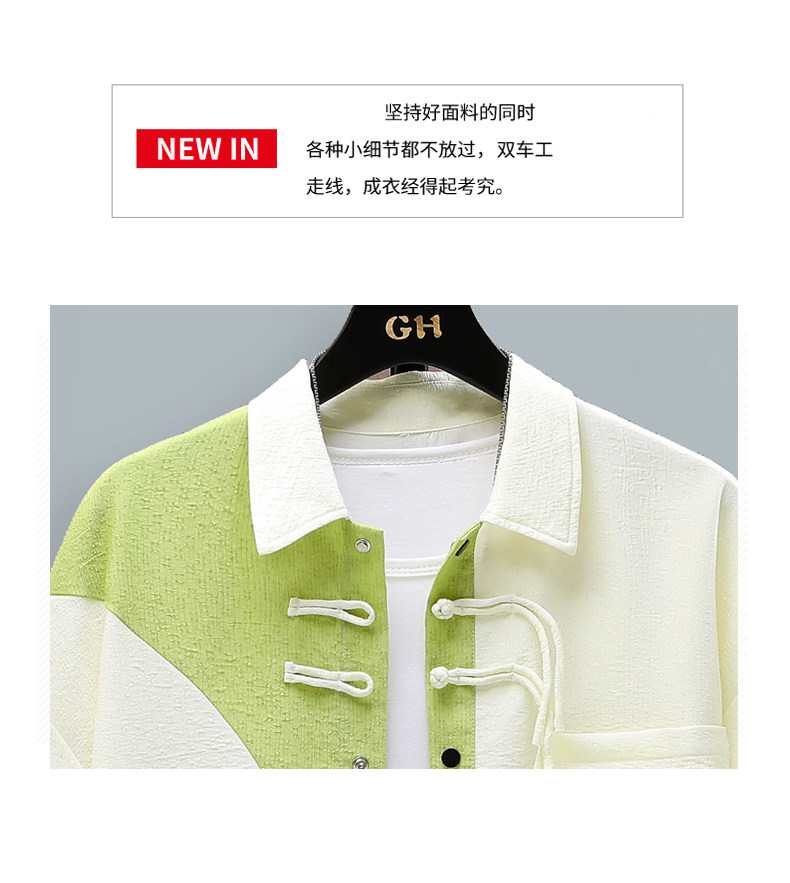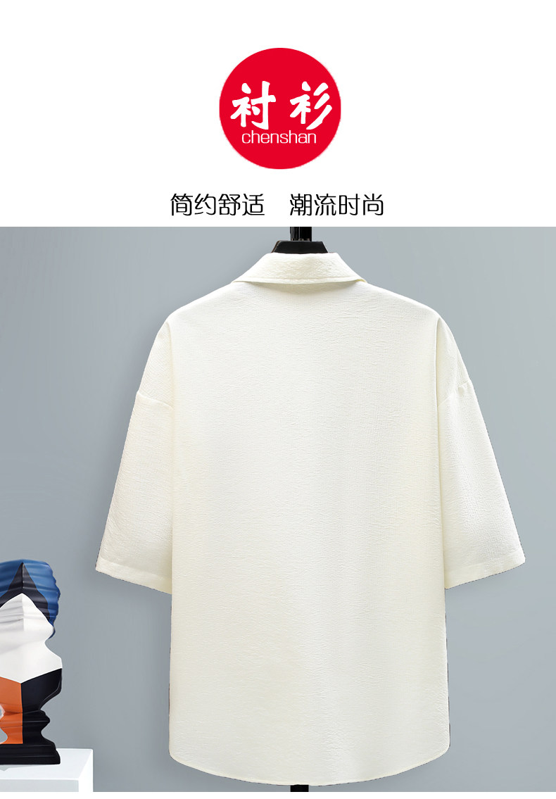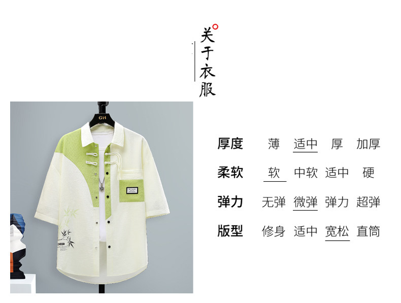 Chinese Style Short-Sleeved Shirt for Men, Summer Loose Fit, Trendy and Cool, Five-Quarter Sleeves, New Chinese Style, Color-Blocking, Versatile and Stylish Shirt