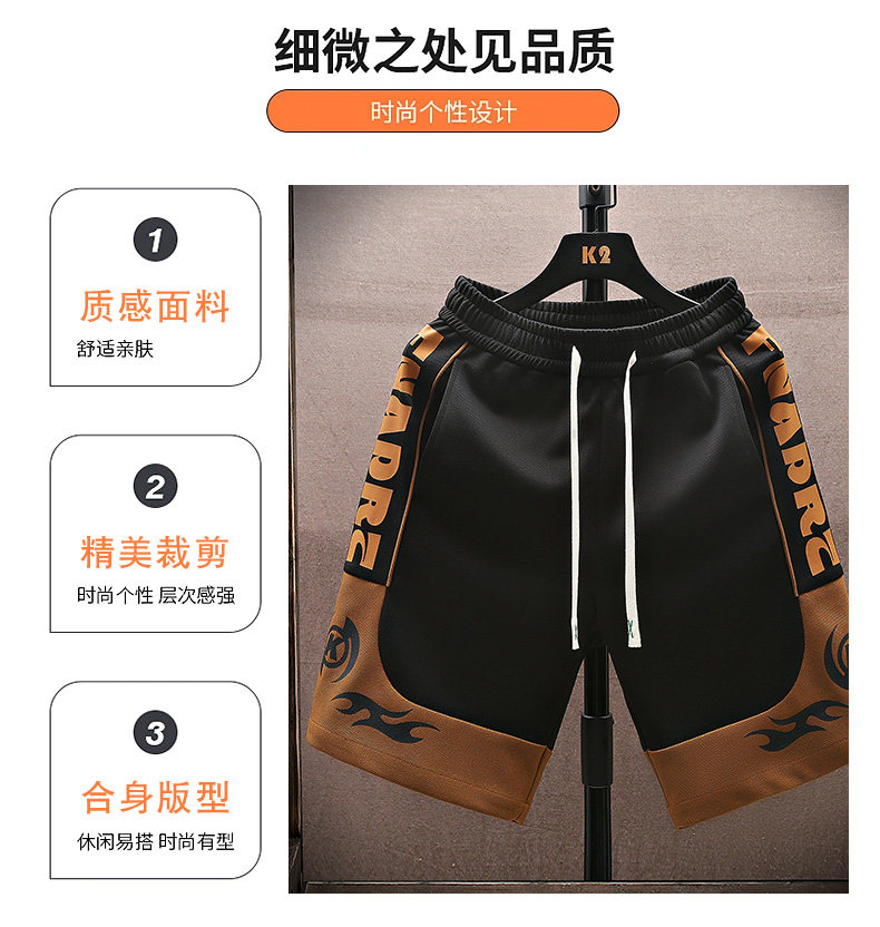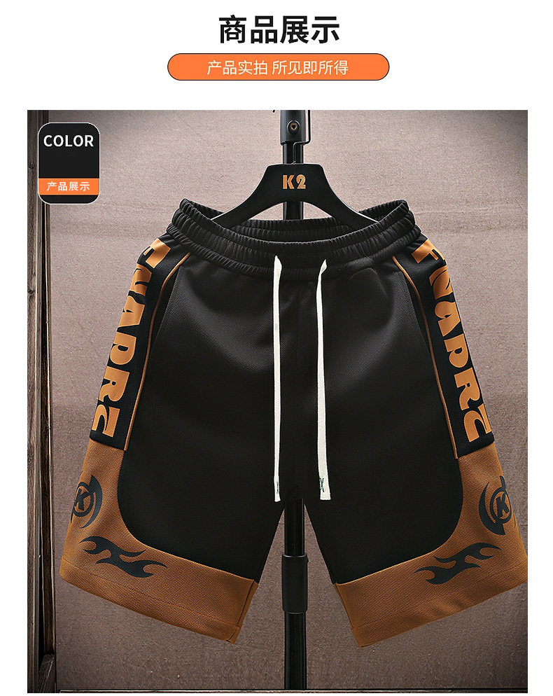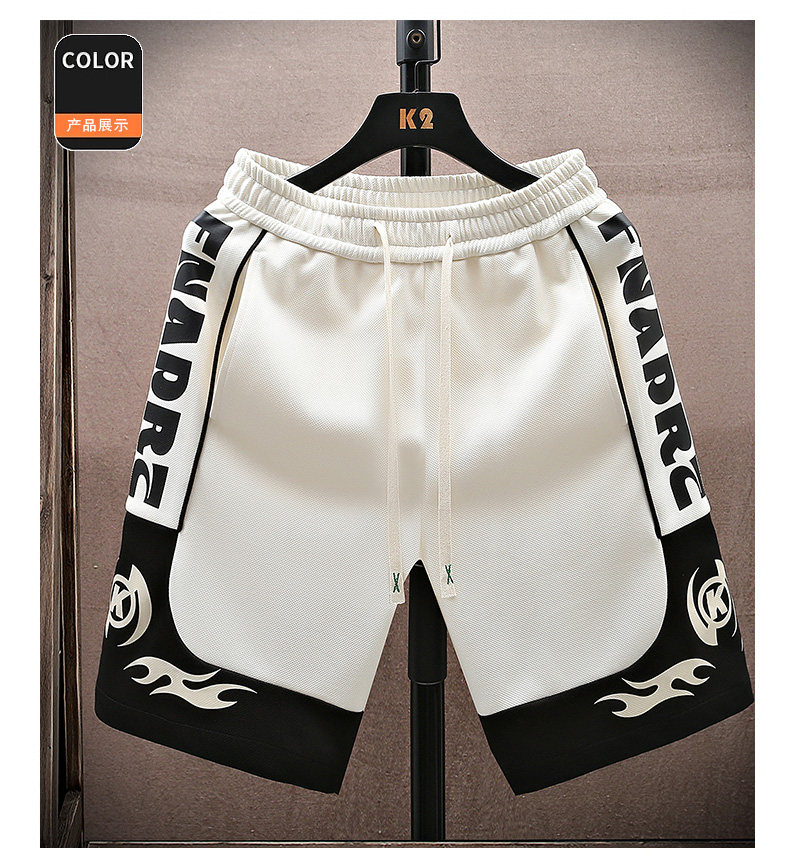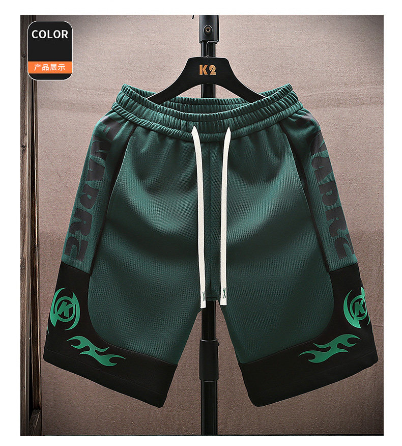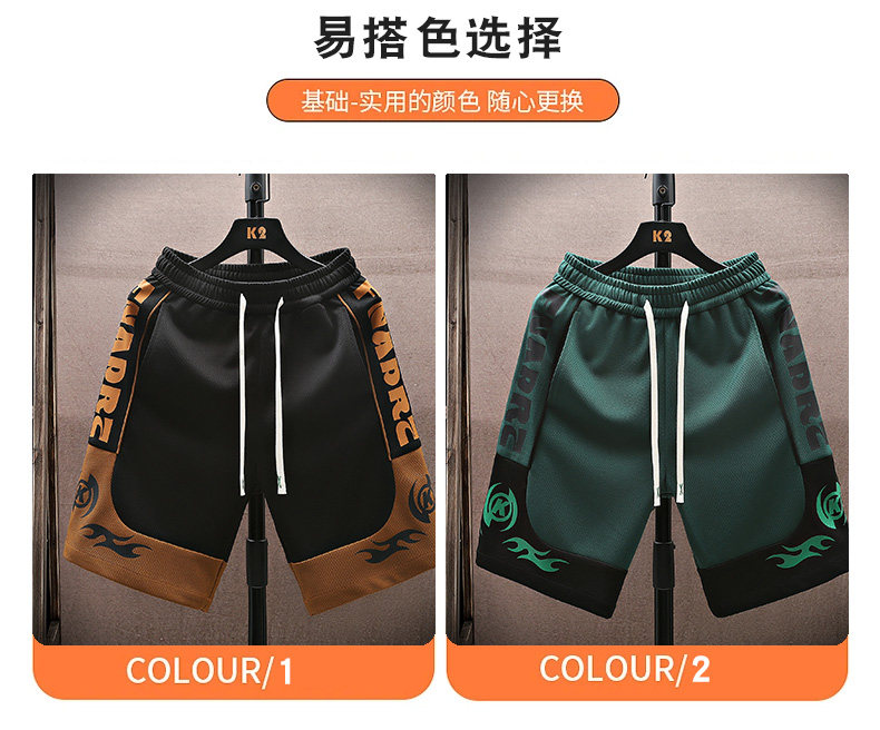 Color-Blocked Basketball Shorts for Men, Summer Thin Ice Silk Casual Sports Shorts, Trendy Loose Five-Point Mid-Length Shorts
