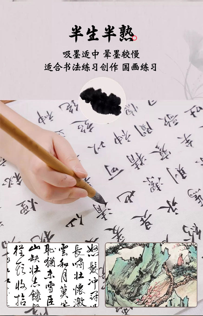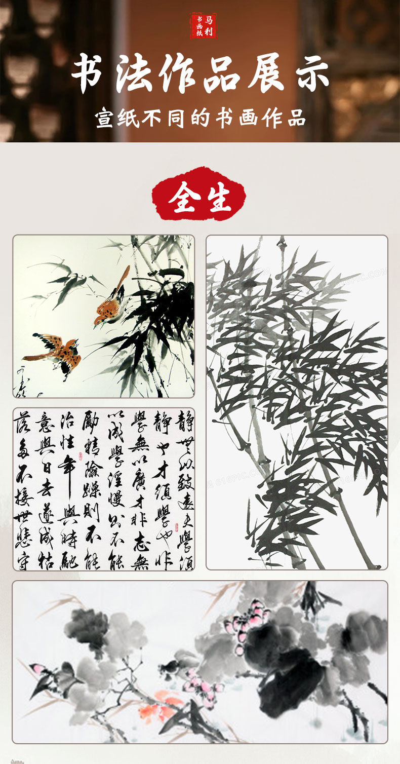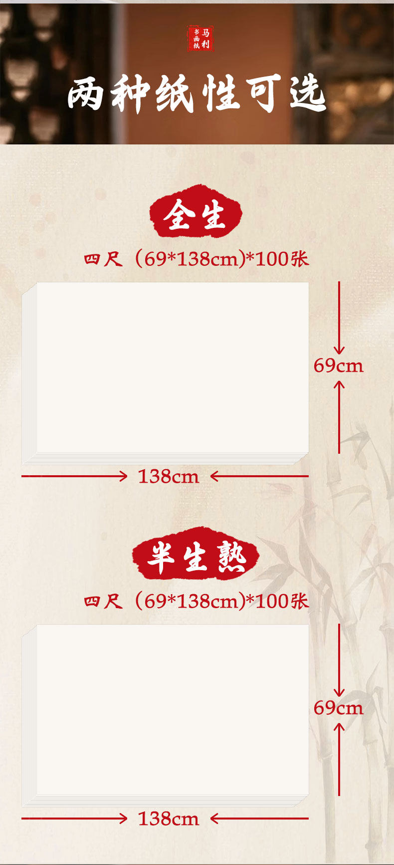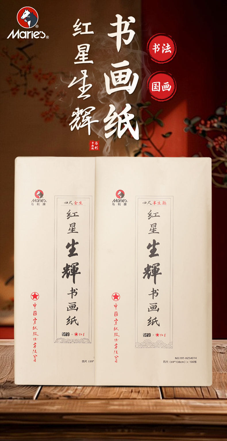 Marley Brand Red Star Xuan Paper for Calligraphy and Painting, 100 Sheets, 133.2cm All-Natural Semi-Processed and Fully Processed Xuan Paper, Special for Chinese Painting, Calligraphy, Double-Folded, Three-Folded, Whole Sheets, Beginner's Soft Brush Writing, Thickened Practice Paper