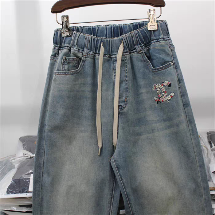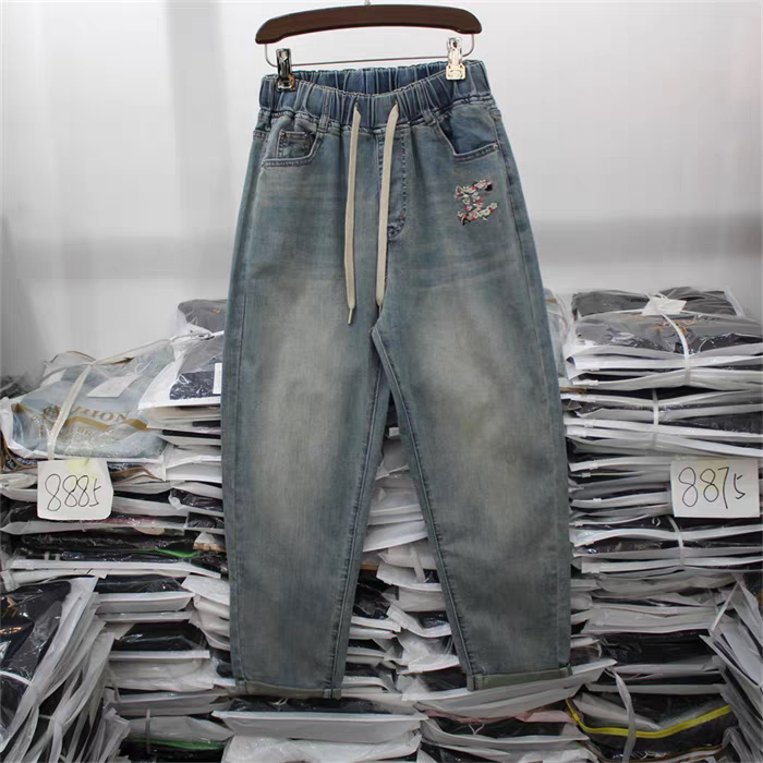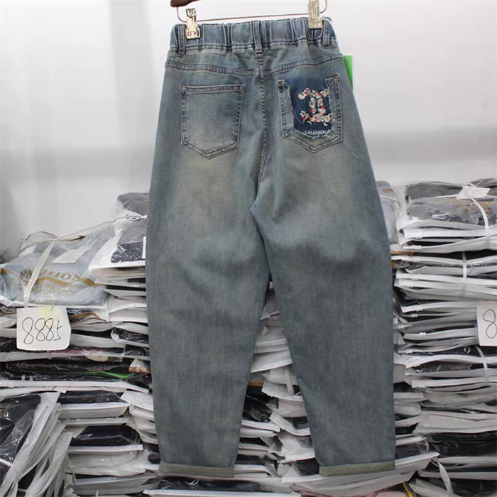 Yimi counter genuine YK067 large size spring and summer new style plus fat plus size jeans dad pants harem pants for women