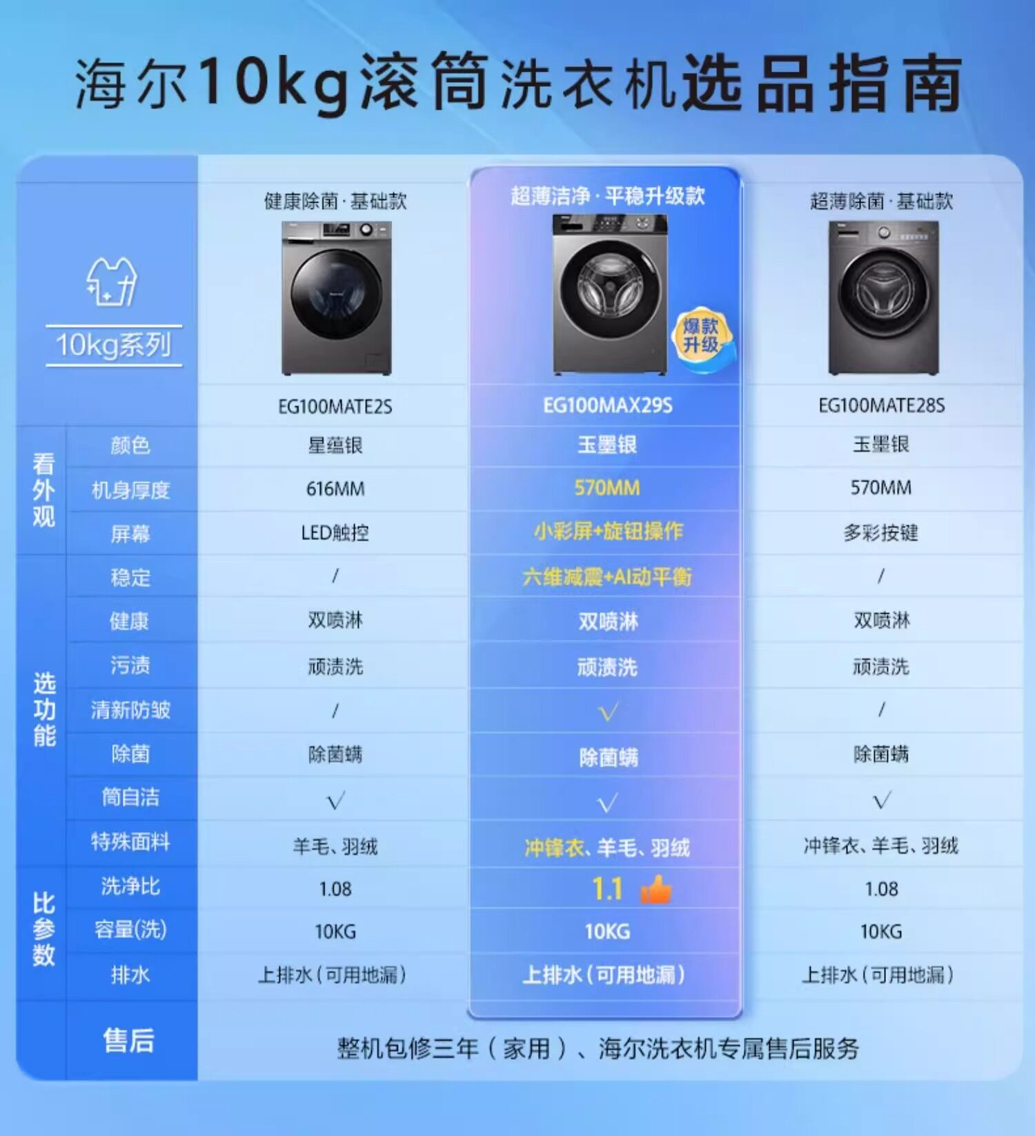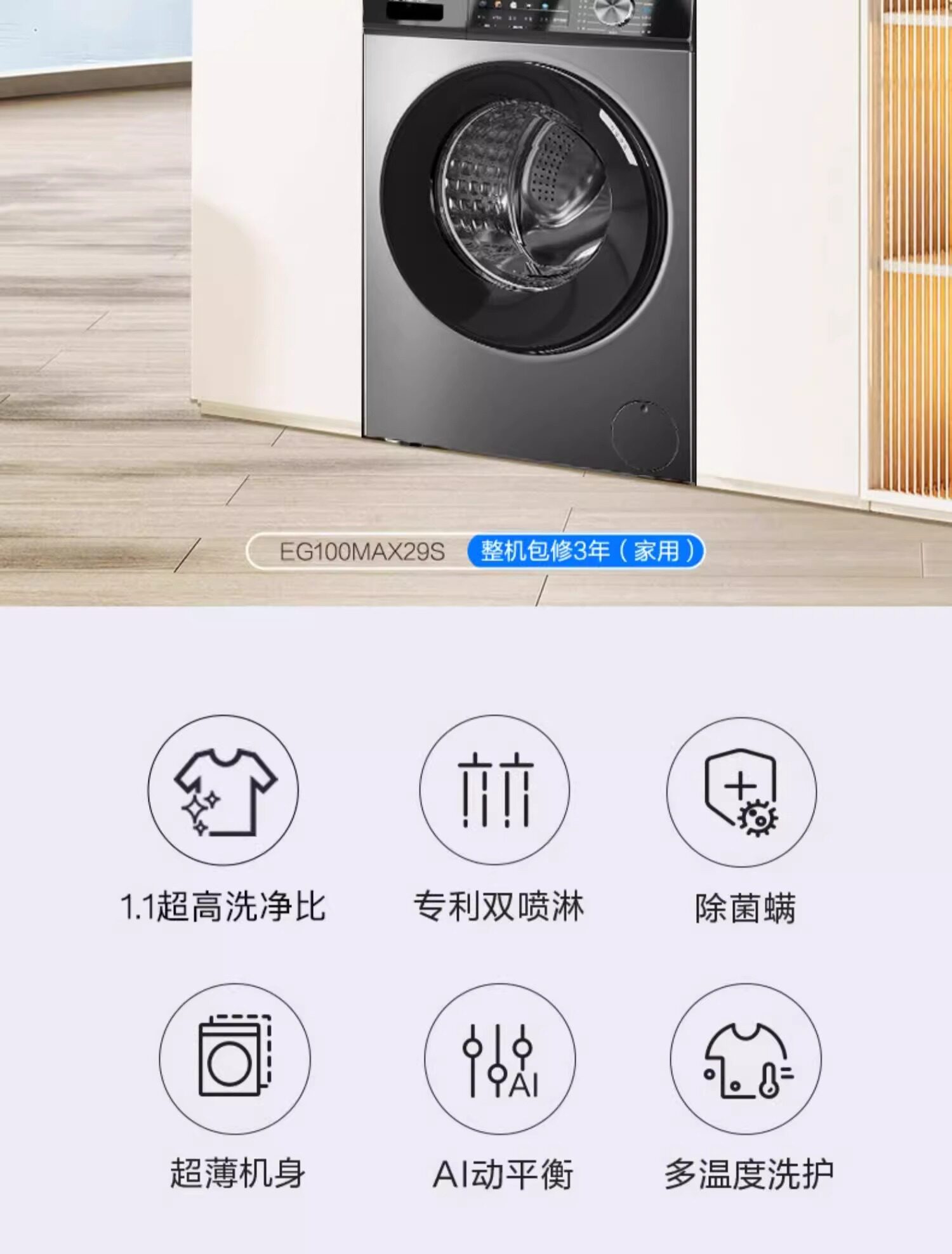 Haier Eg100Max29S Drum Washing Machine for Home Use, Fully Automatic, Ultra-Thin, 10kg [1.1 Washing Efficiency]