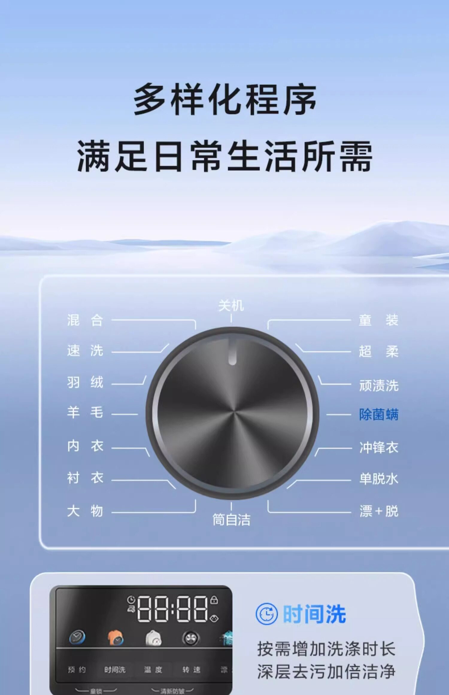 Laundry Program Super Soft Wash,Stubborn Stain Wash,Underwear Wash,Mixed Wash,Rinse,Single Dehydration,Big Thing,Down Wash,Wool Wash