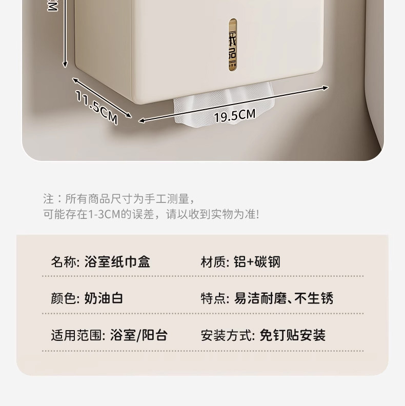 Sort by color Z1 Plus tissue box,Z1 cream paper towel holder,Z1 cream white double layer paper towel holder,F1 Plus cream white three-piece set (rounded tray storage rack 50cm + tissue box + three-layer tissue storage rack)