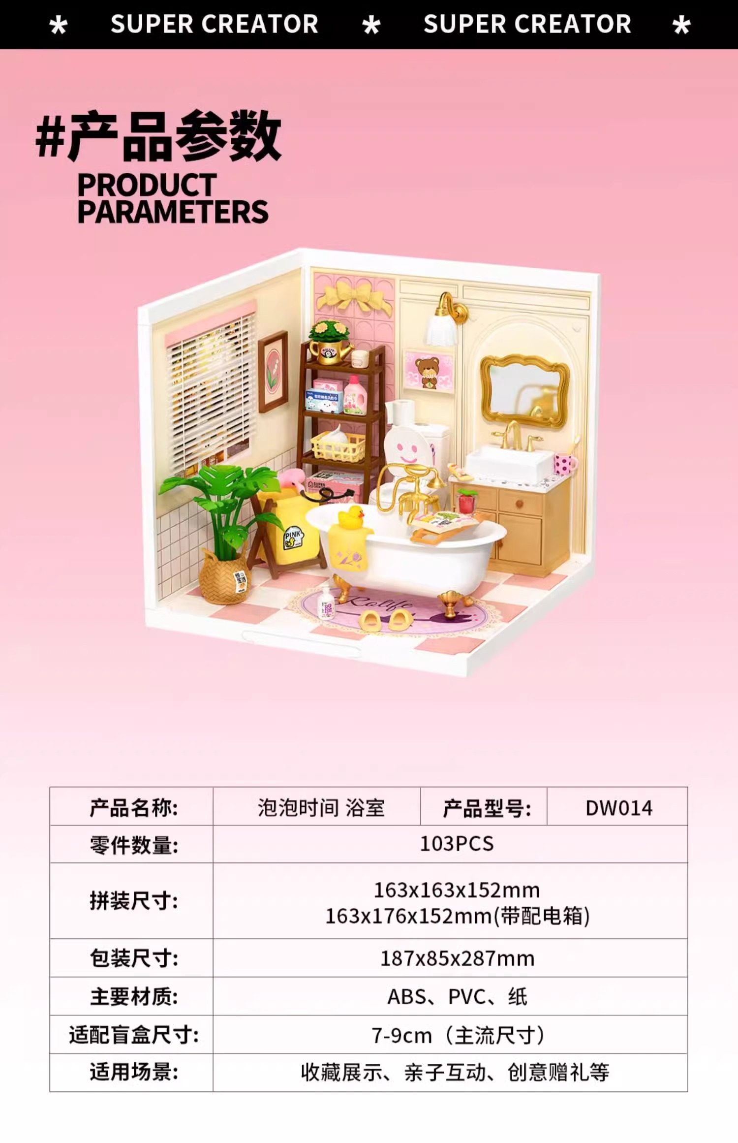 Rolife Ruolai Super World Bathroom DIY House Puzzle Assembly Model Handmade Building Blocks Children's Day Gift