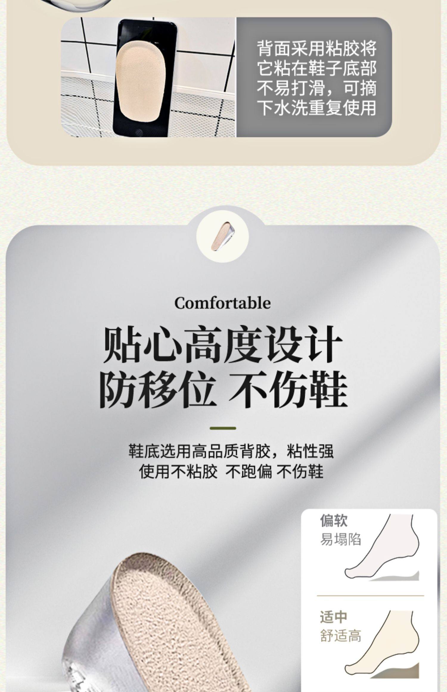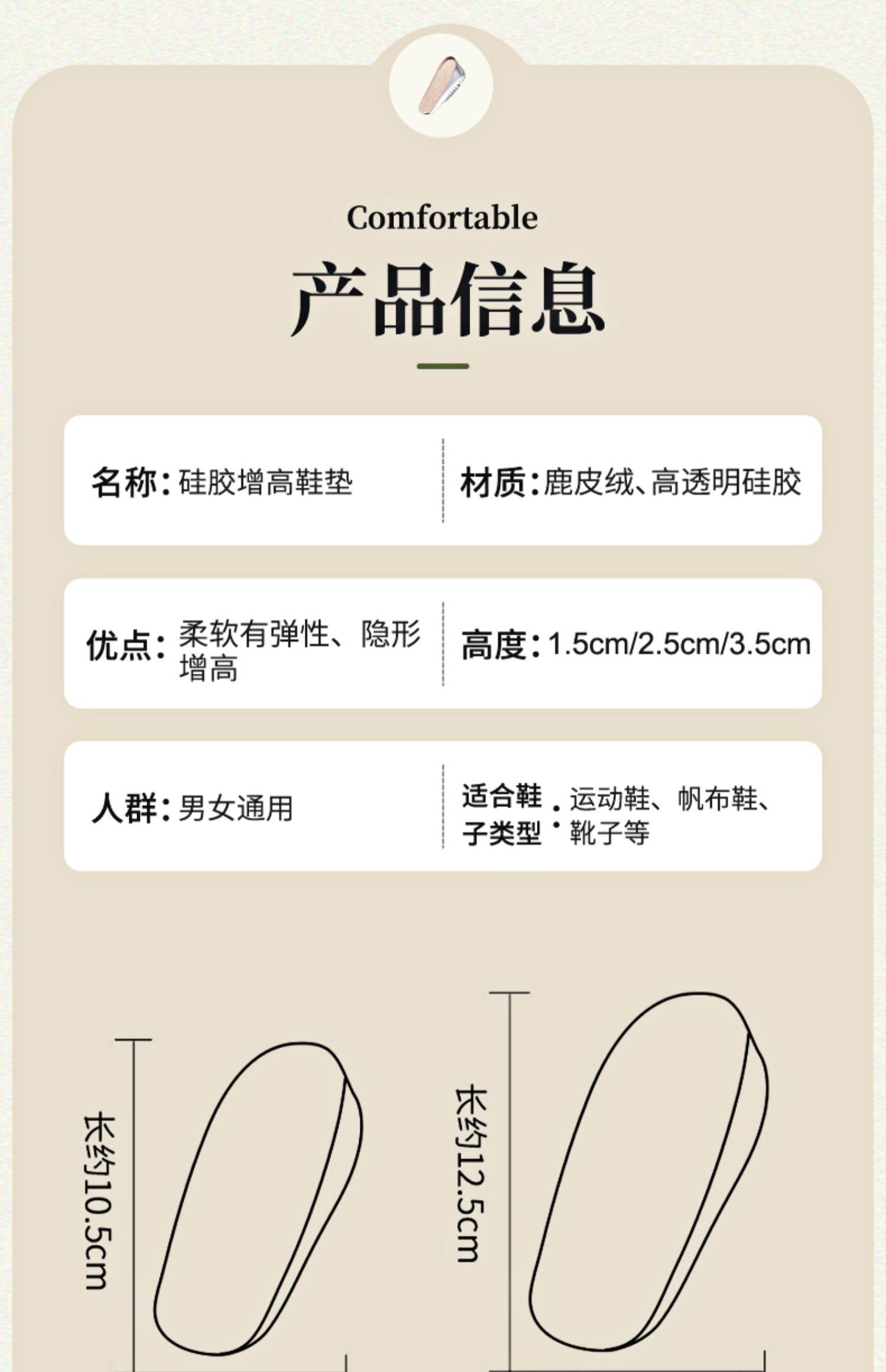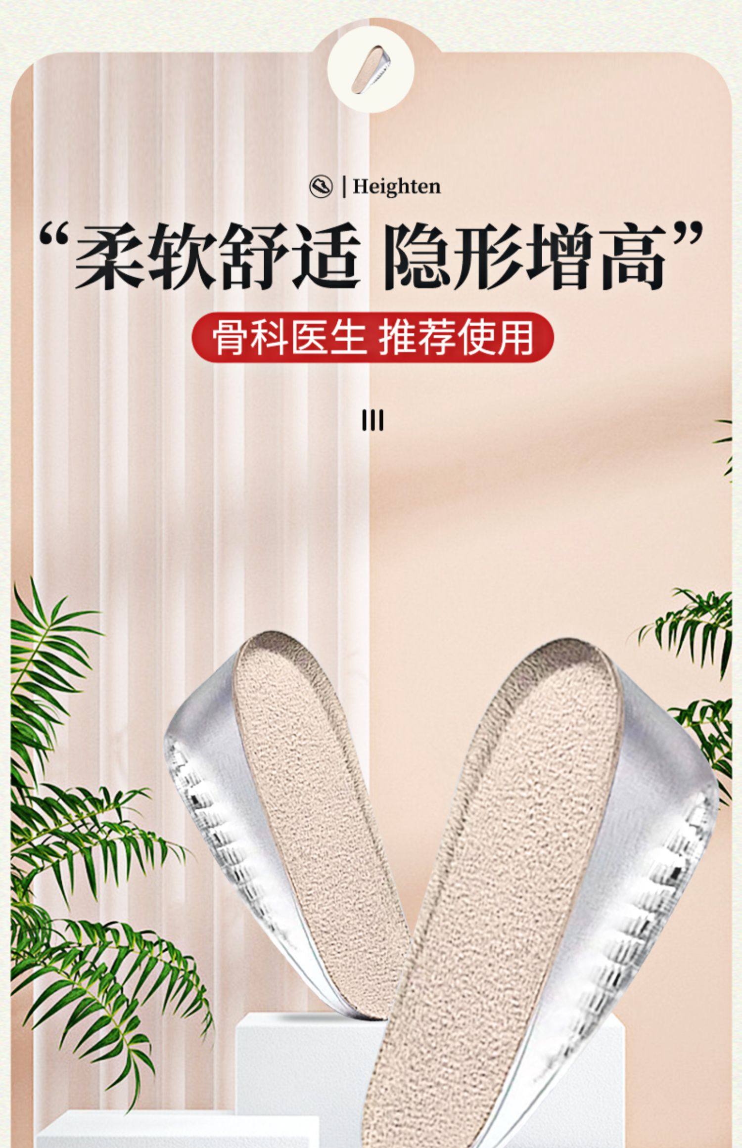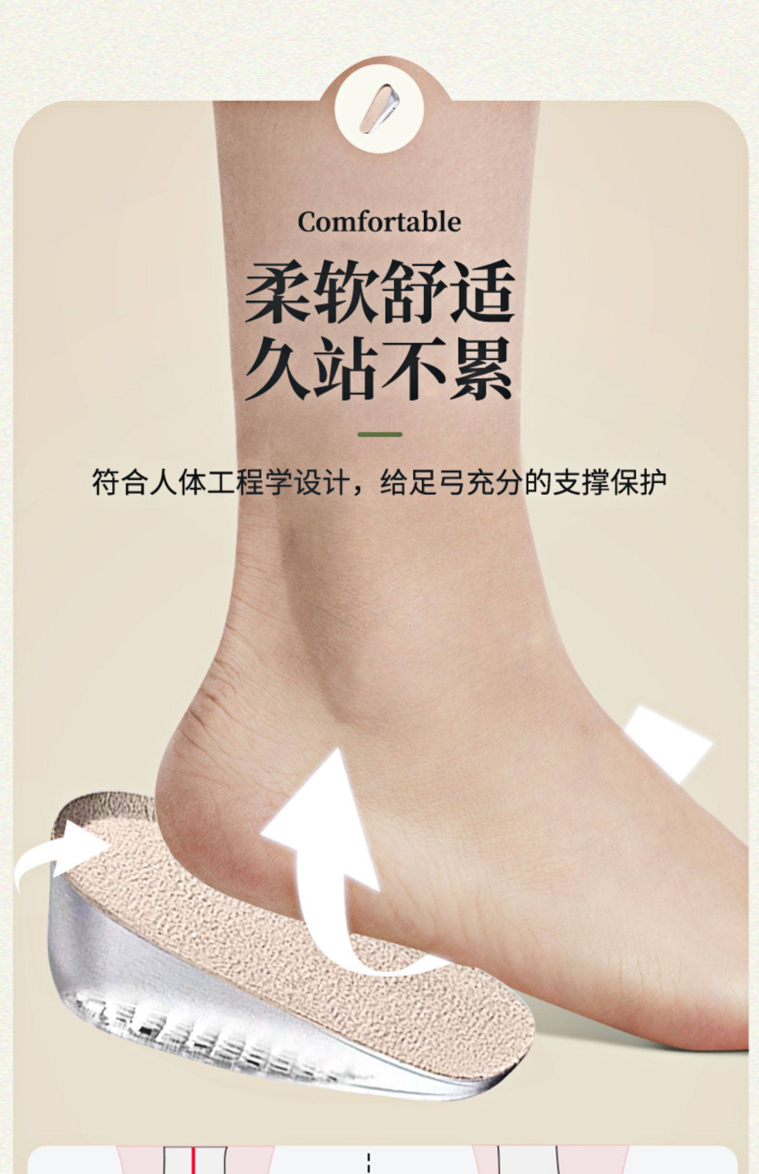 Japan's domestic height-increasing insoles for women's tired feet, invisible silicone half-cushion Martin boots, men's heel pads, comfortable heightening pads