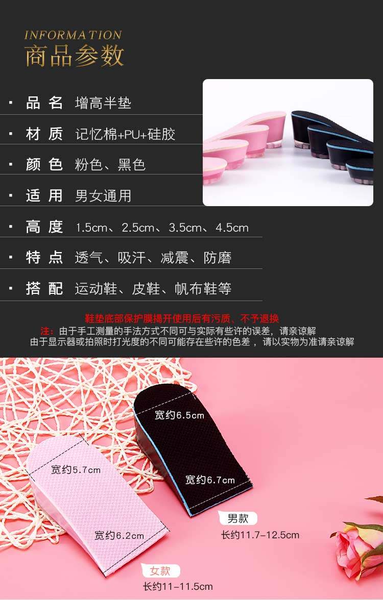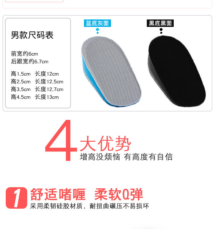 Silicone Height-Increasing Insoles for Men and Women, Invisible Inner Height-Increasing Pads, Heel Half-Pads for Martin Boots, Comfortable and Non-Collapsing