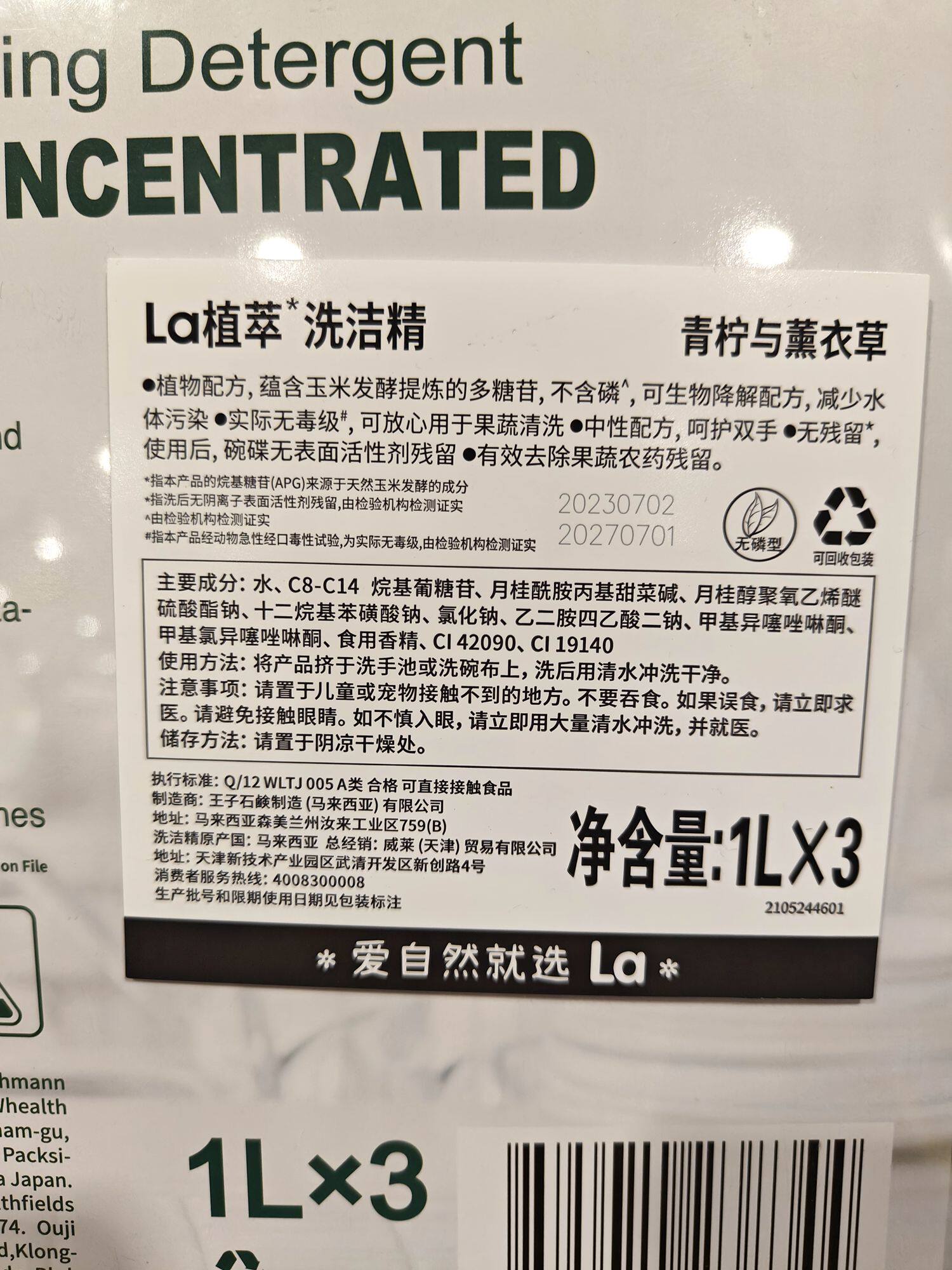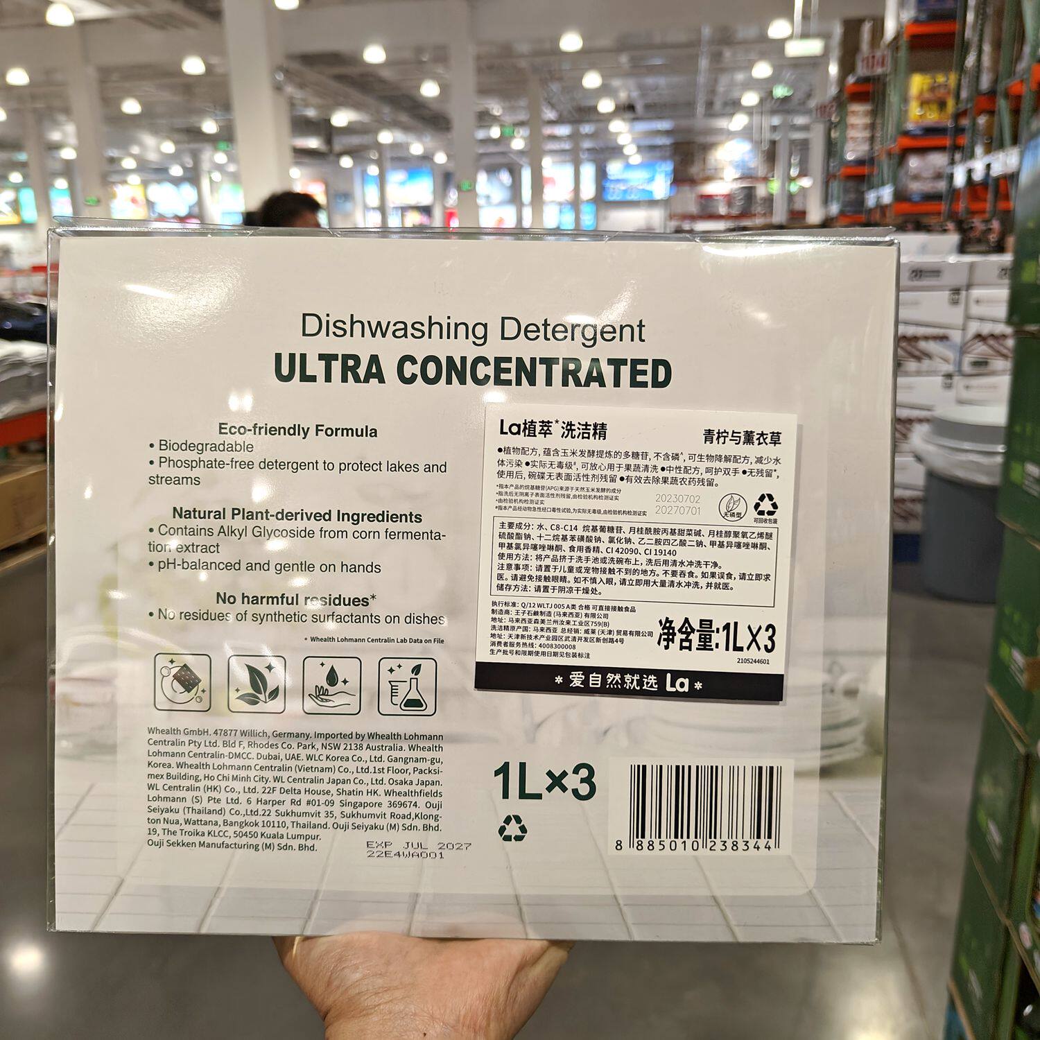 Costco La Plant Extract Dishwashing Liquid for Home Use, Powerful Oil Stain Remover, Hand-Friendly, Non-Irritating, Lime Lavender Scent