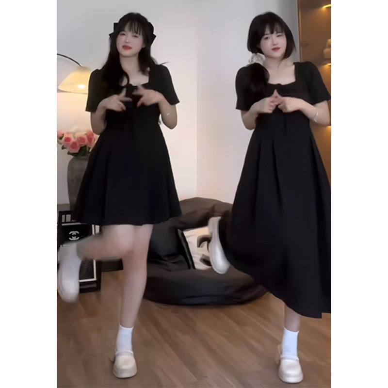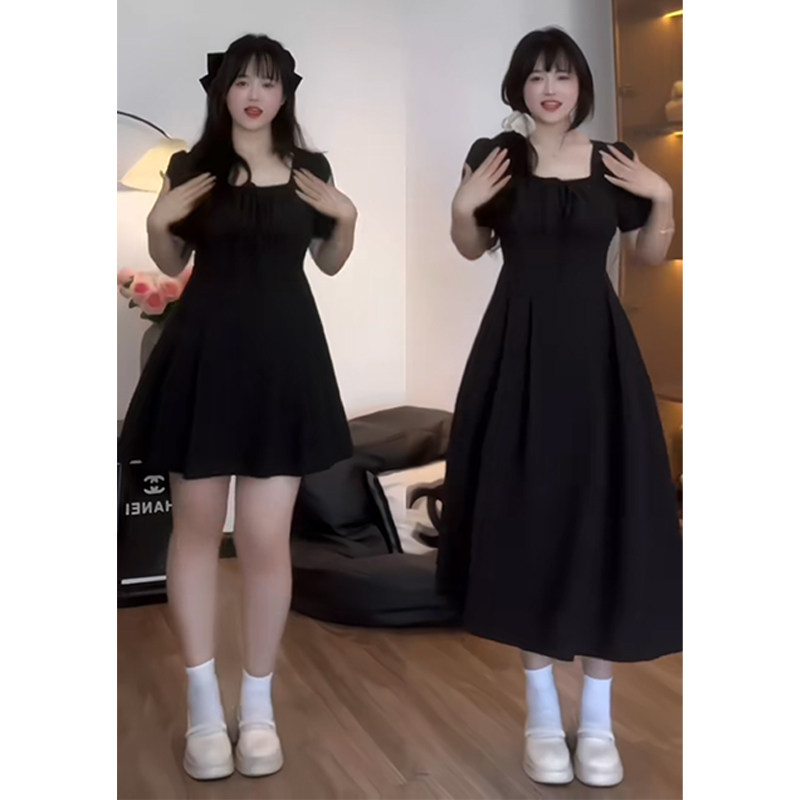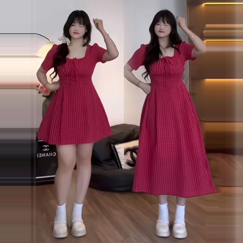 Plus-Size Unique Design Square-Neck Dress for Summer, Slimming Waist, Tummy-Concealing, Elegant and Distinctive Dress