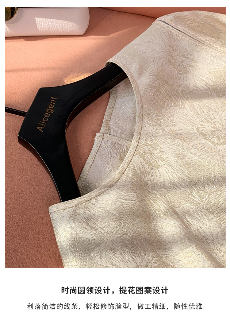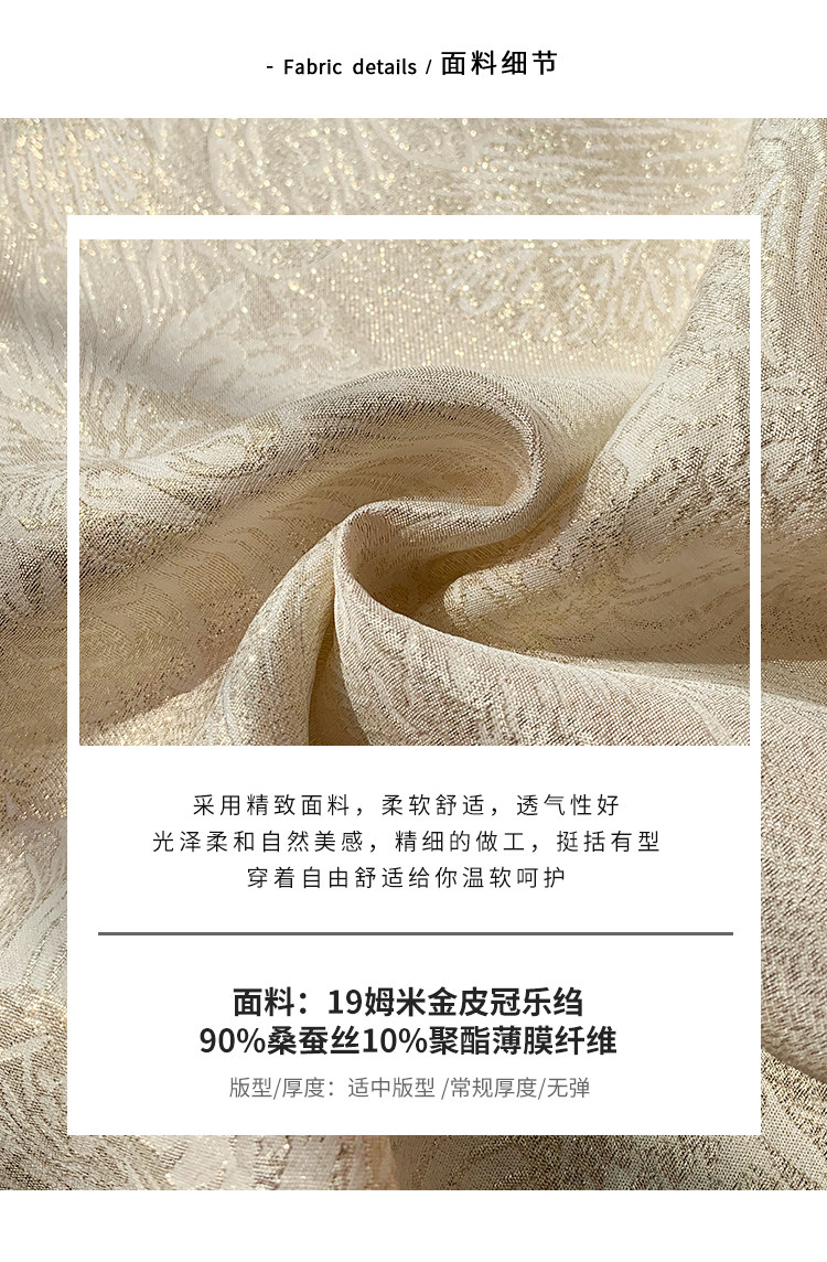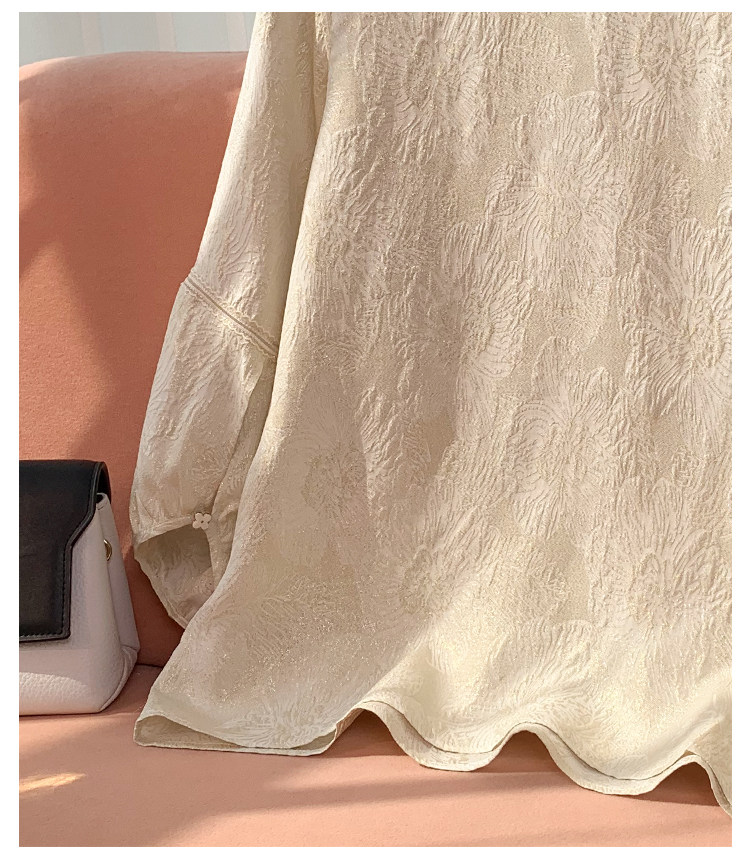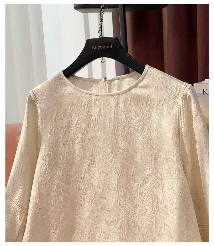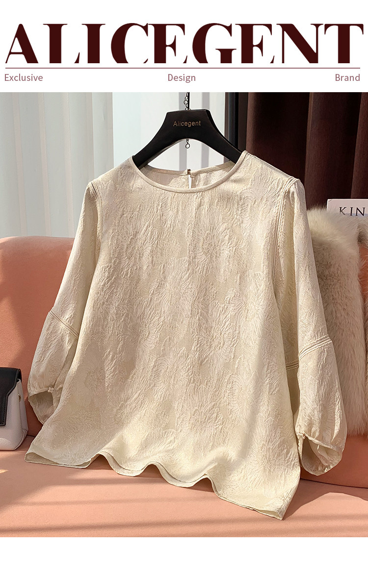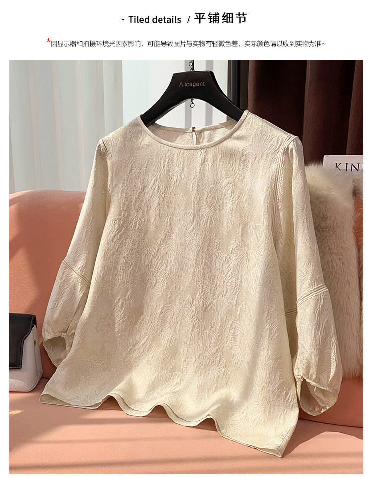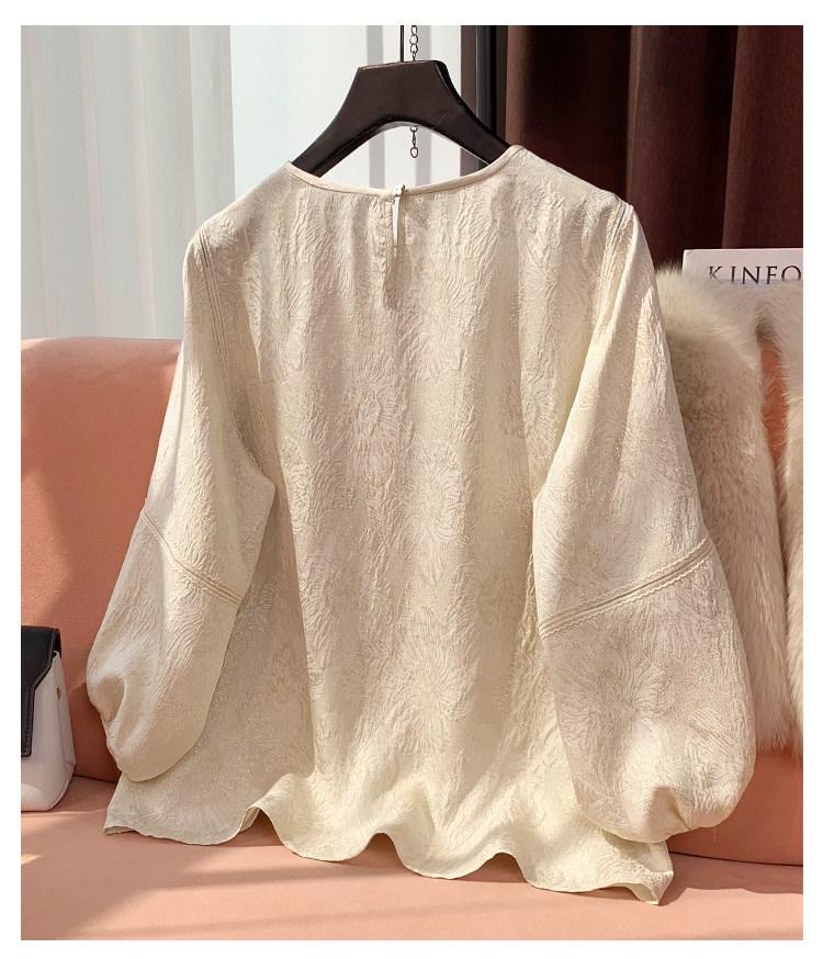 19mm Silk Jacquard Lantern Sleeve Blouse for Women, 2024 Summer New Style, Age-Reducing Loose Fit Mulberry Silk Top