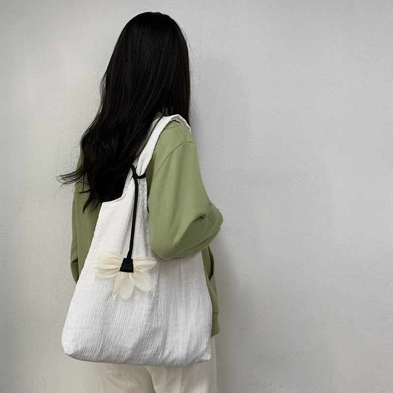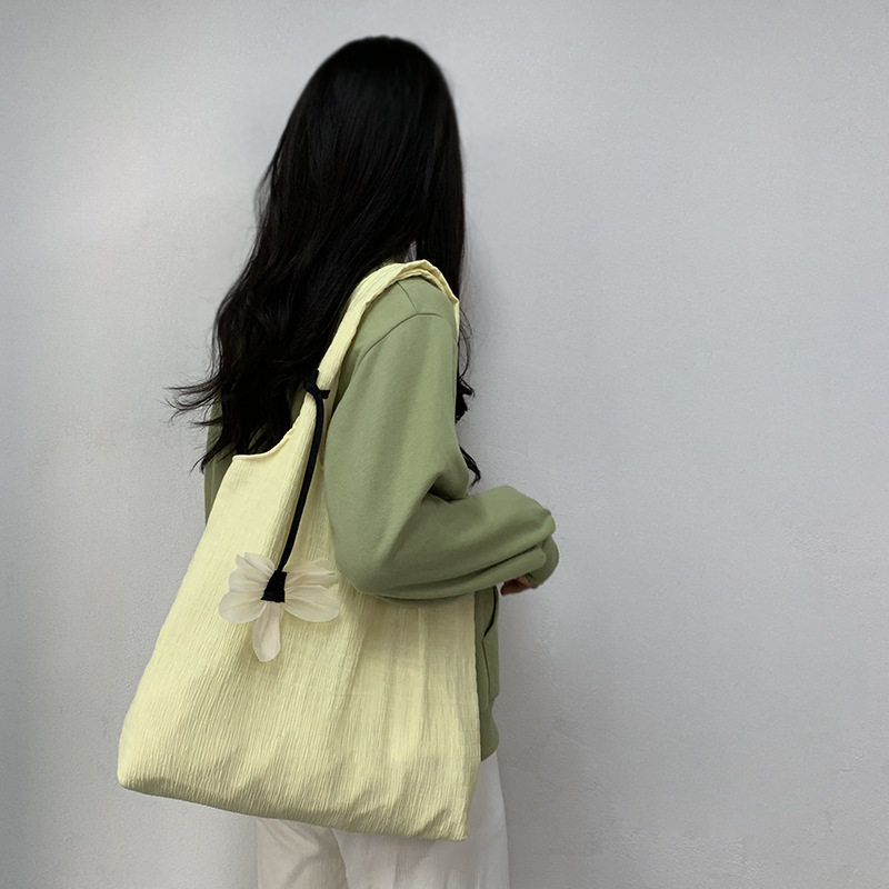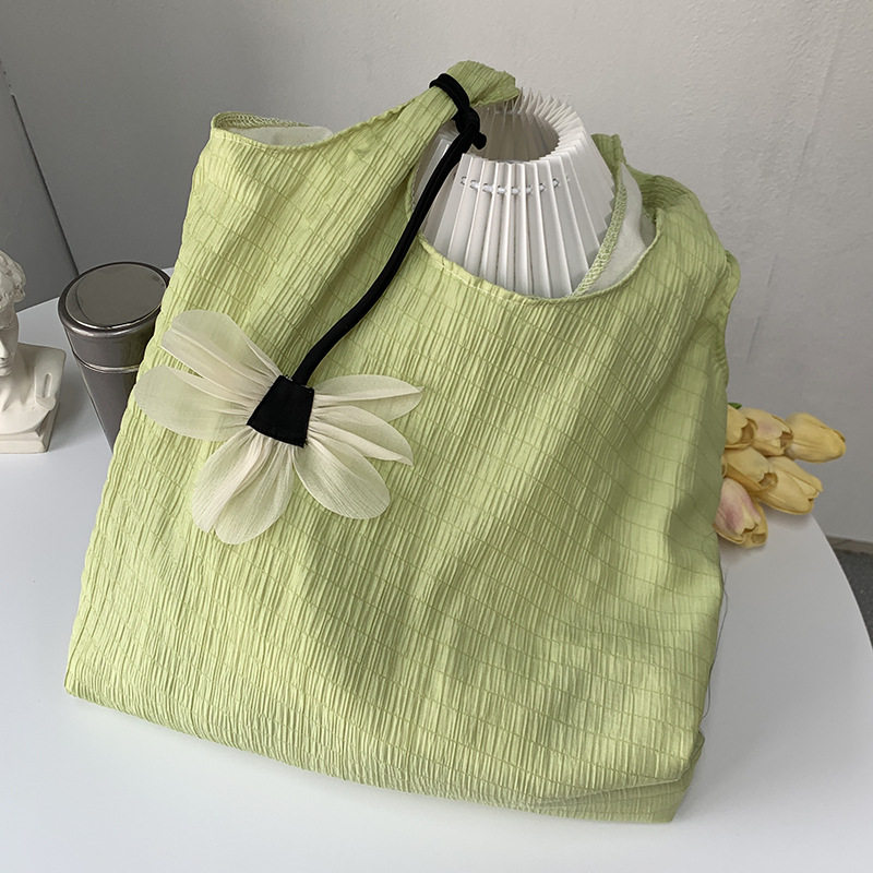Green summer small fresh lace flower vest bag large capacity dopamine color fairy style shoulder handbag