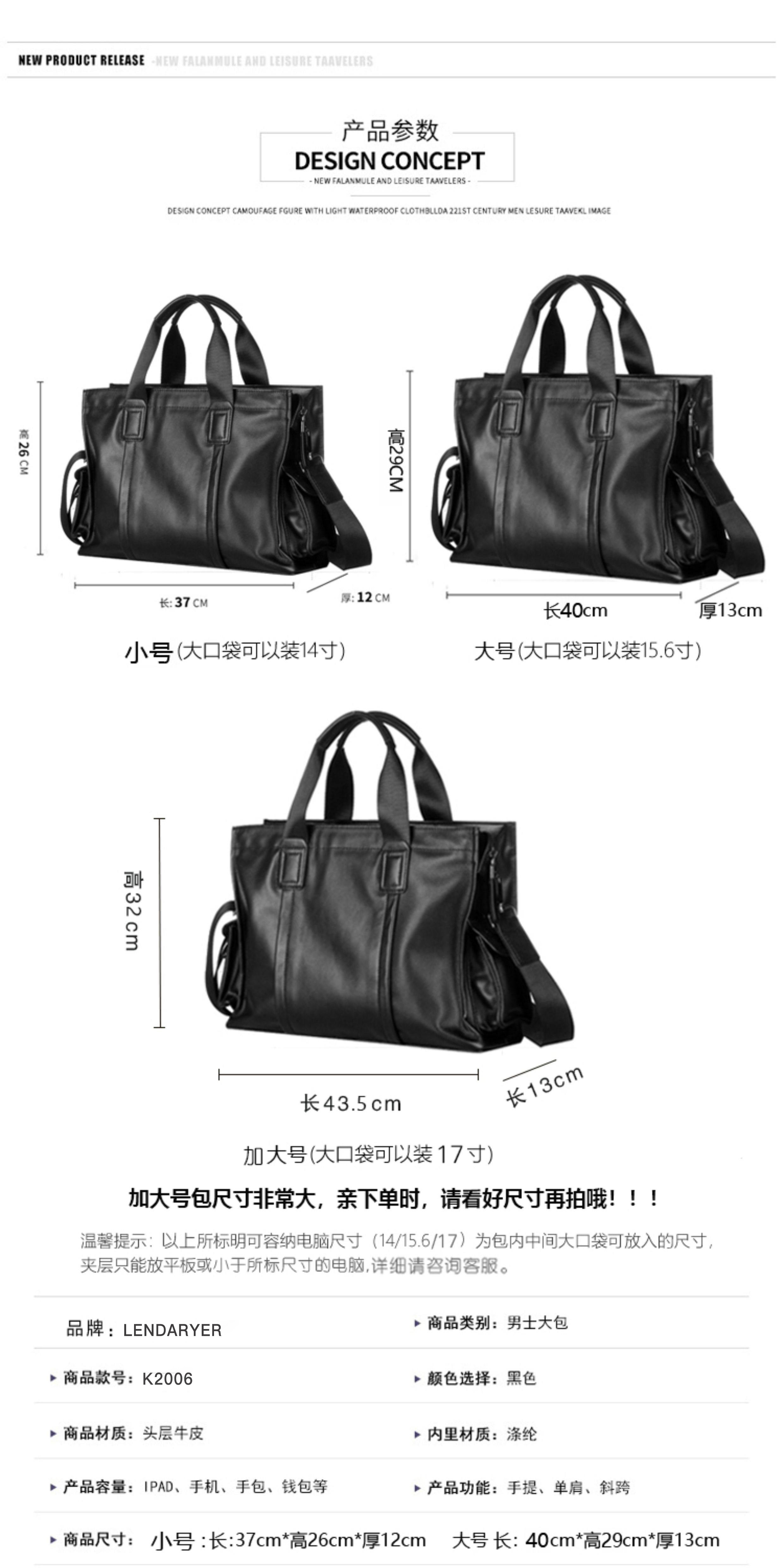 Lendaryer Satchel Briefcase for Men, Business Casual, First-Layer Cowhide, Large-Capacity Design, Business Trip Men's Bag