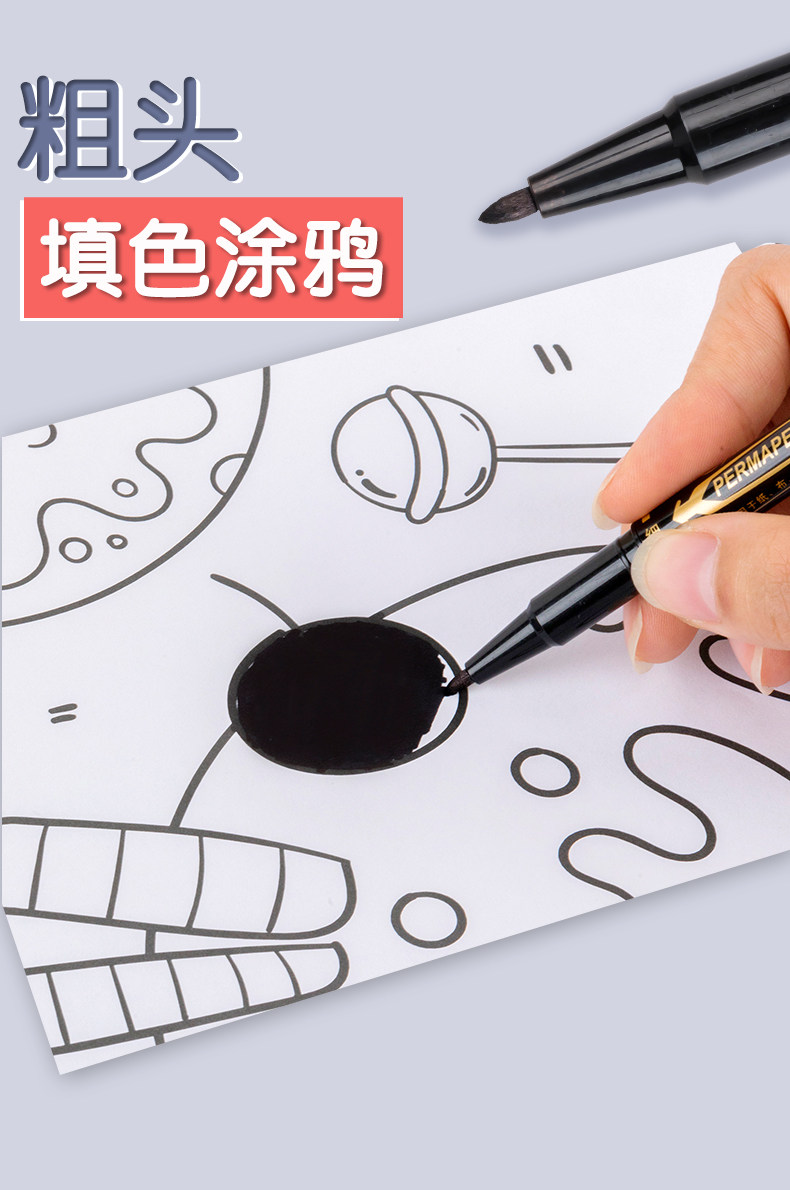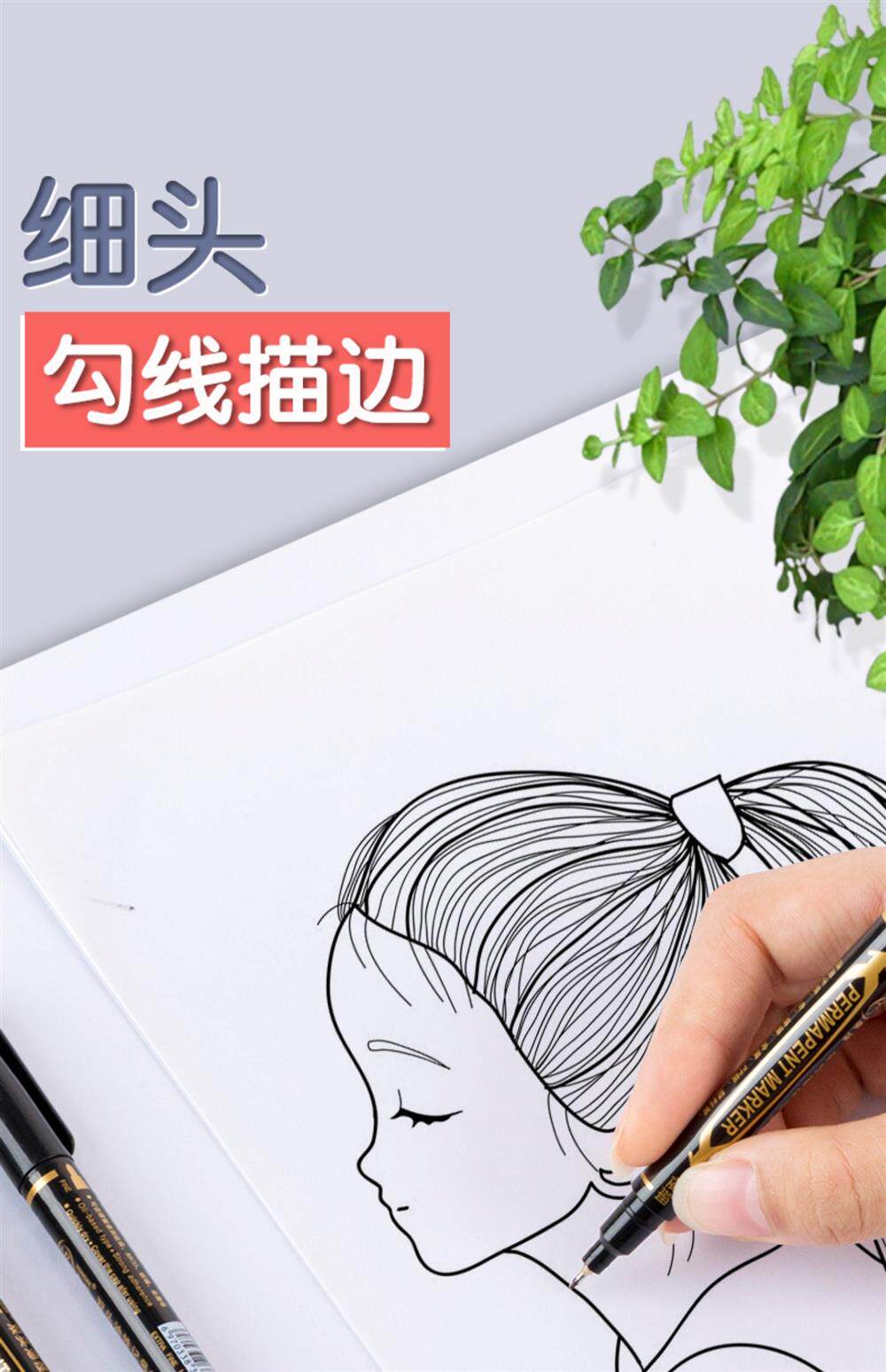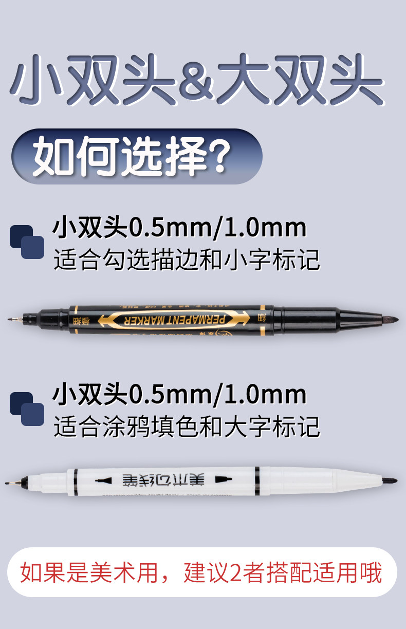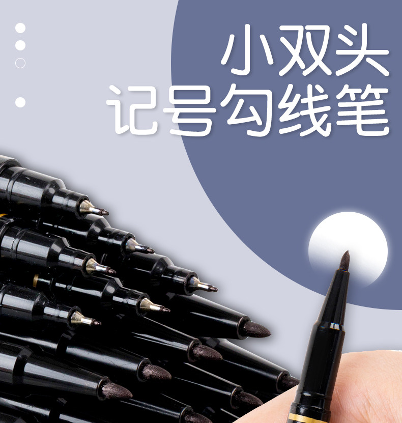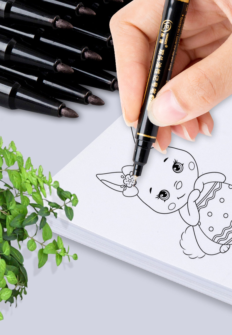 Black Outline Pen, Art Marker, Oil-Based, Outline Drawing, Colorful, Quick-Drying, Waterproof, Children's Drawing, Small Double-Headed Marker Pen