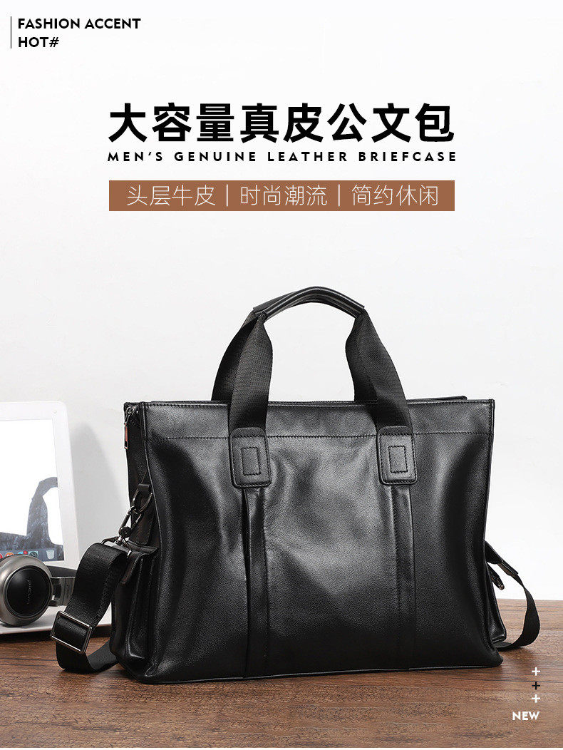 Lendaryer New Classy Genuine Leather Men's Handbag Business Casual Simple Design Large Capacity Briefcase