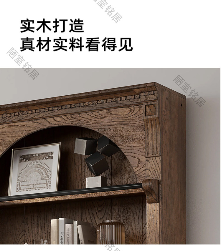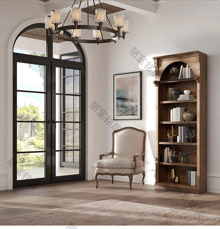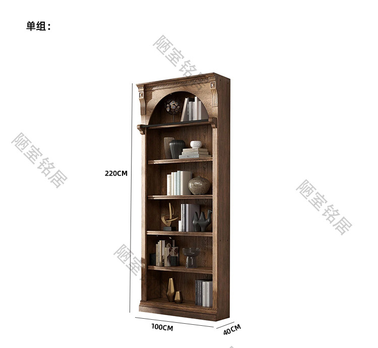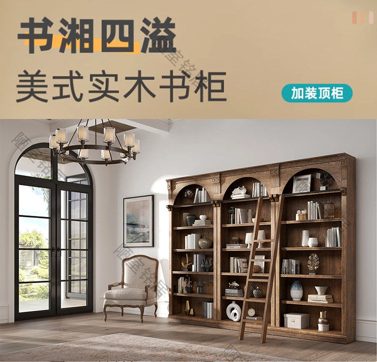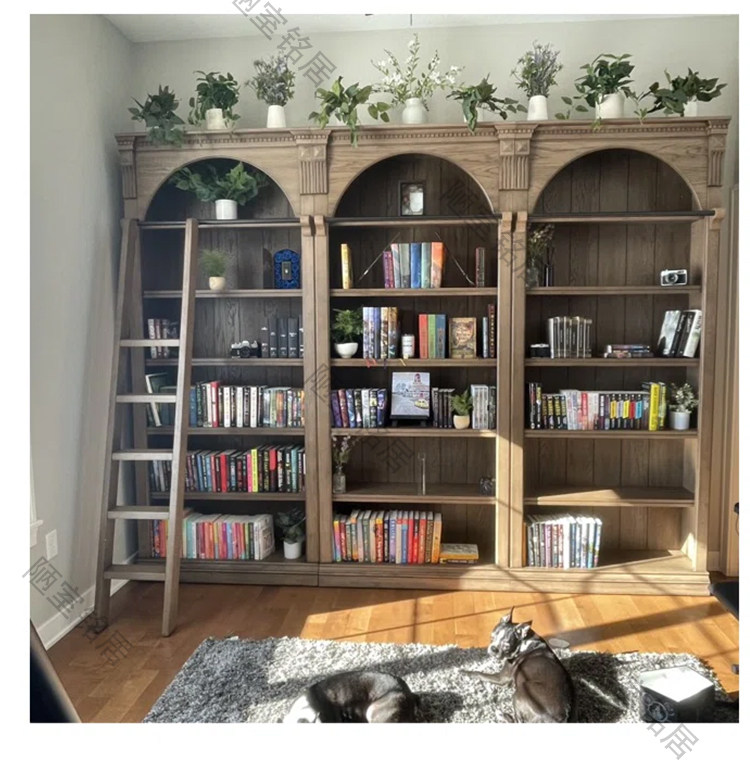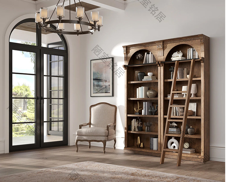 American country retro arched bookcase French solid wood carving neoclassical display cabinet with ladder bookshelf bookcase combination