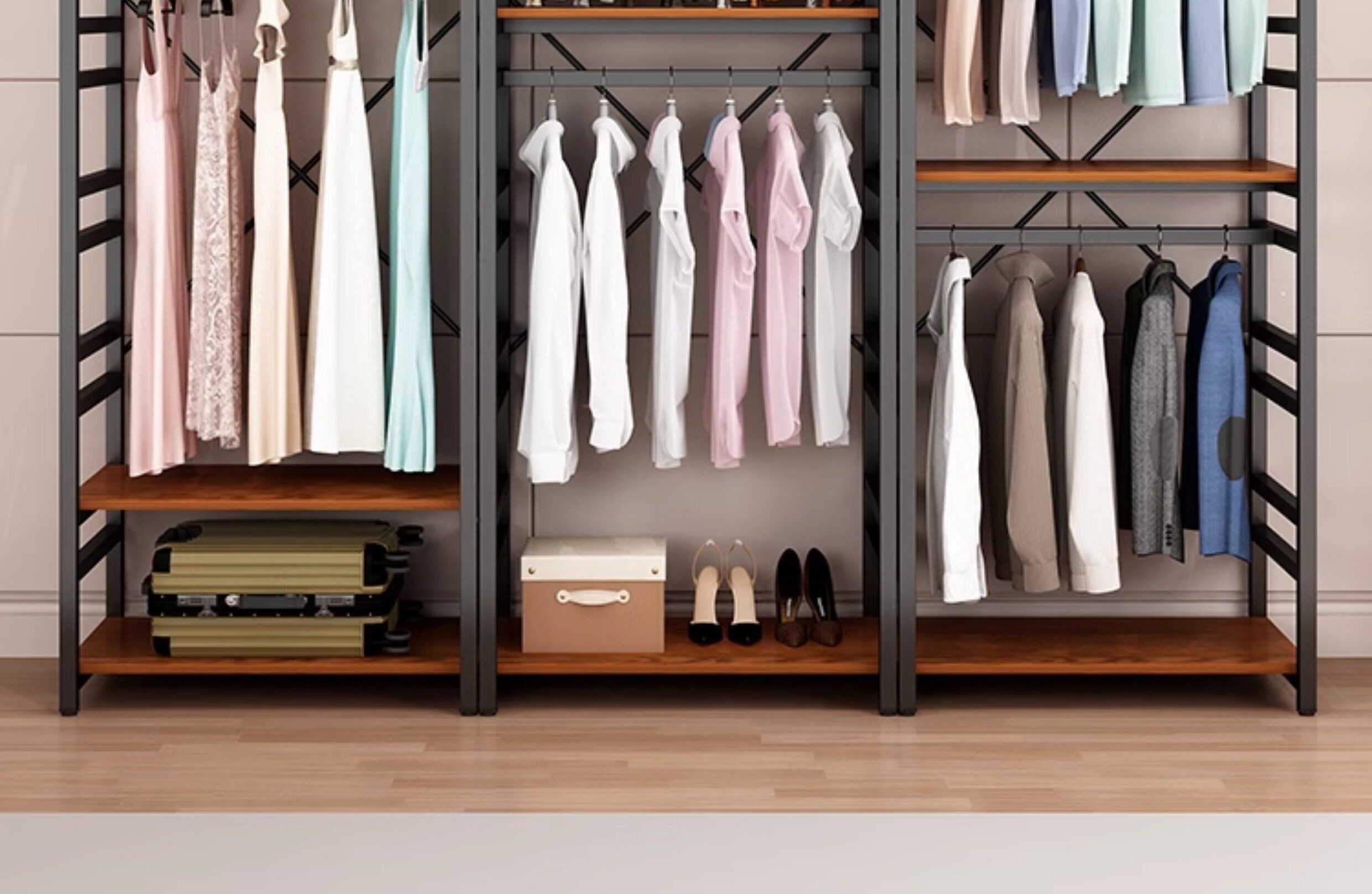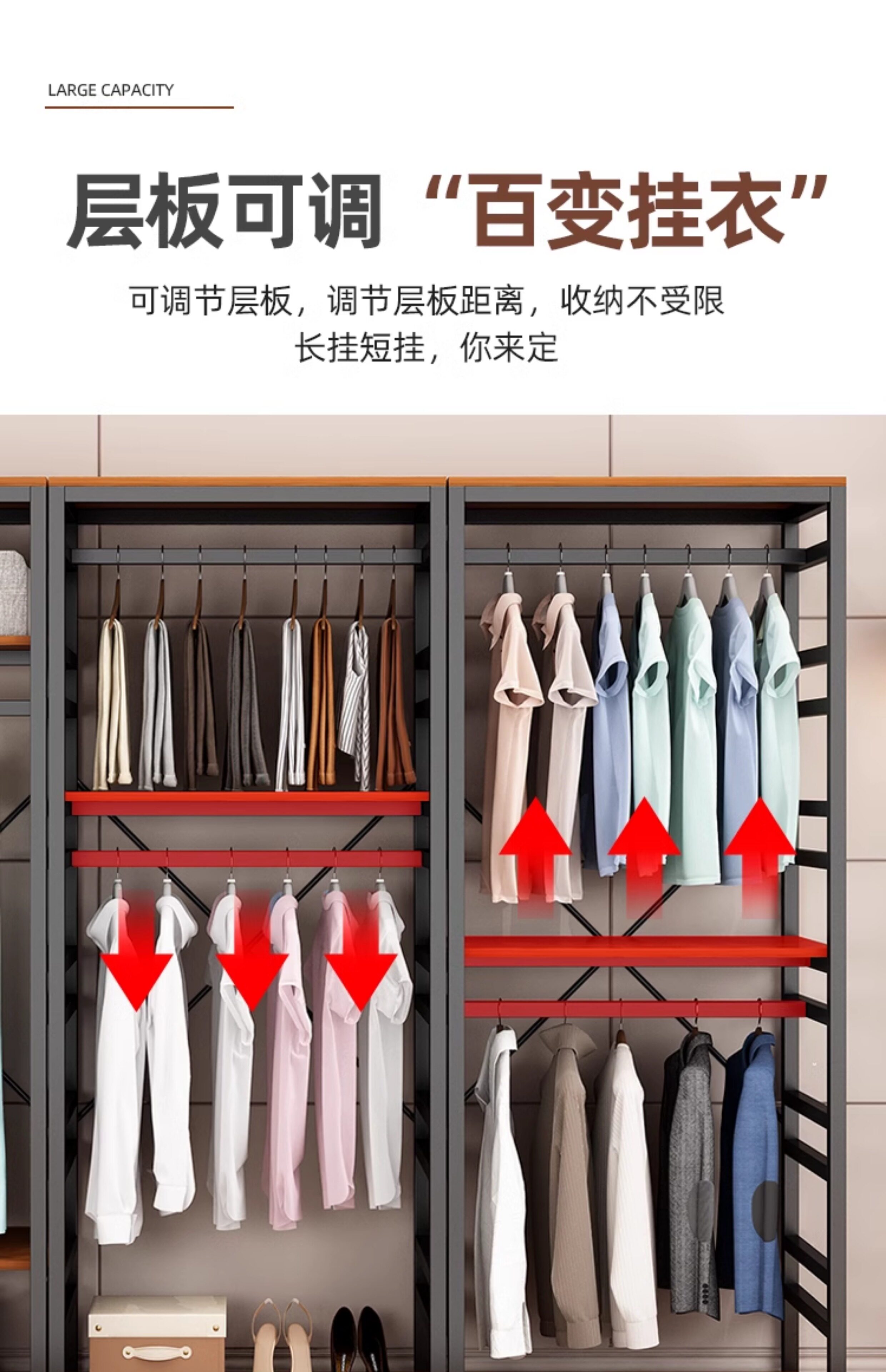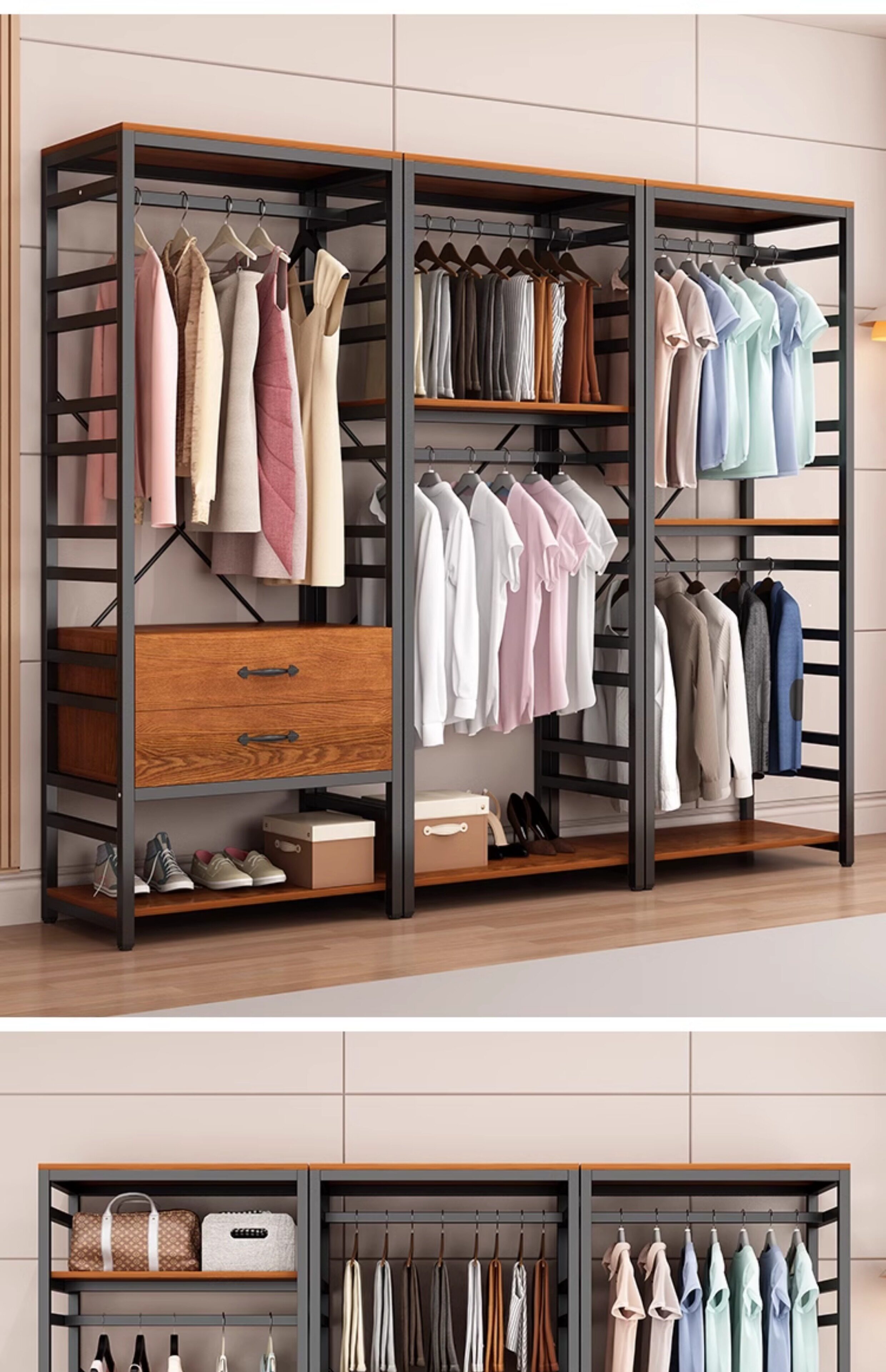Walk-In Closet for Home Use, Bedroom Clothes Rack, Floor-Standing Adjustable Shelf, Open Wardrobe