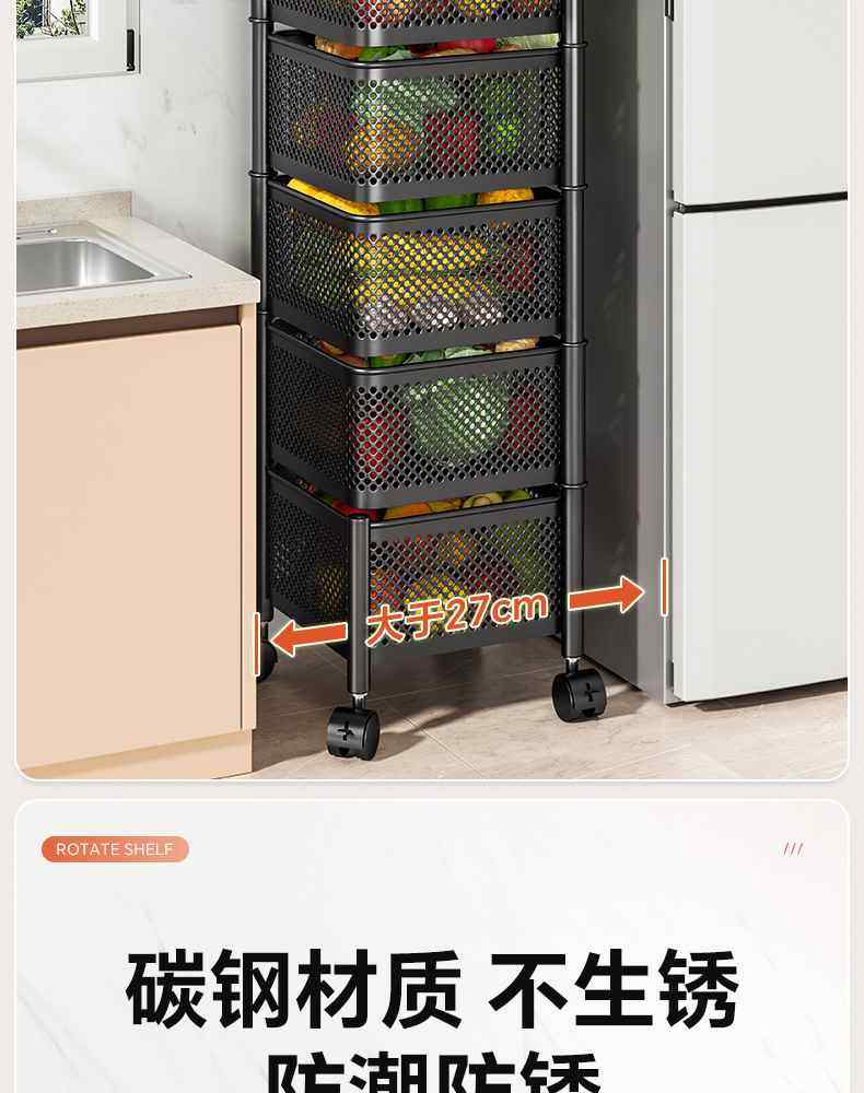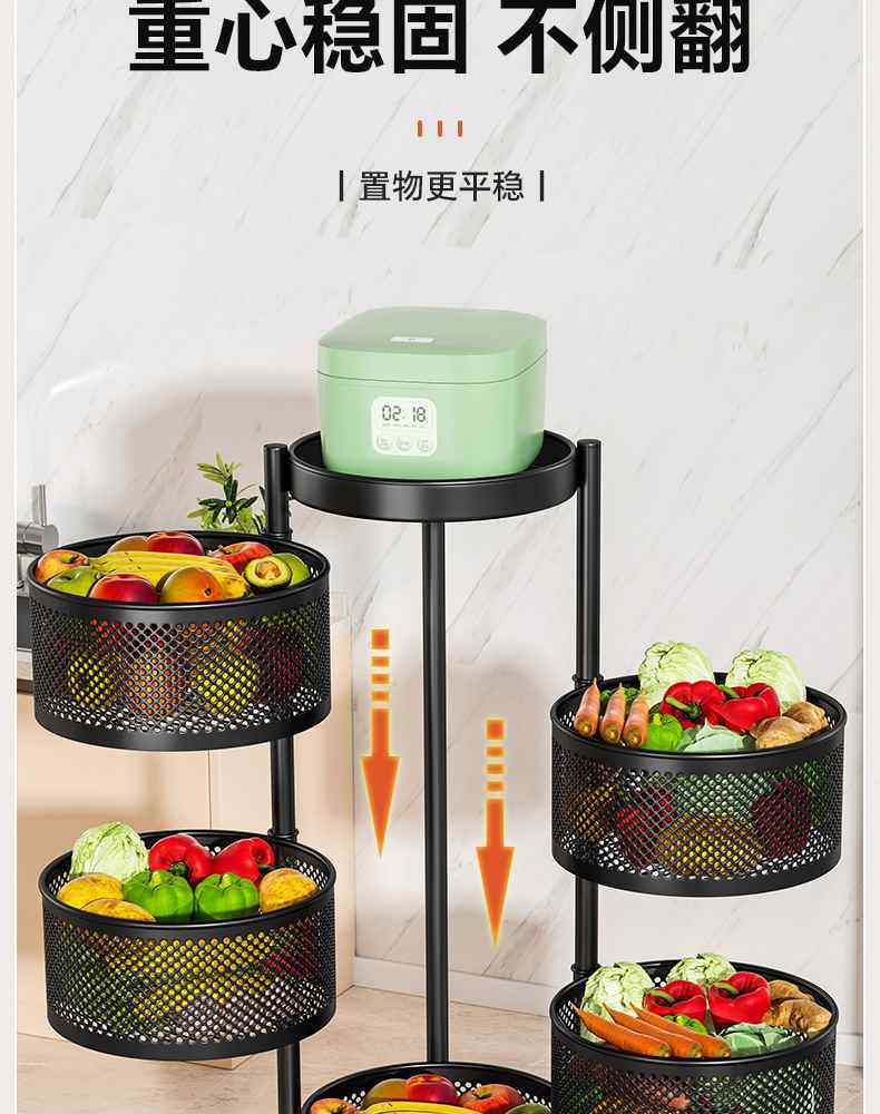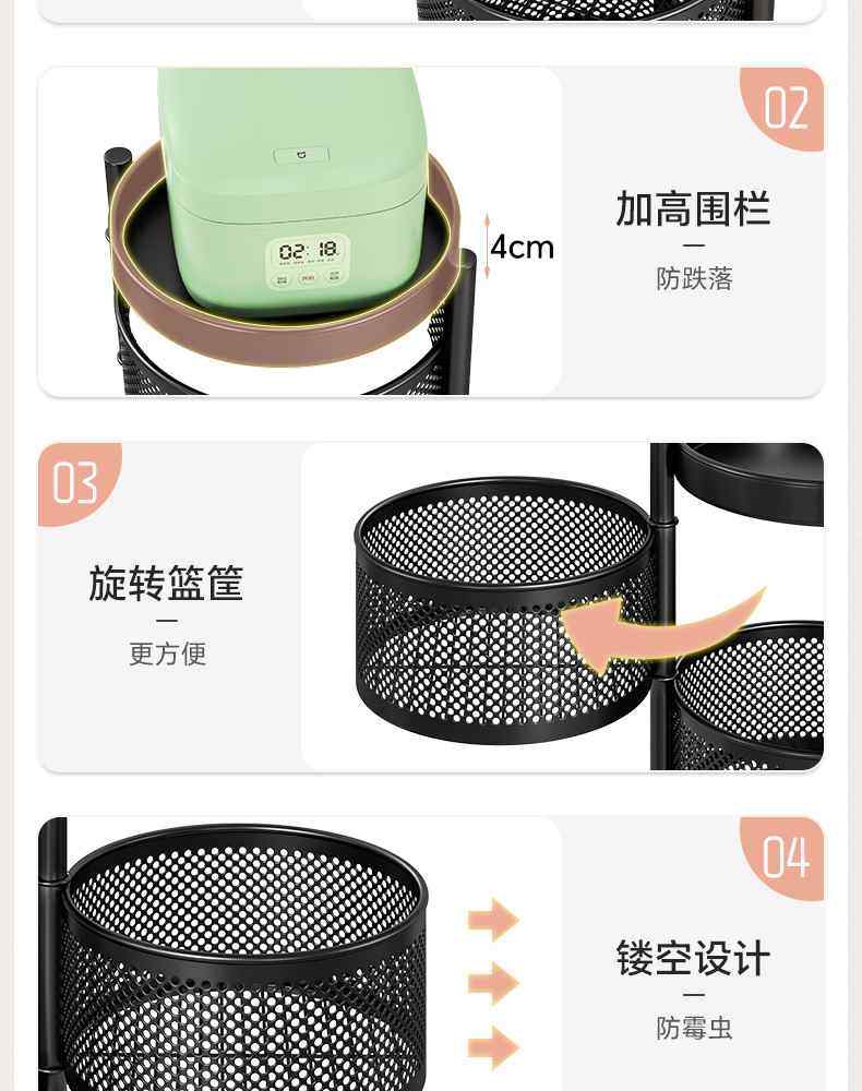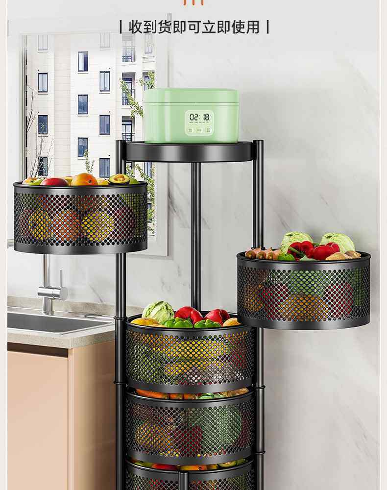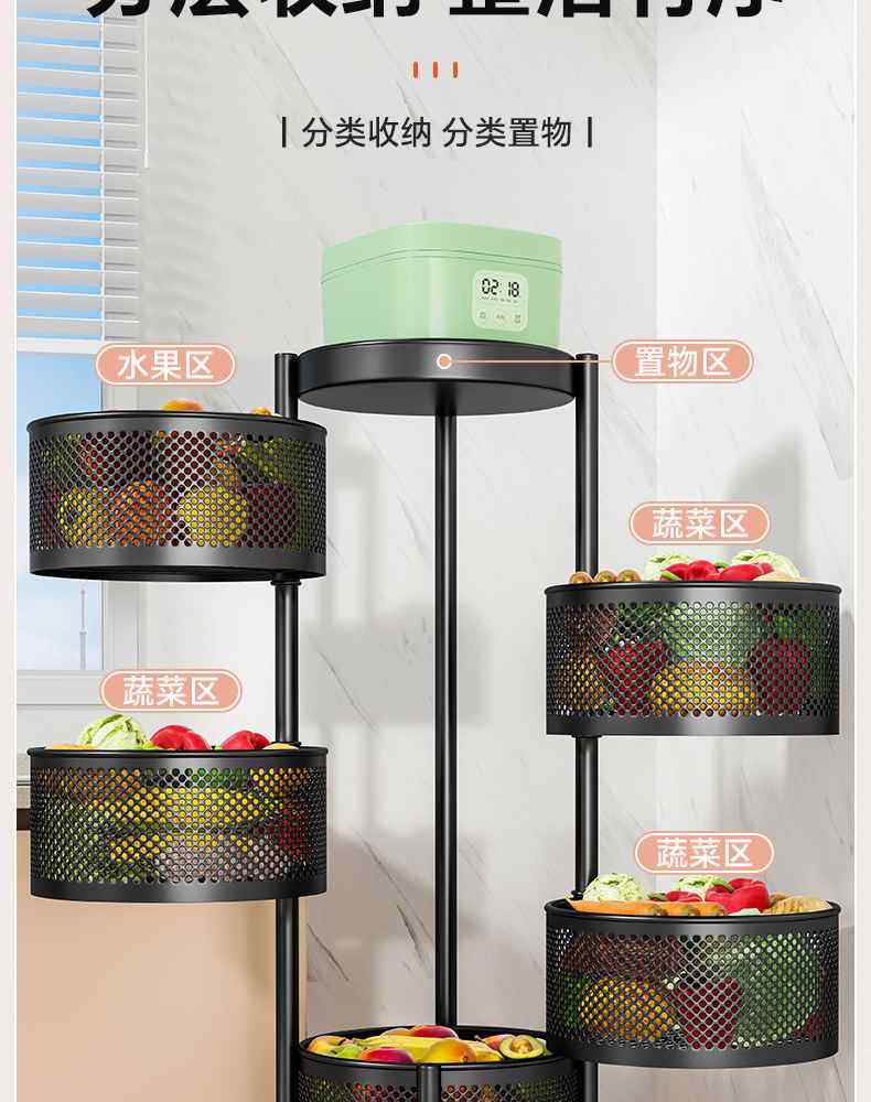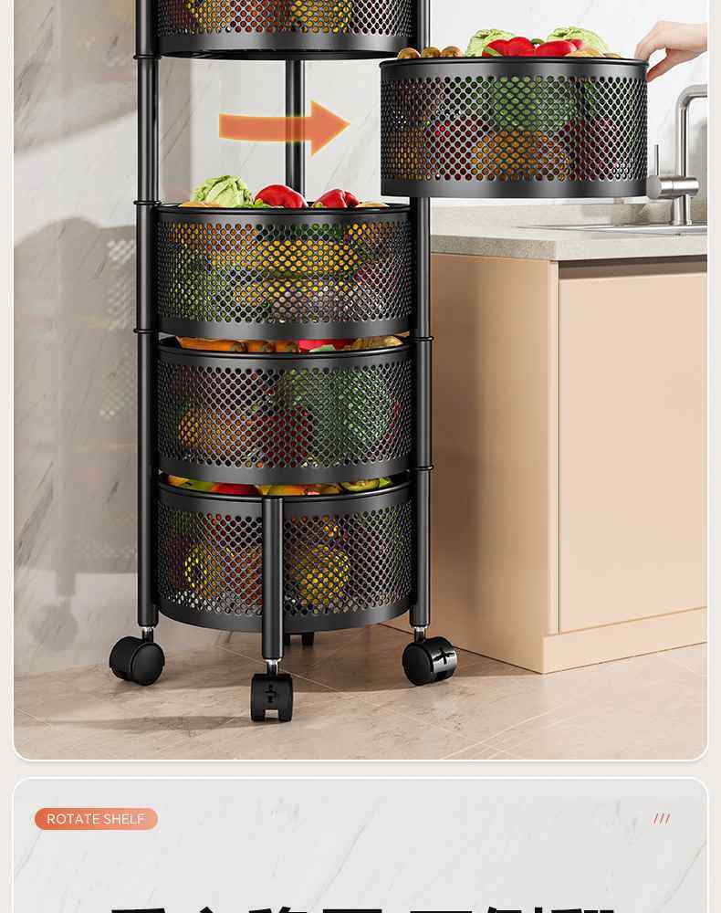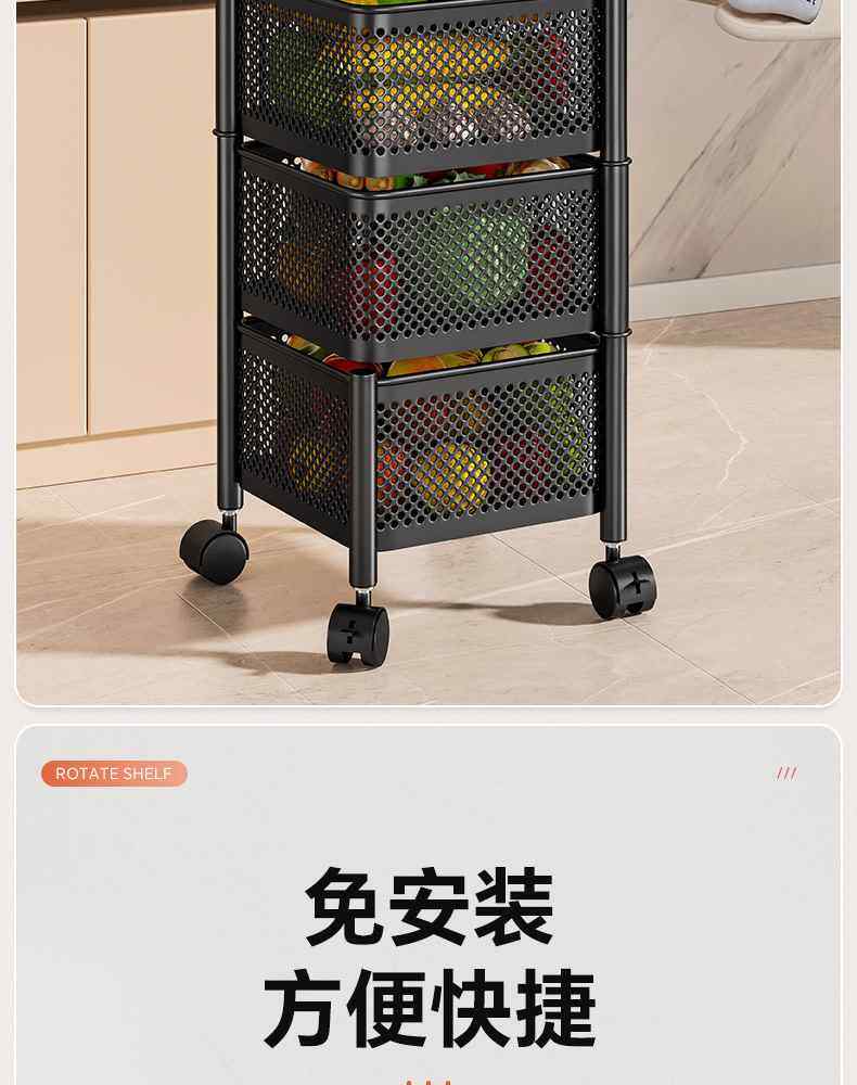 Kitchen rotating multi-function storage rack household floor-standing multi-layer snack cart fruit and vegetable basket storage rack