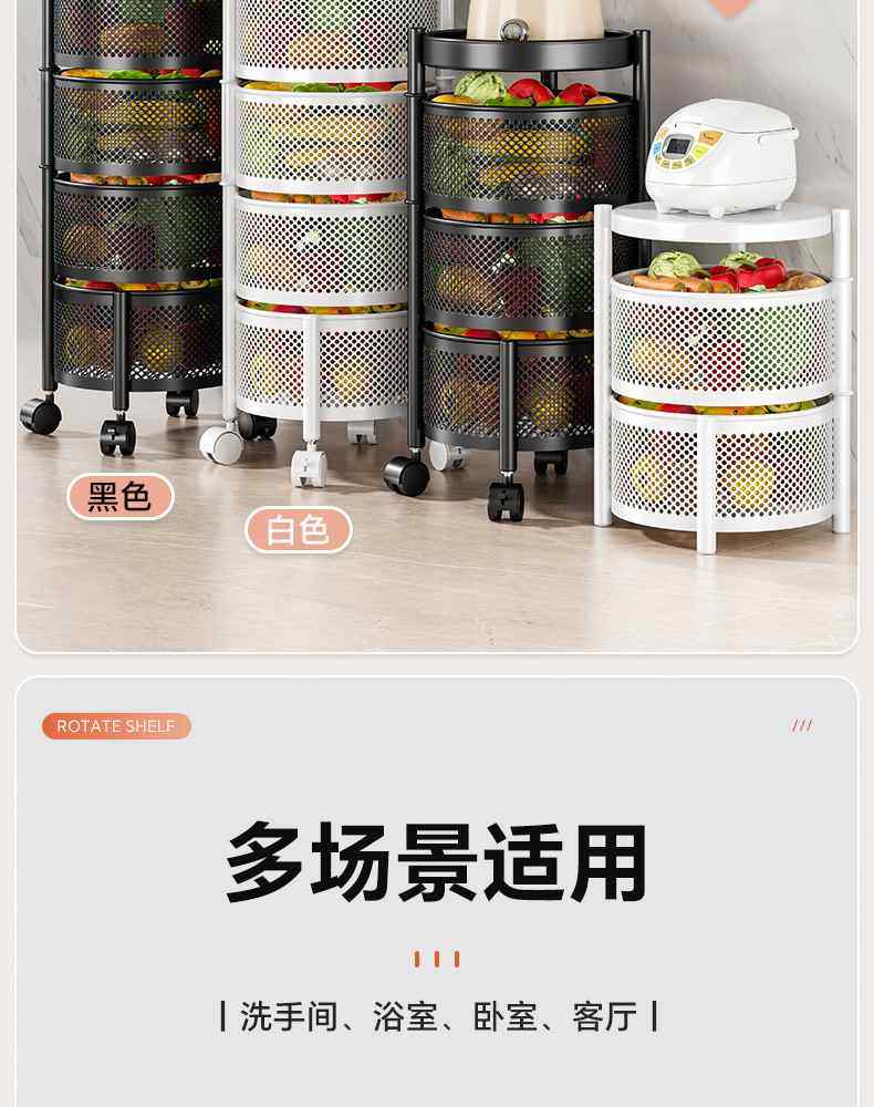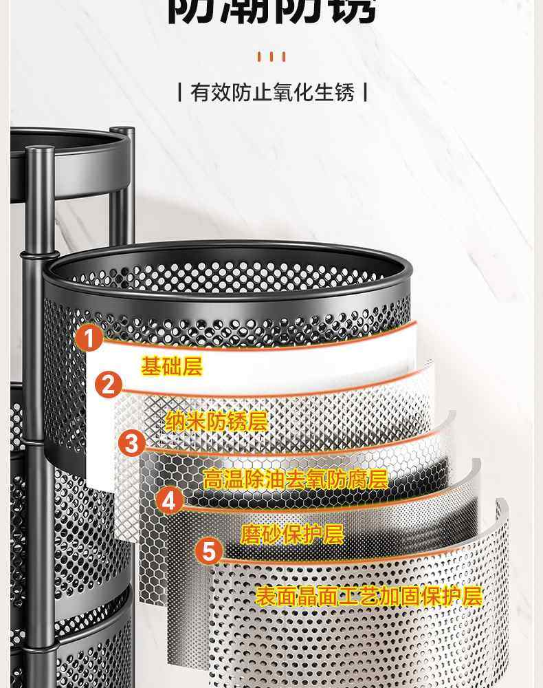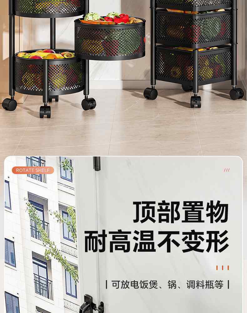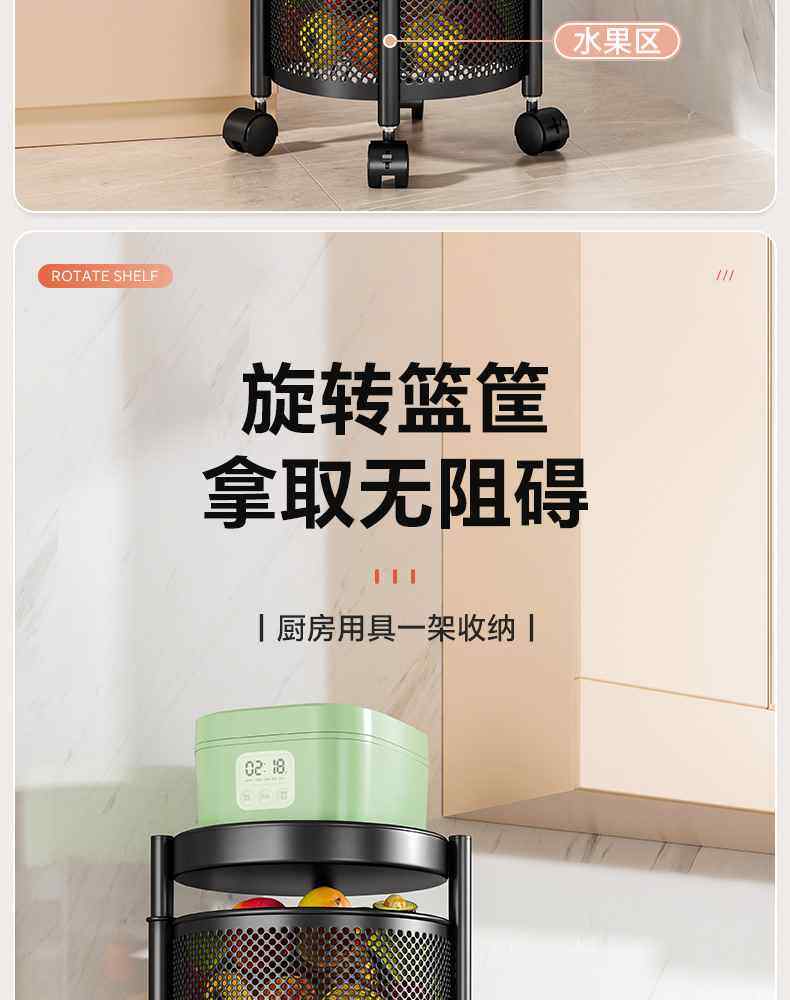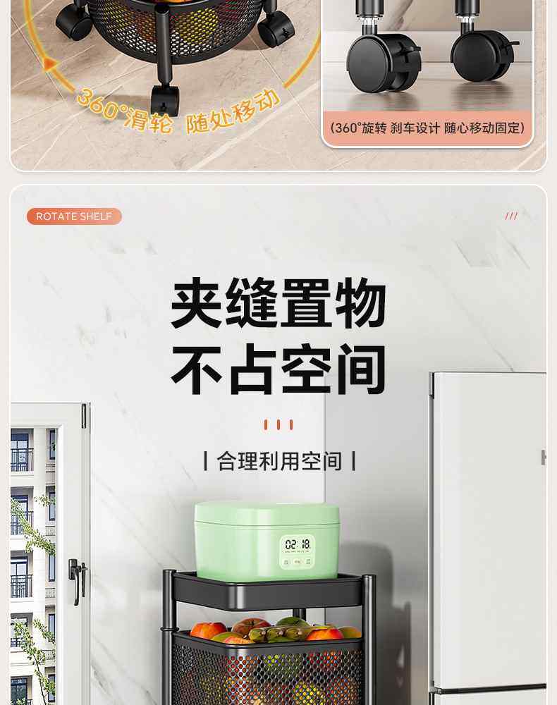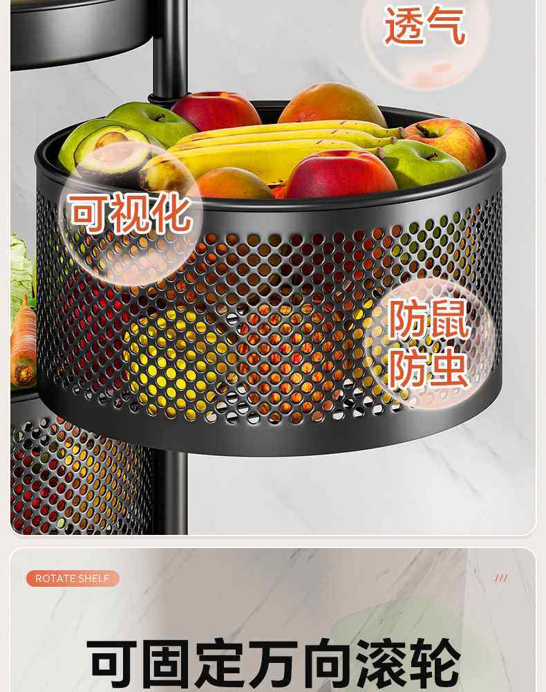 Kitchen rotating multi-function storage rack household floor-standing multi-layer snack cart fruit and vegetable basket storage rack
