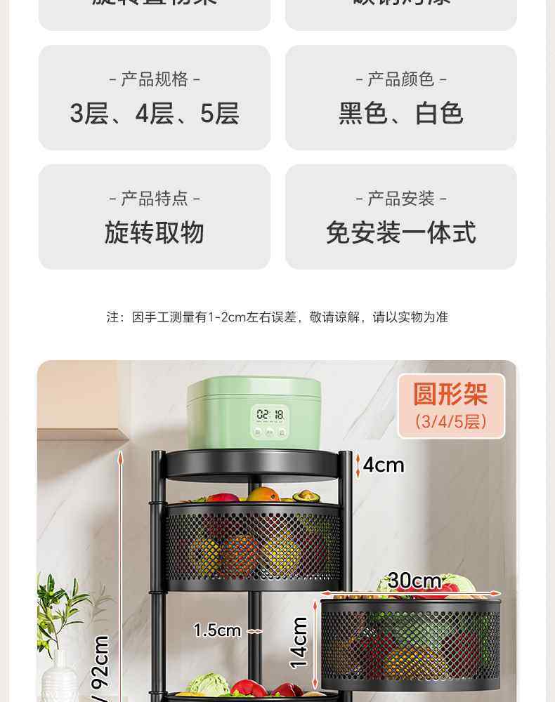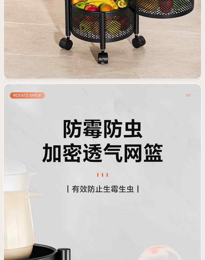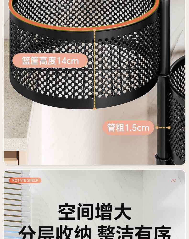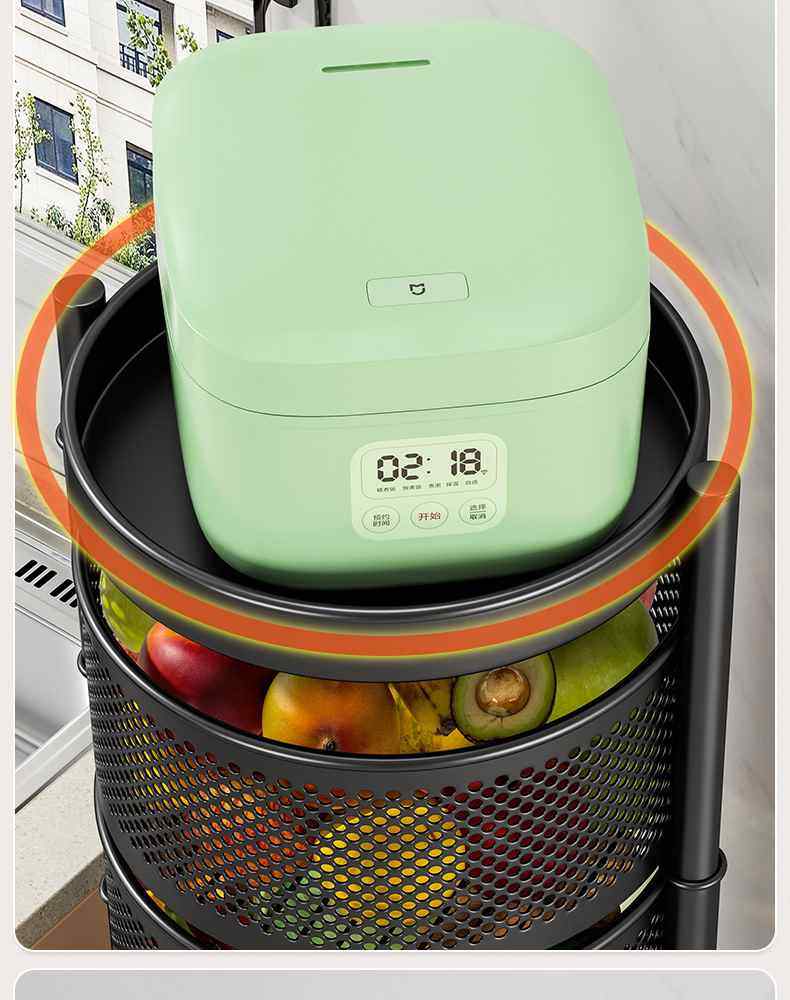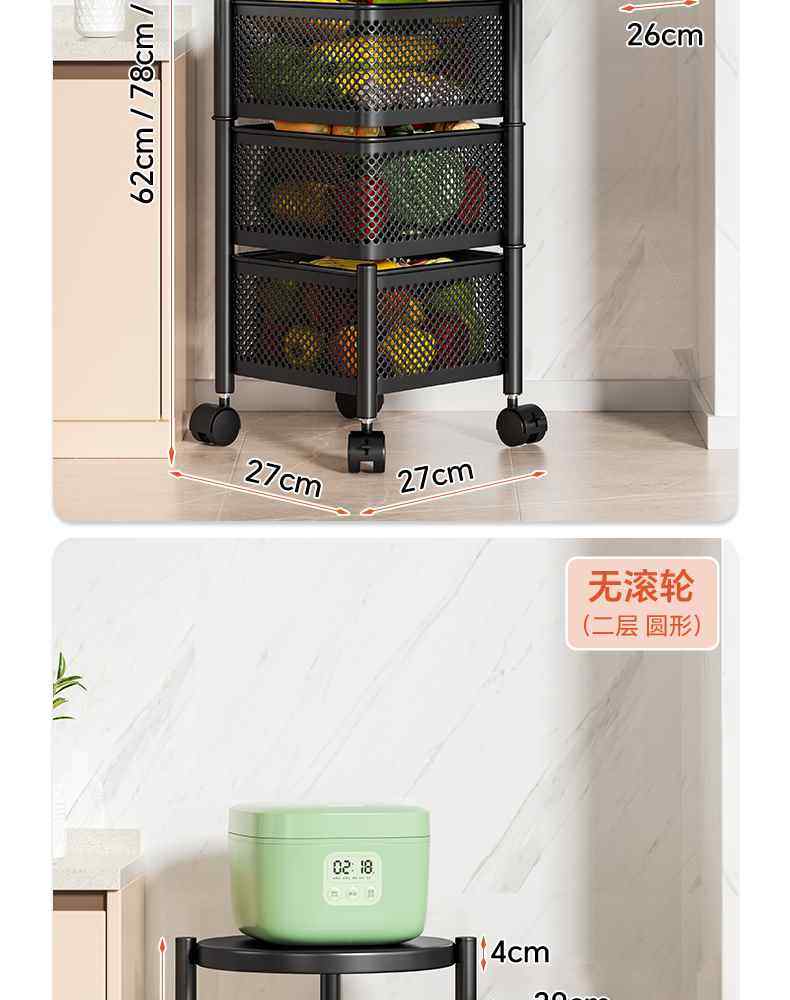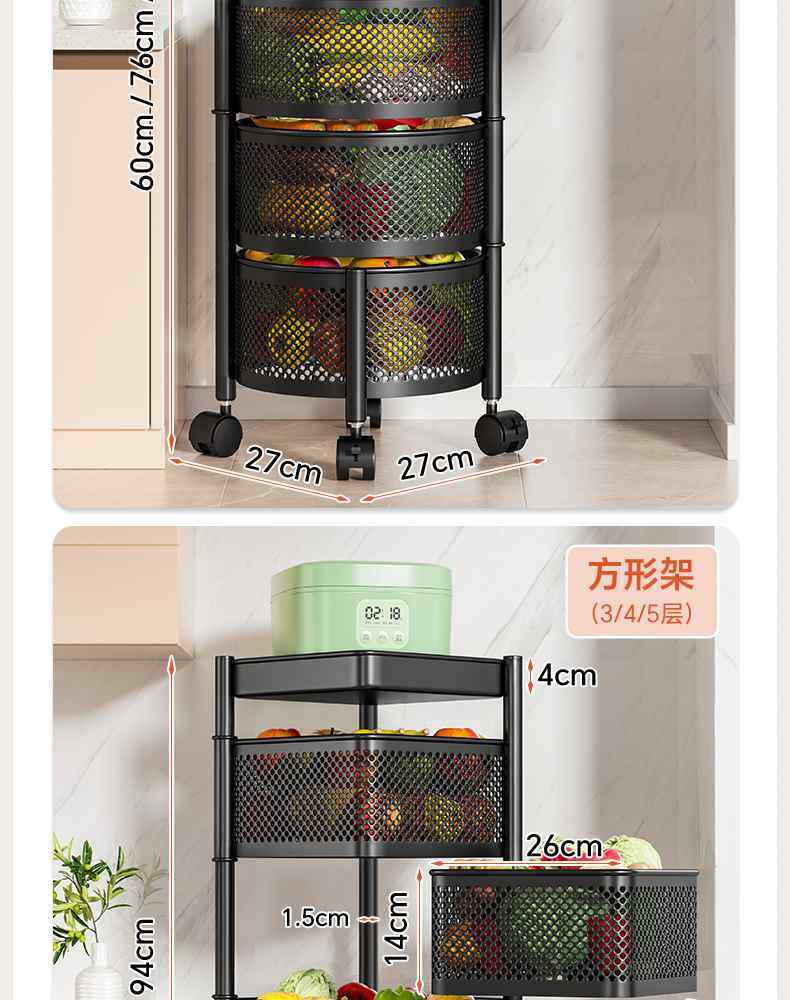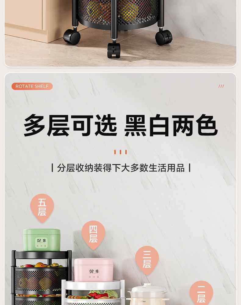 Kitchen rotating multi-function storage rack household floor-standing multi-layer snack cart fruit and vegetable basket storage rack