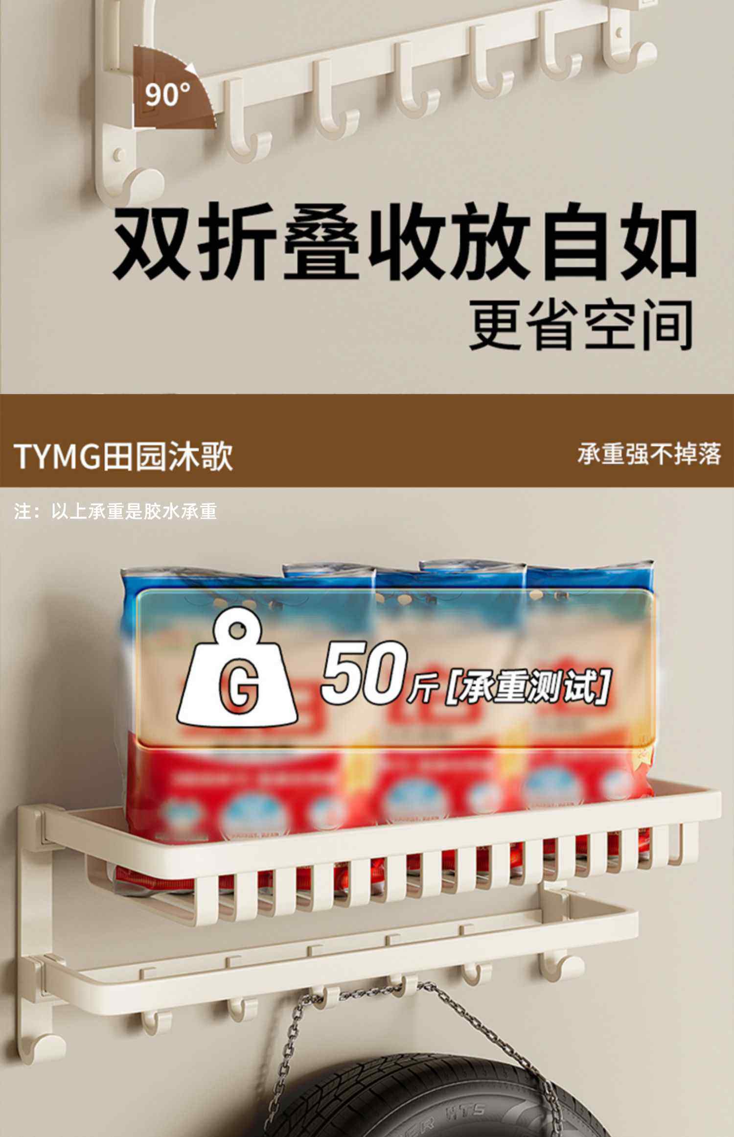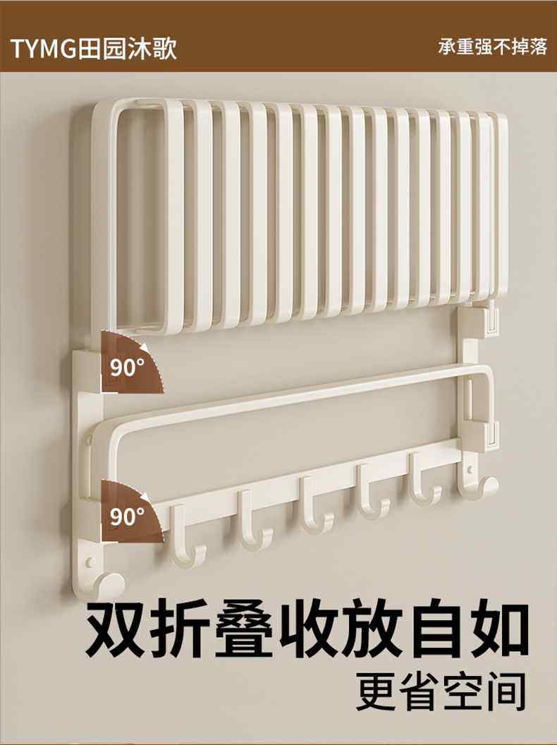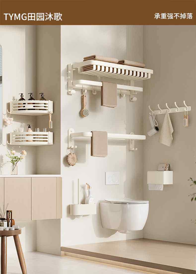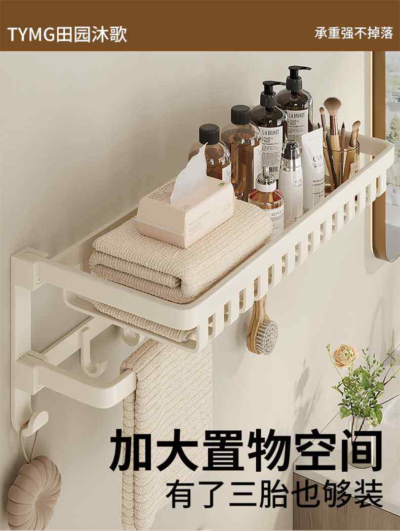 Cream Style Towel Rack Bathroom Storage Rack Integrated Punch-Free Wall-Mounted Space Aluminum Bathroom Toilet Towel Rack