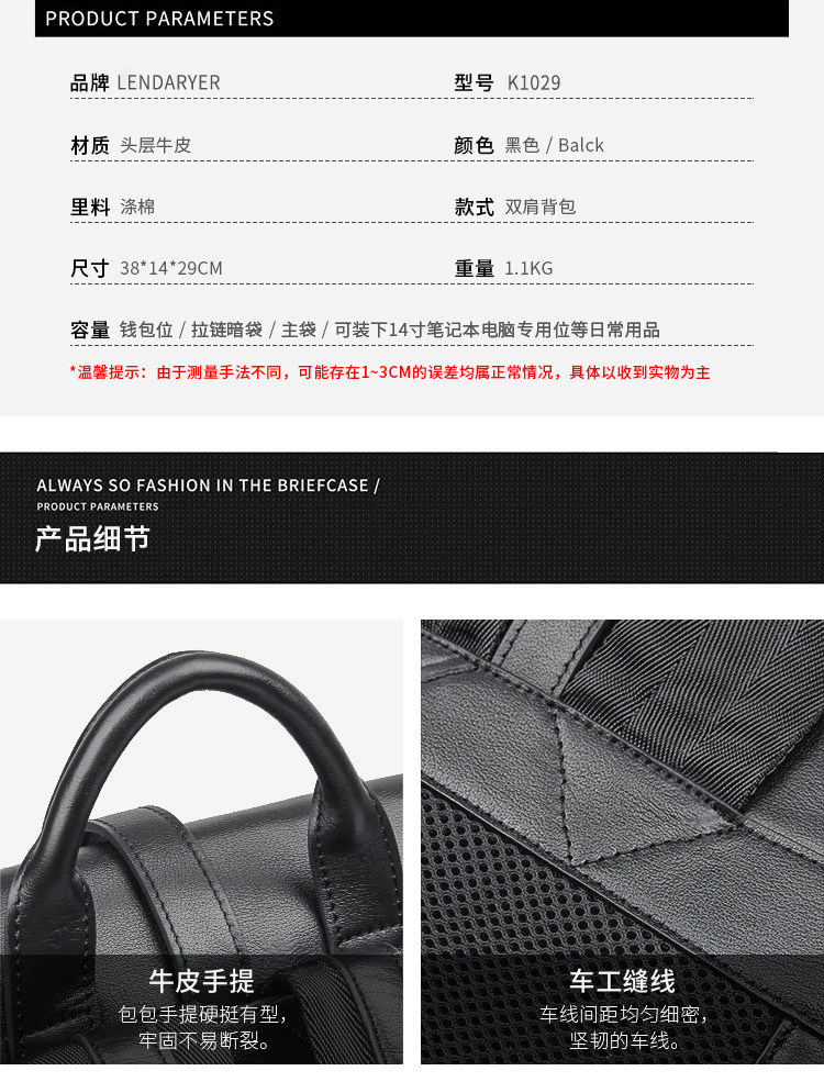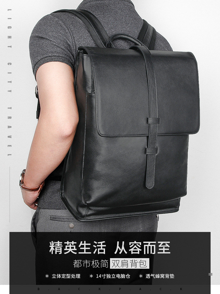 Lendaryer Business Backpack Men's Casual Fashion Travel Backpack First Layer Cowhide Large Capacity Computer Bag for Men