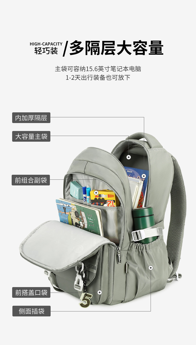 Internal Structure Mesh Bag,Patch Pocket,Cell Phone Bag,Main Bag,Dark Grid,Laminated Zipper Bag,Computer Pocket,Certificate Slot
