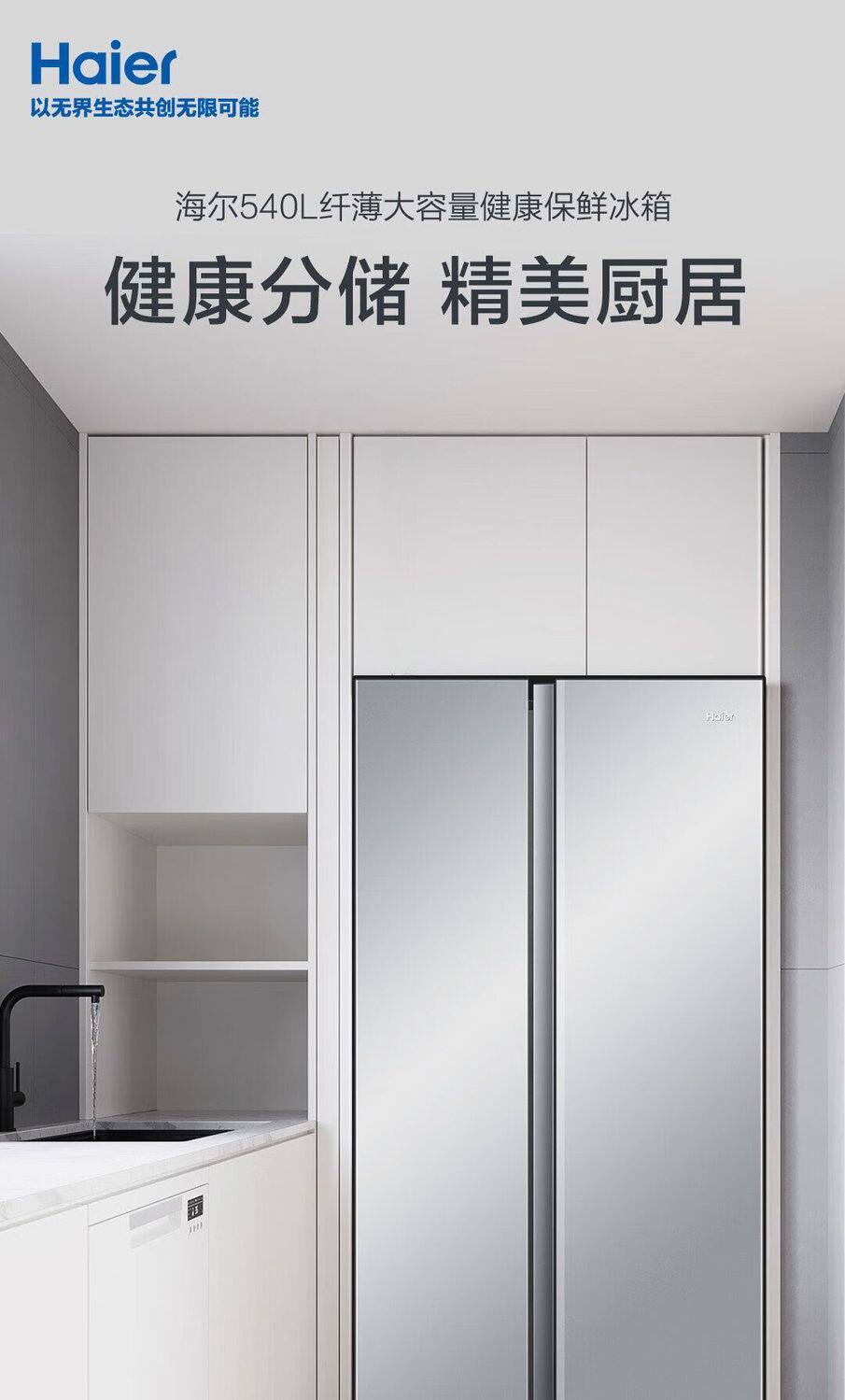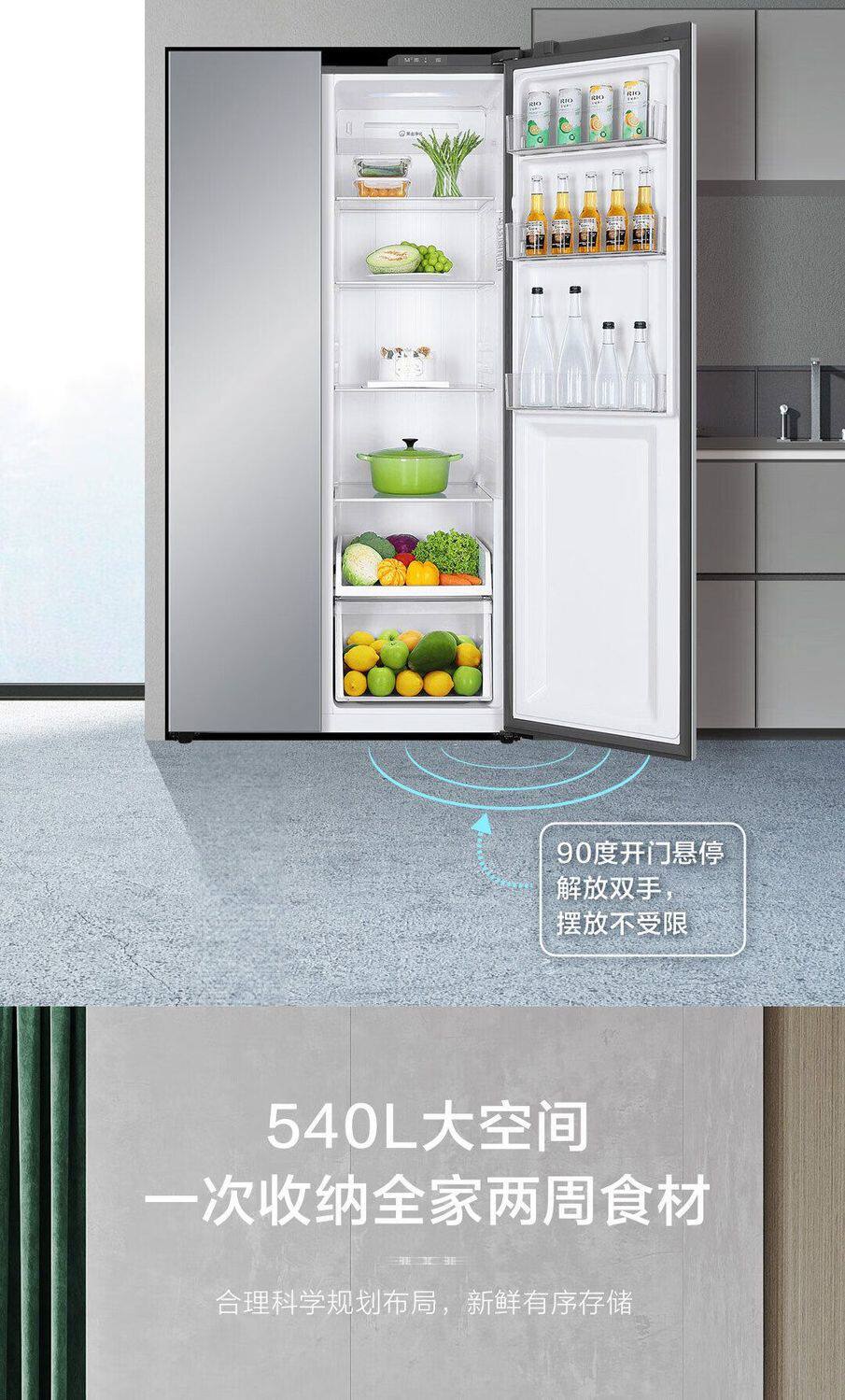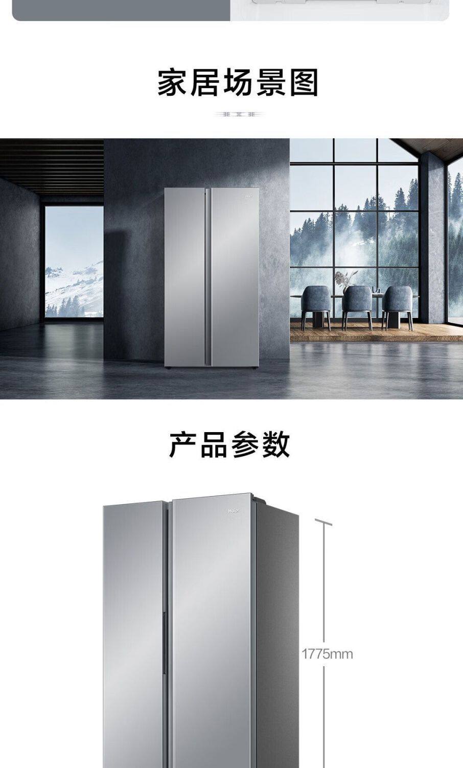 Haier Refrigerator 540L Double-Door Side-By-Side Household Frost-Free Ultra-Thin Large Capacity Bcd-540Wghssedxm