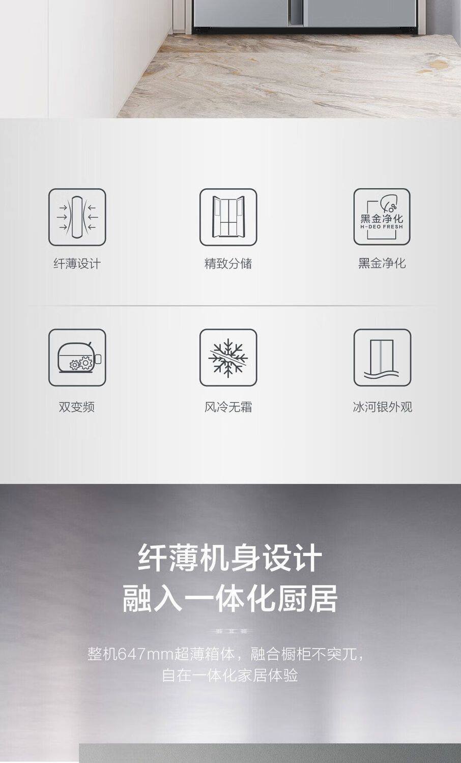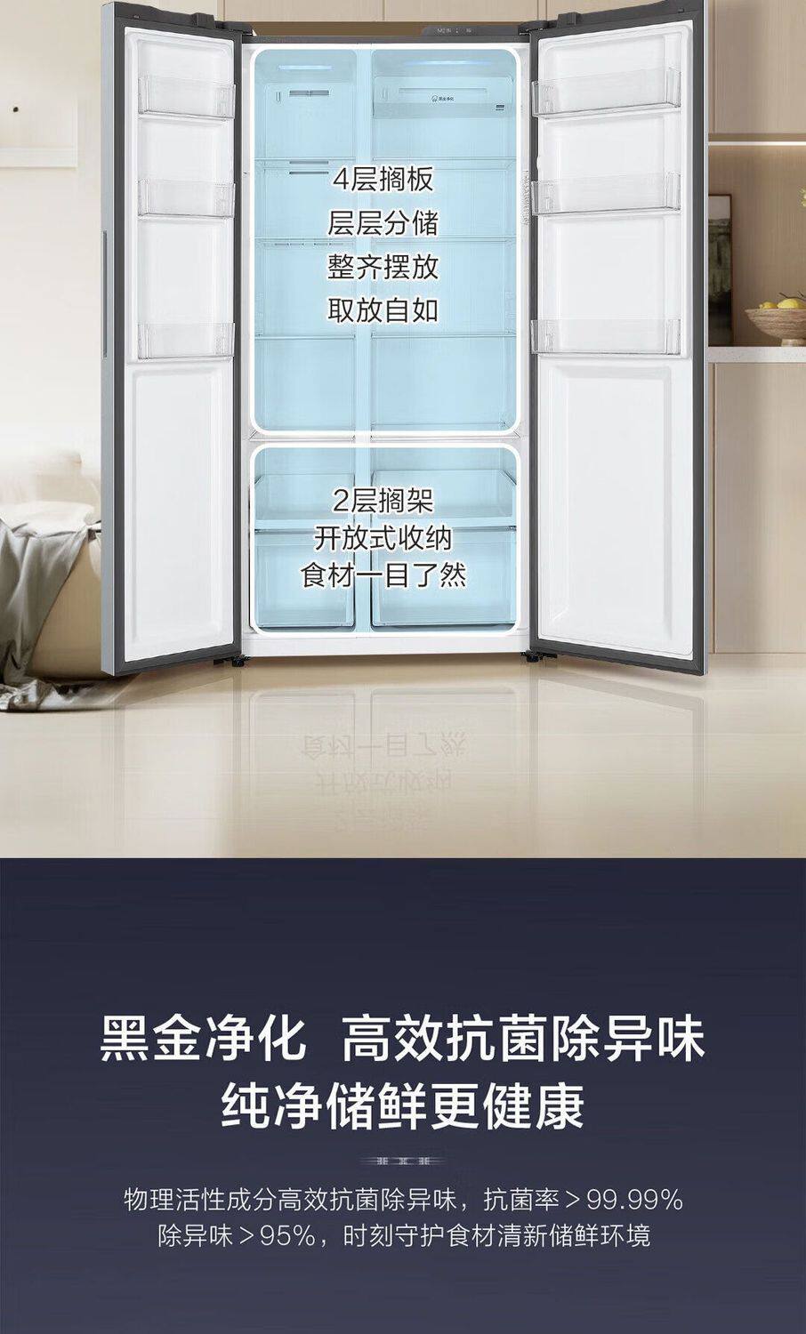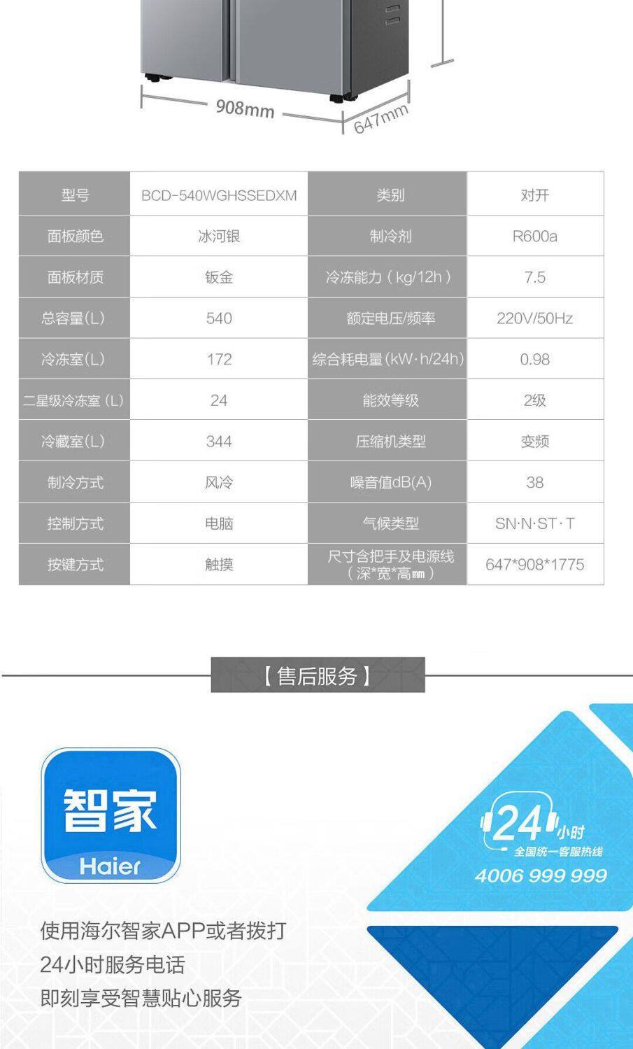 Haier Refrigerator 540L Double-Door Side-By-Side Household Frost-Free Ultra-Thin Large Capacity Bcd-540Wghssedxm