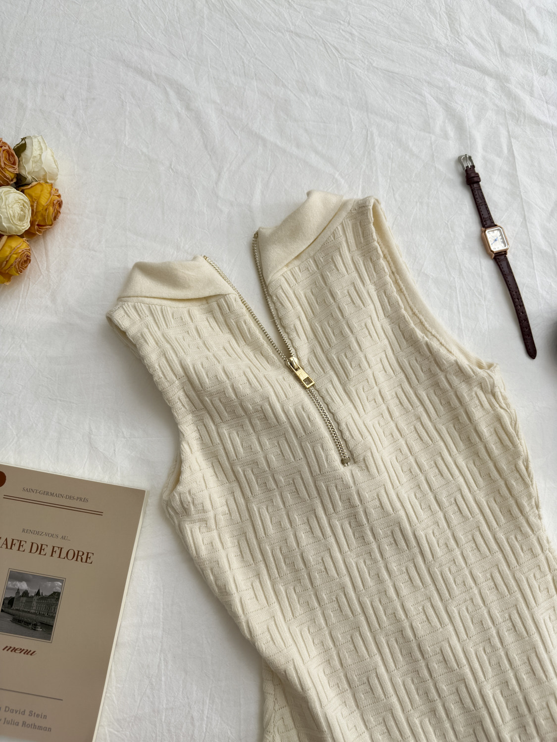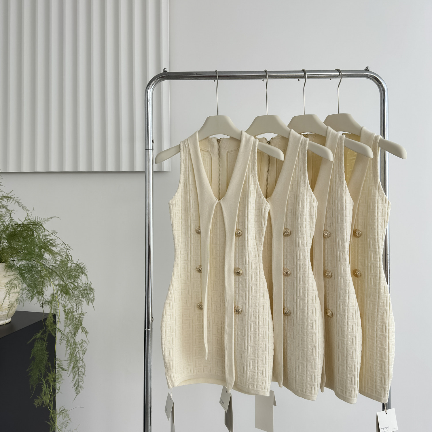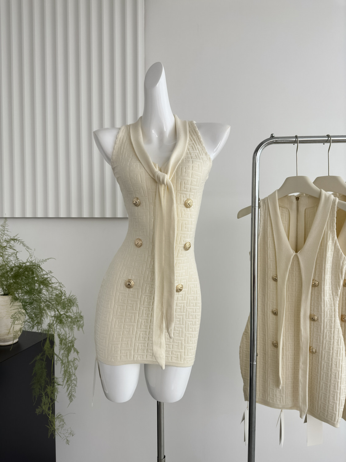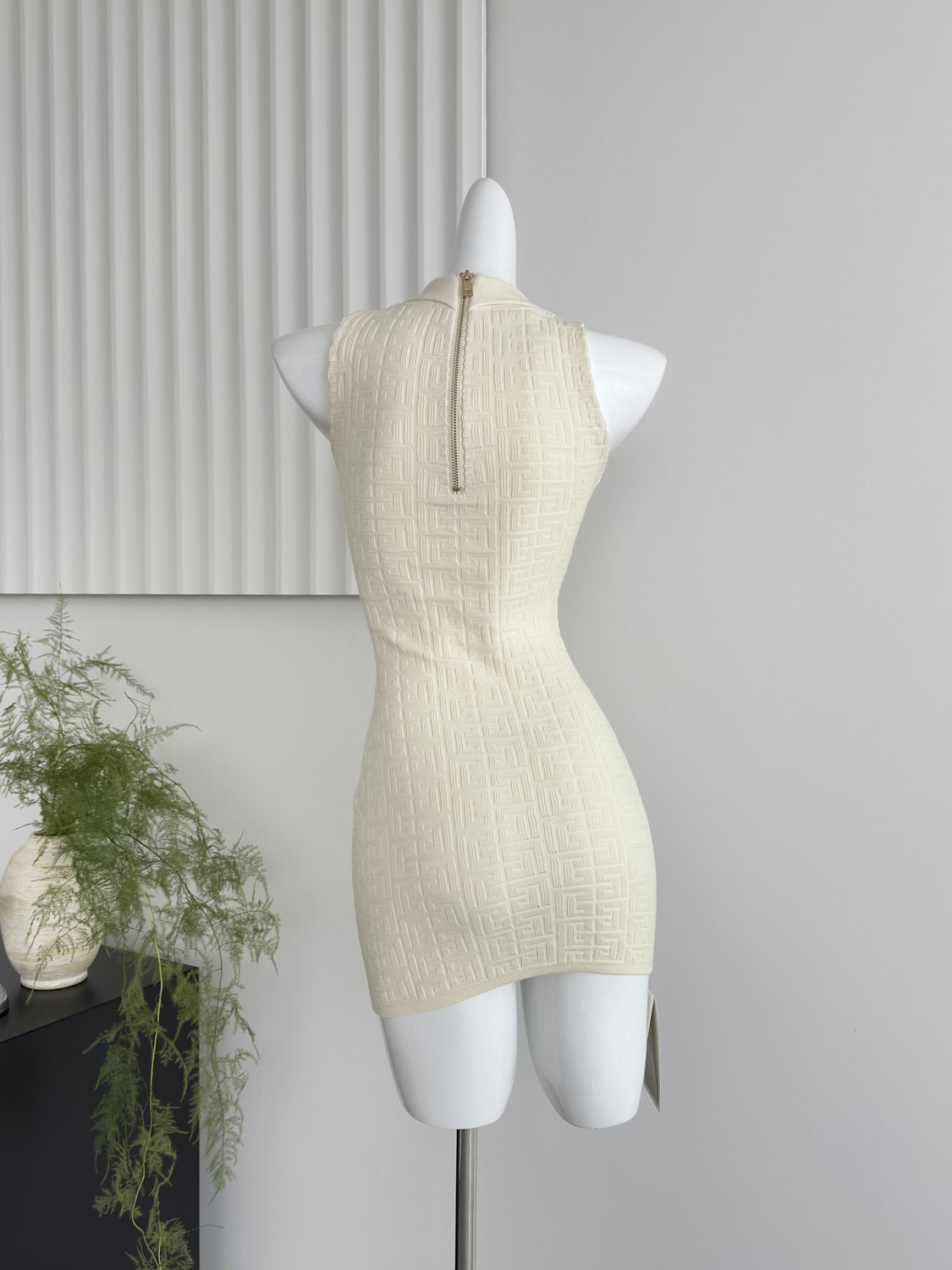 Lin Xi Xi White Gold Luxury Style Chanel-Inspired Socialite Heavy Jacquard Ribbon Slim Fit Bodycon Sleeveless Dress