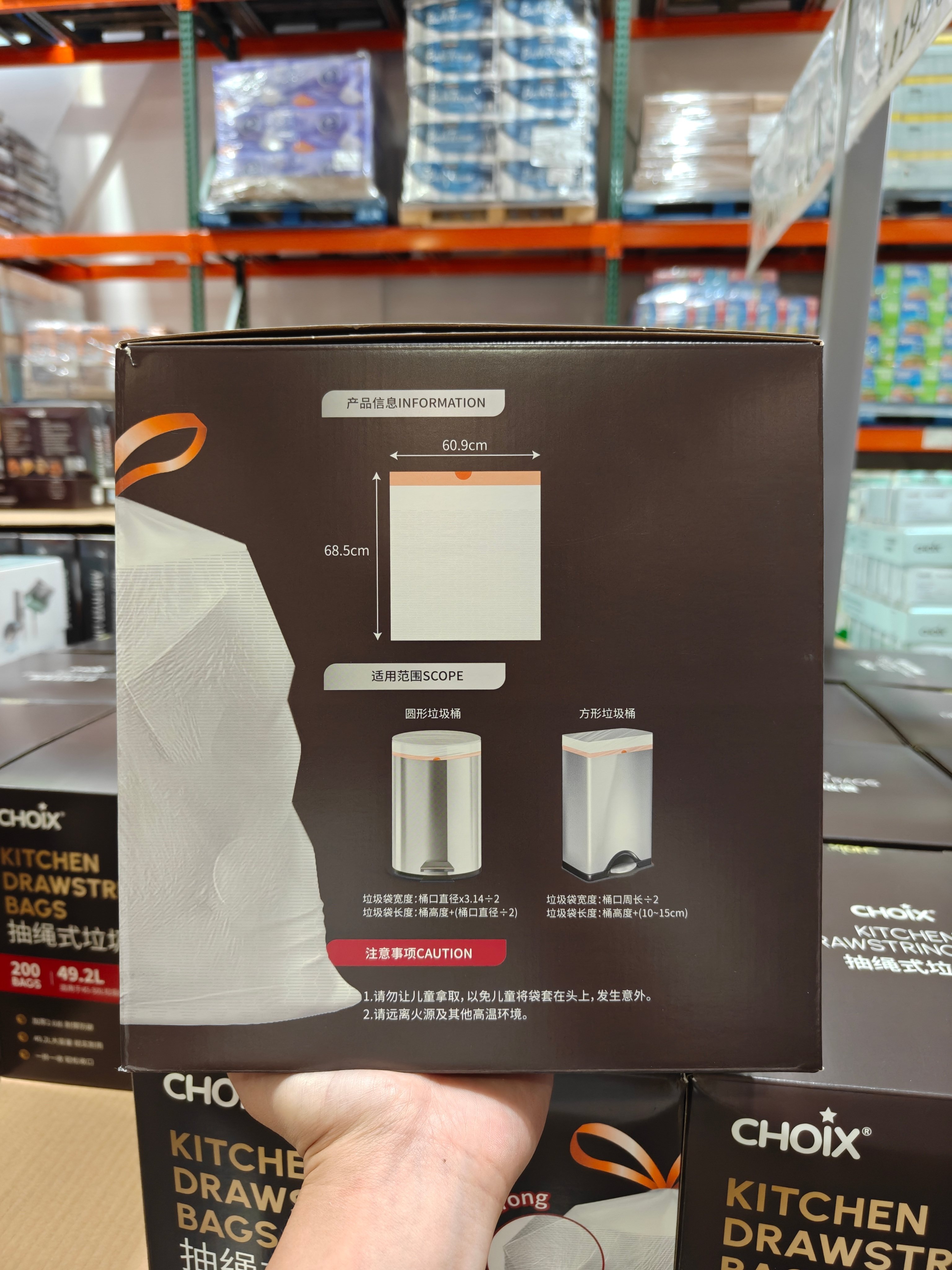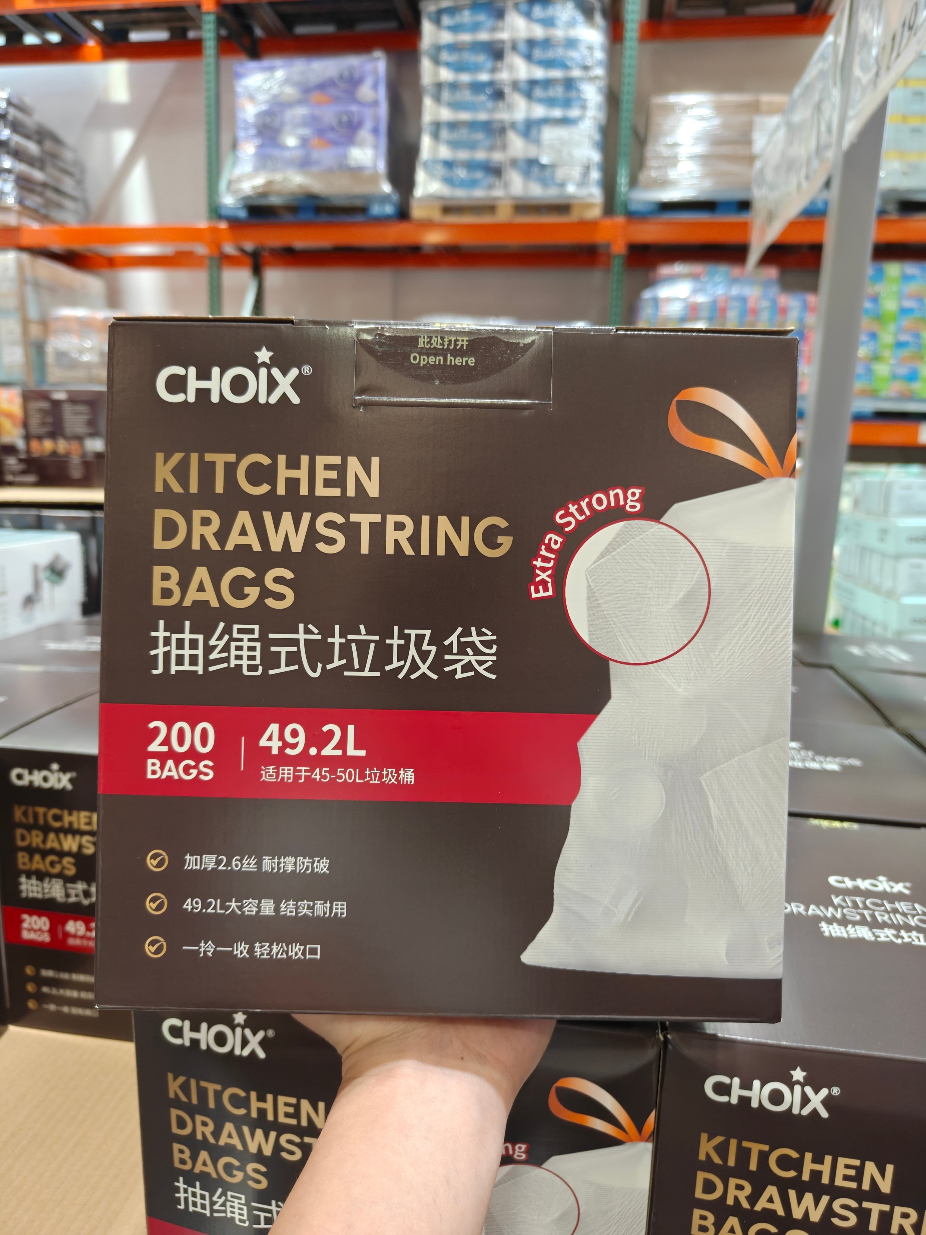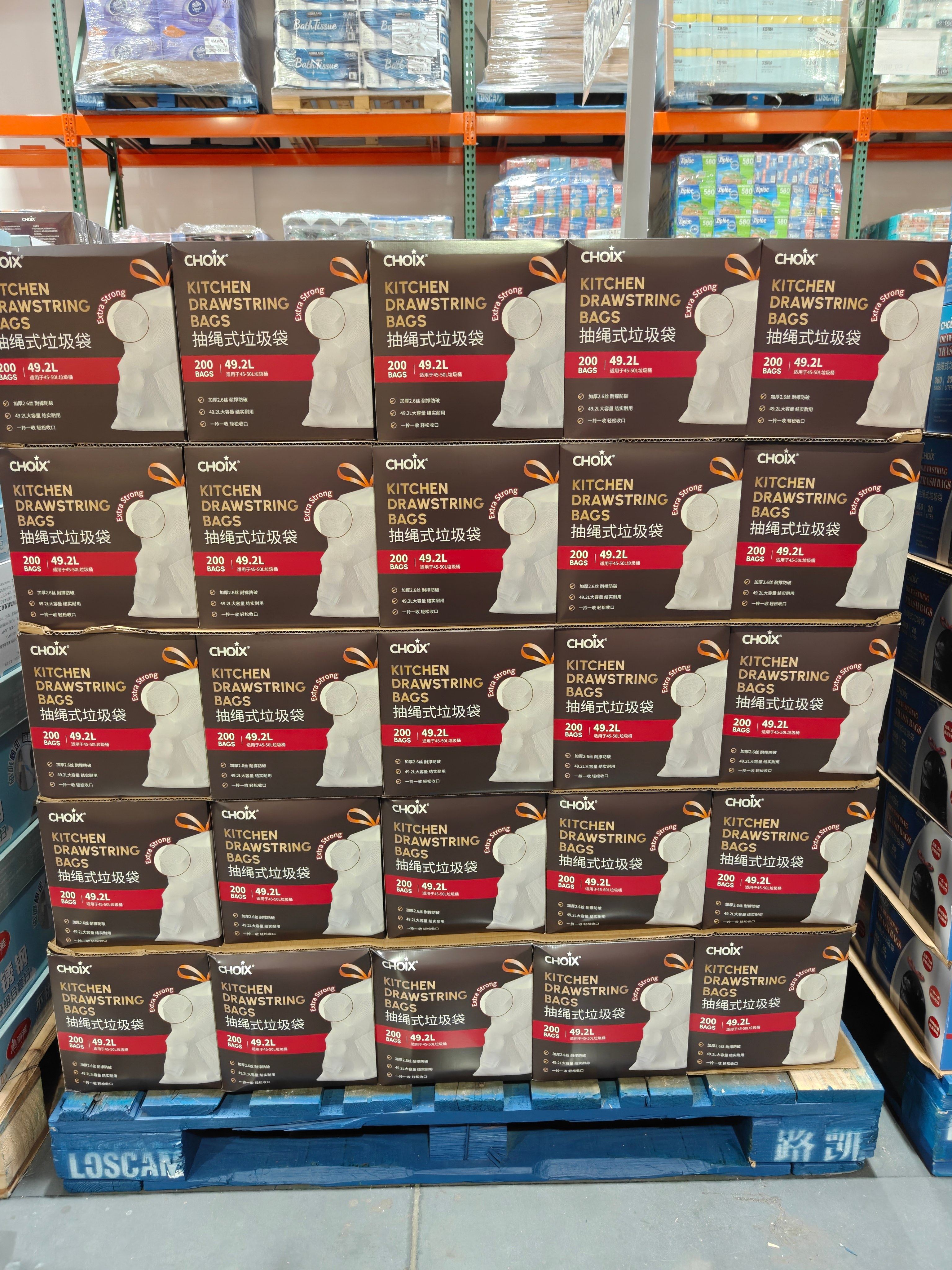 Costco Choix Trash Bags, Multi-Purpose Drawstring Pull-Out Type for Home Kitchen Use