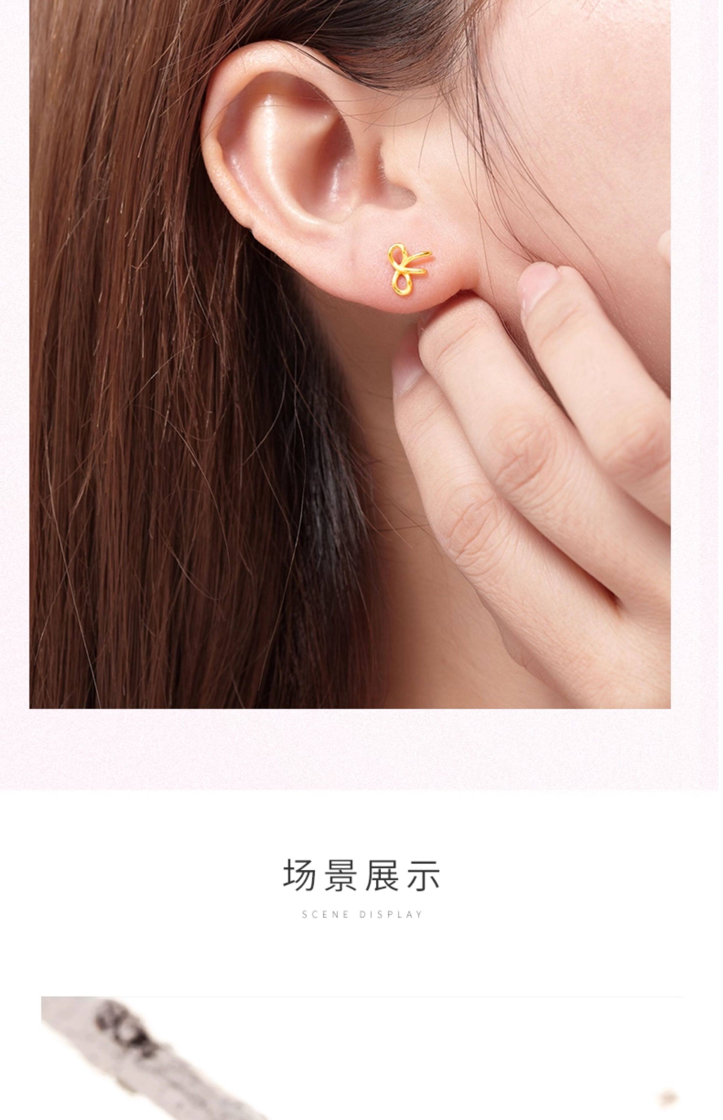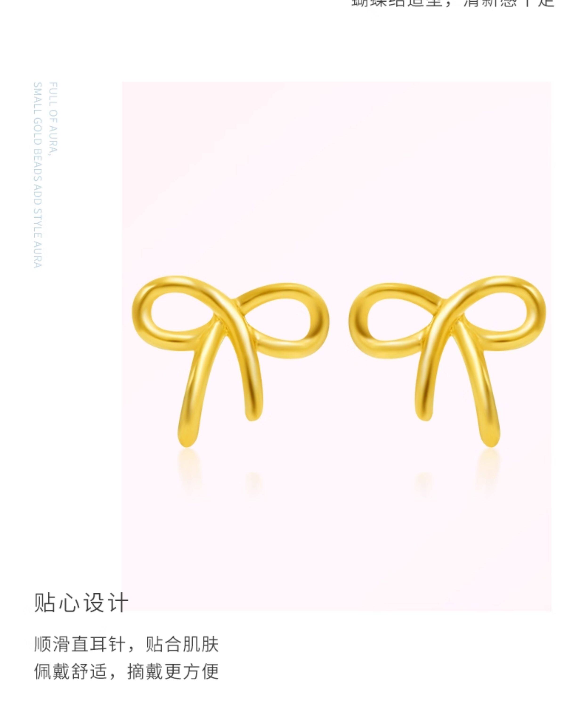 New Year's gift Zhou Taisheng's bow-knot gold earrings for women, fully priced pure gold fugitive princess earrings for pierced ears for girls