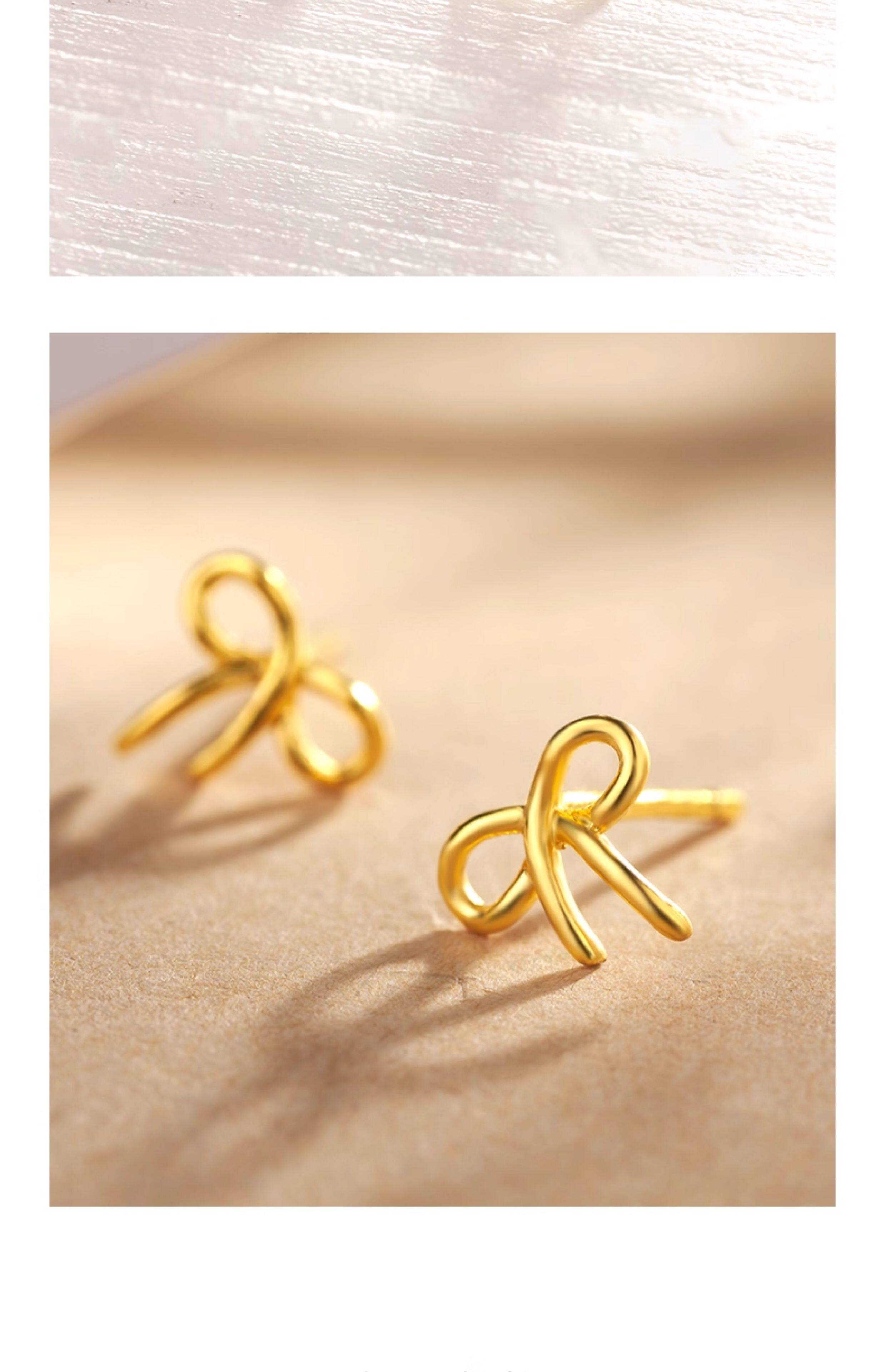 Specification Gold bow earrings - one pair/free silicone earplugs