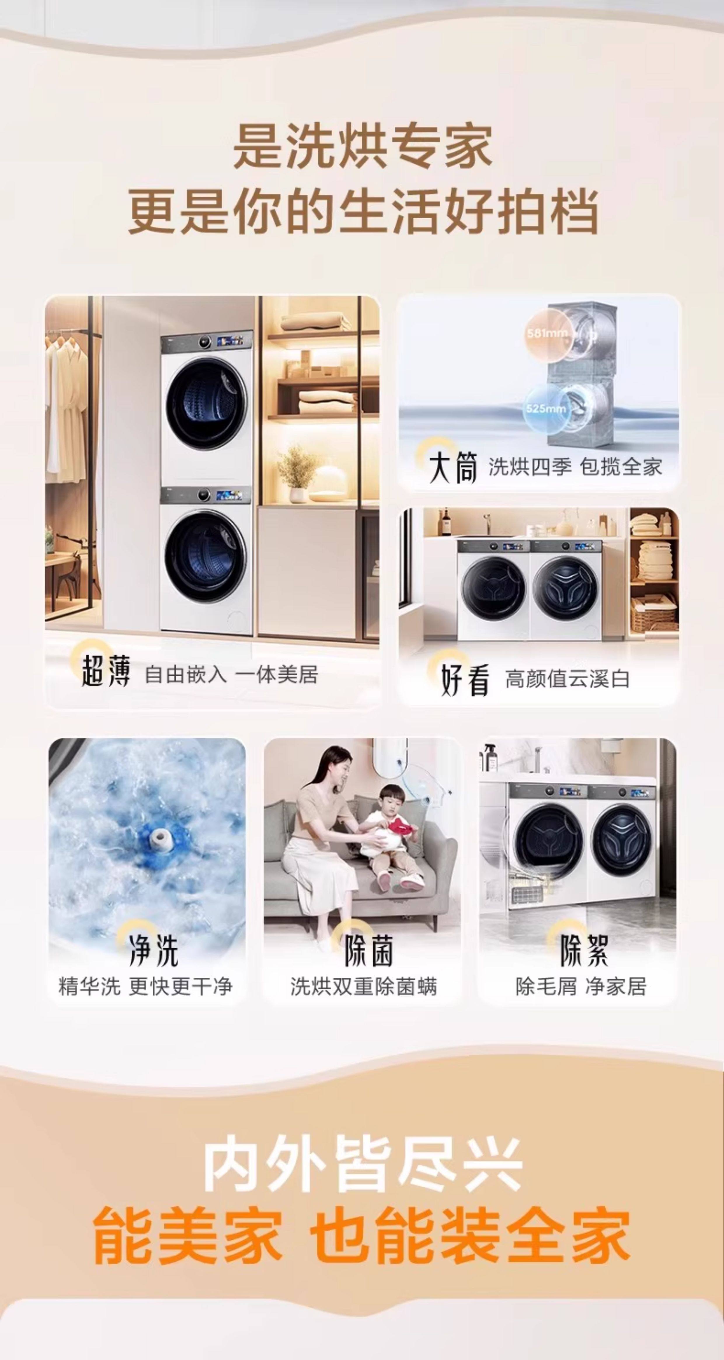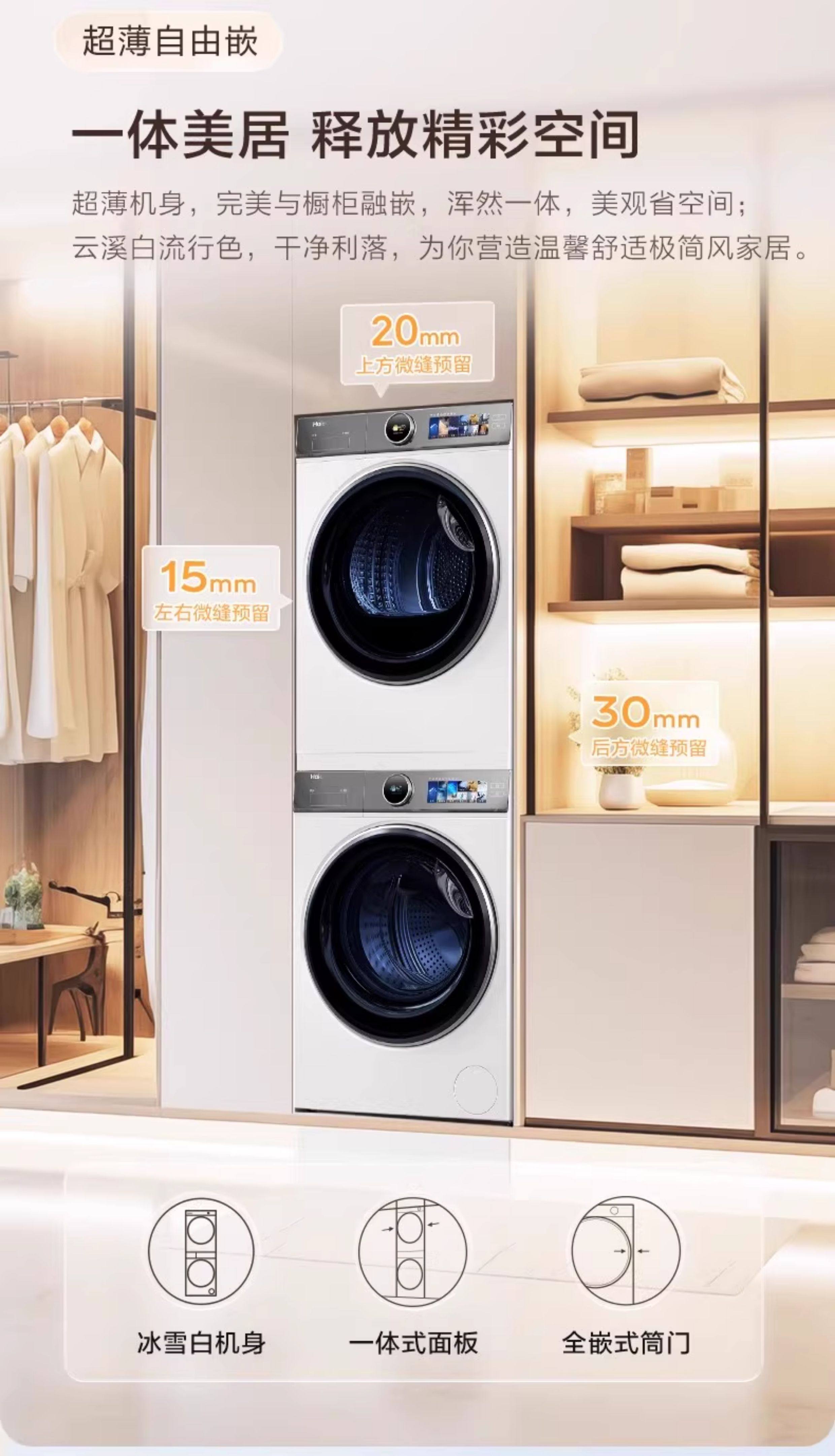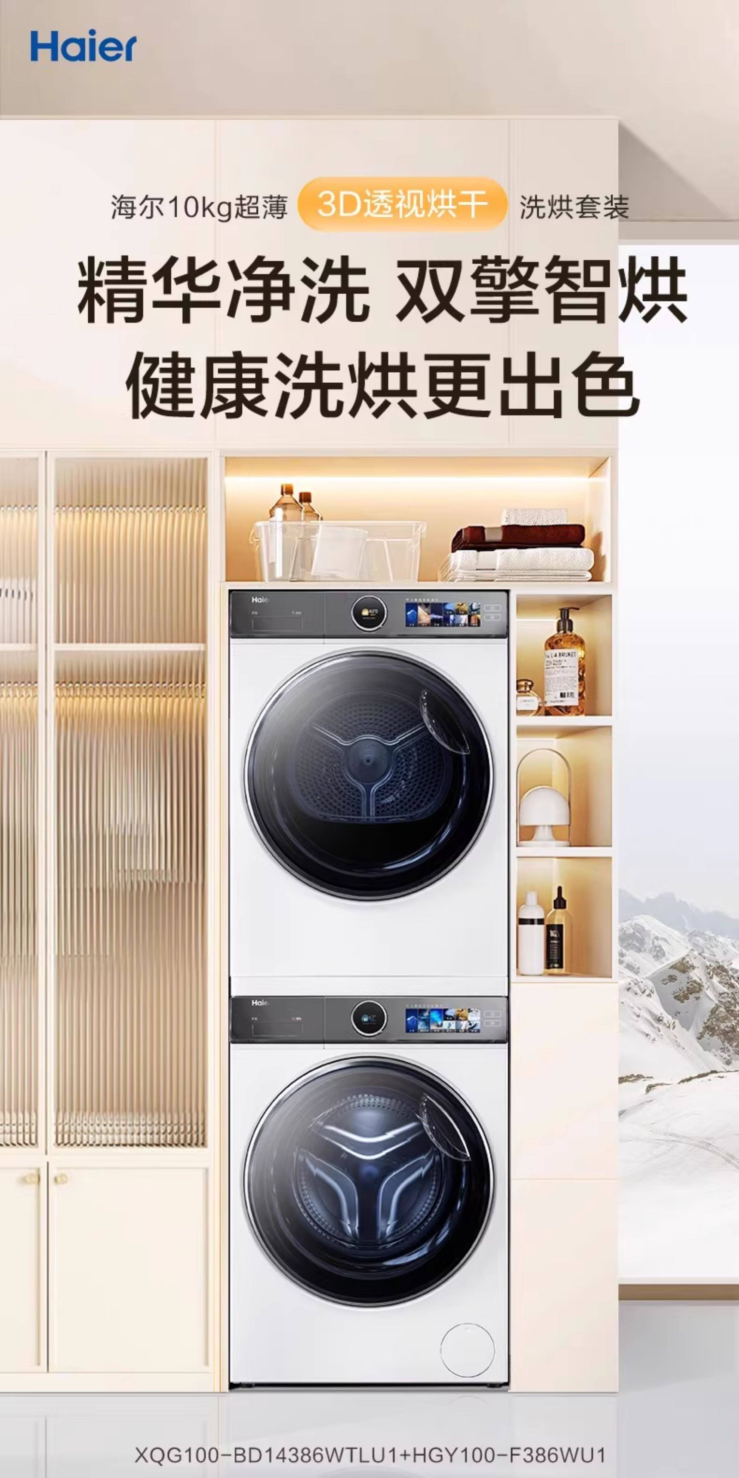 [Haier Yunxi] Slim Beauty 386 White Washing and Drying Set Smart Essence Washing Machine 3D Dual Engine Heat Pump Dryer