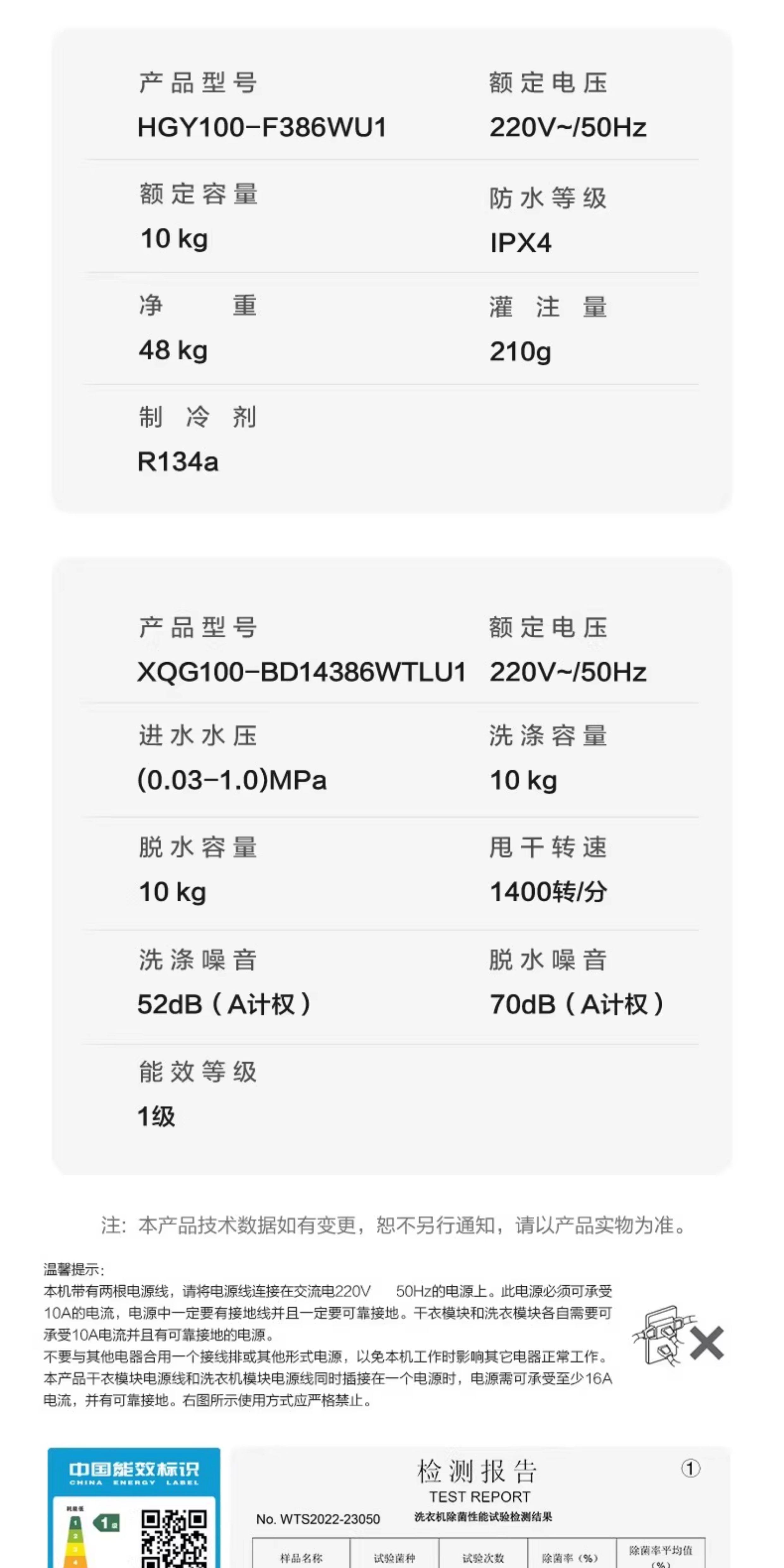 Model XQG100-BD14386WTLU1+HGY100F386WU1