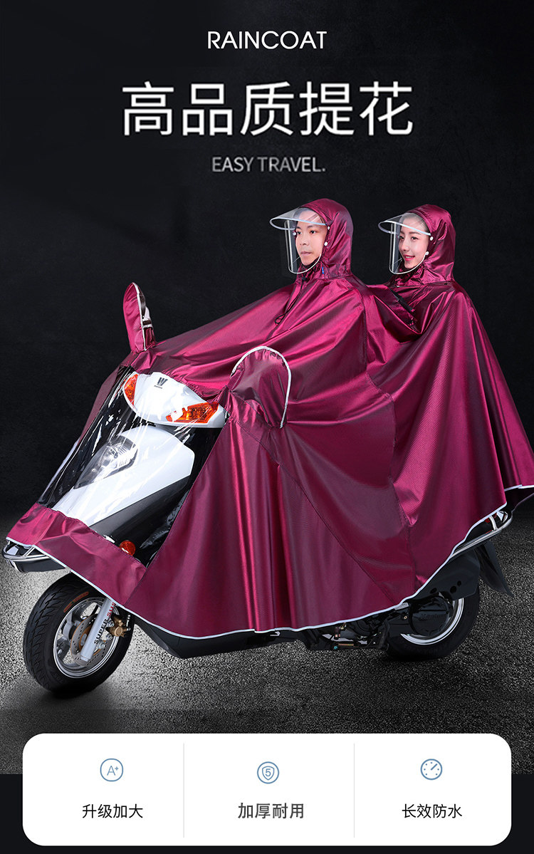 Electric Motorcycle Raincoat for Men and Women, Single or Double Rider, Long Full-Body Rainproof Poncho, Extra Large and Thick for Riding