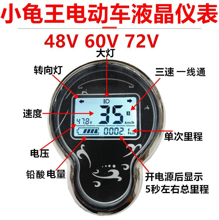 Xiaoguiwang electric vehicle LCD instrument 48V60V72 electric motorcycle code meter assembly battery vehicle voltage display universal