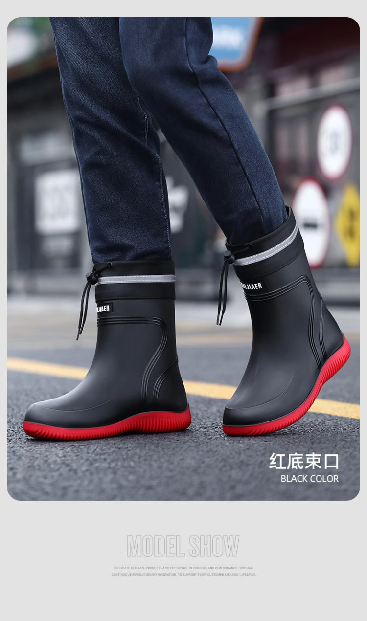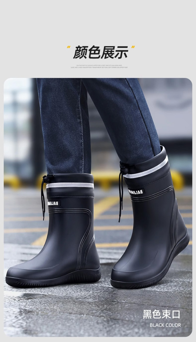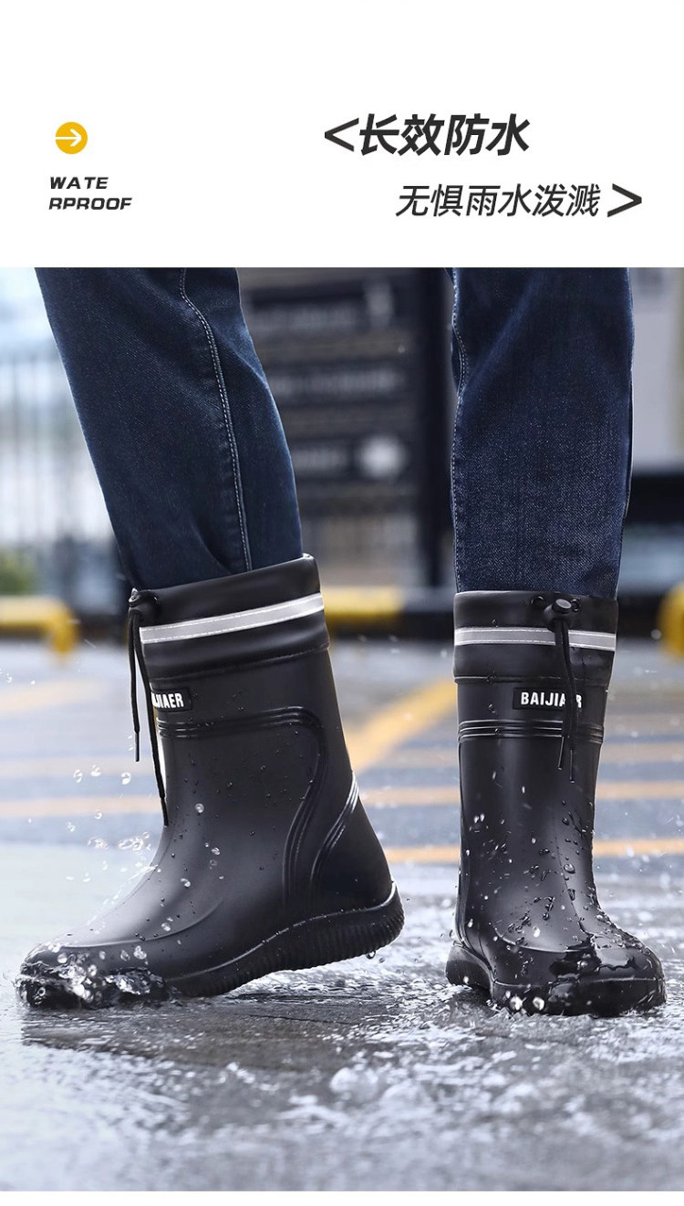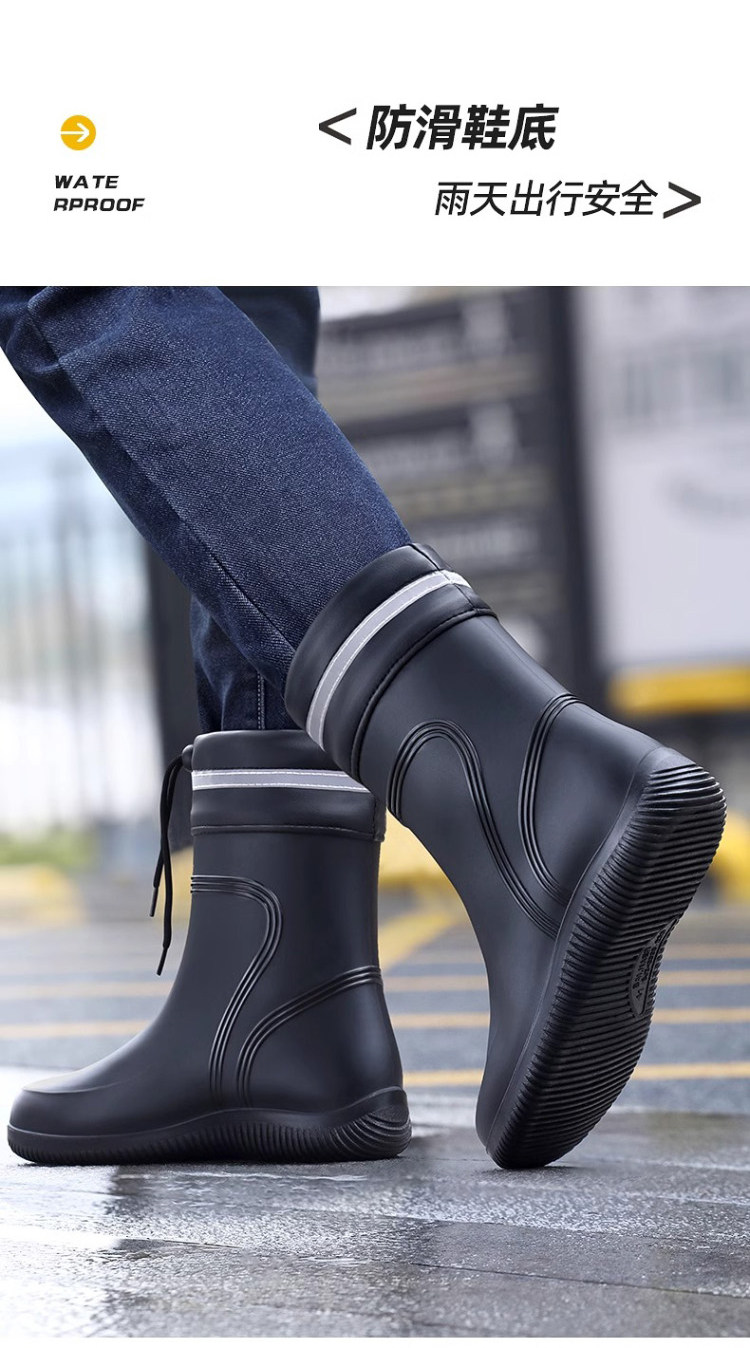 Rain Boots for Men, Waterproof and Non-Slip, Mid-Calf and Short-Calf Rain Boots, Thickened and Wear-Resistant Work Rubber Shoes for Kitchen Delivery Riders