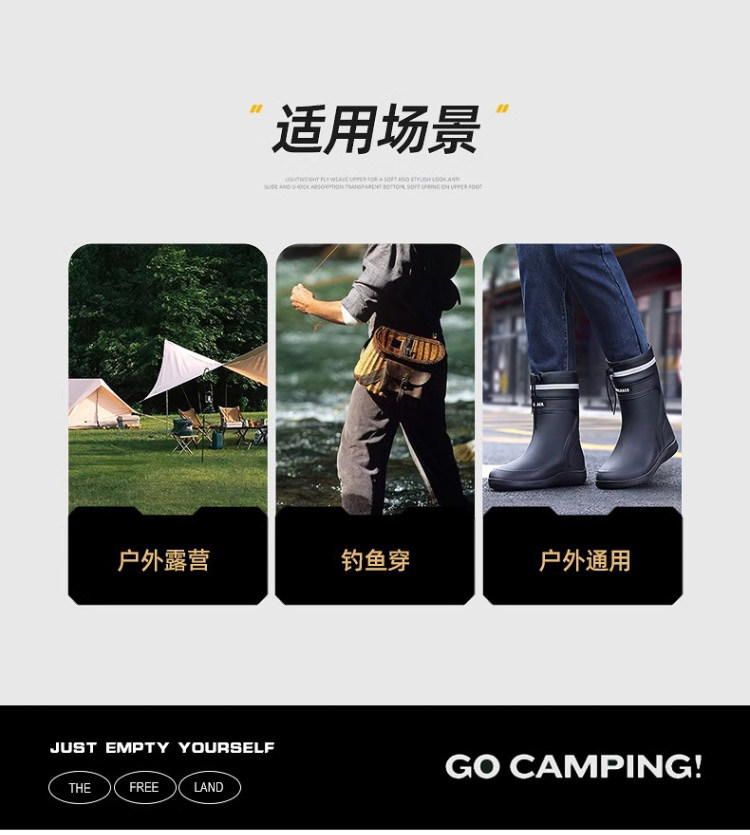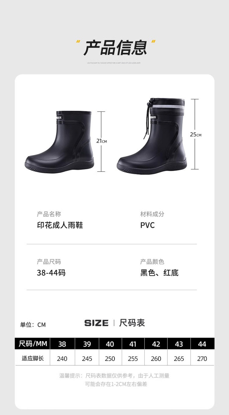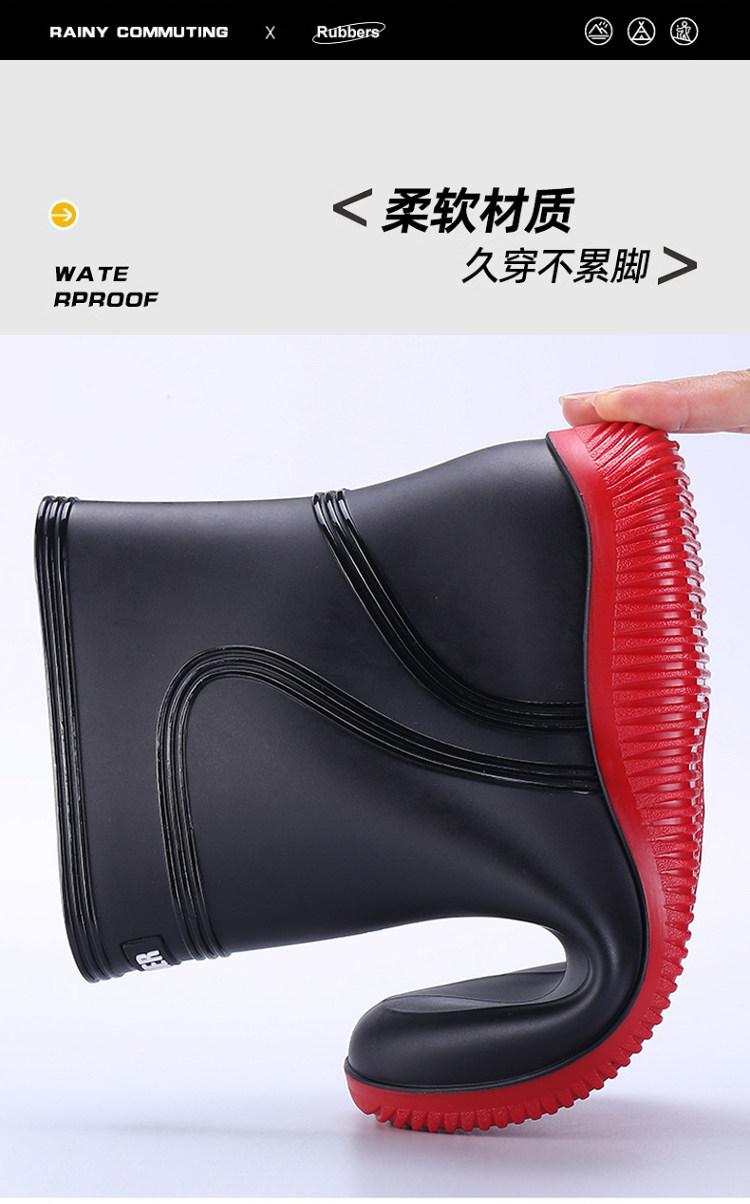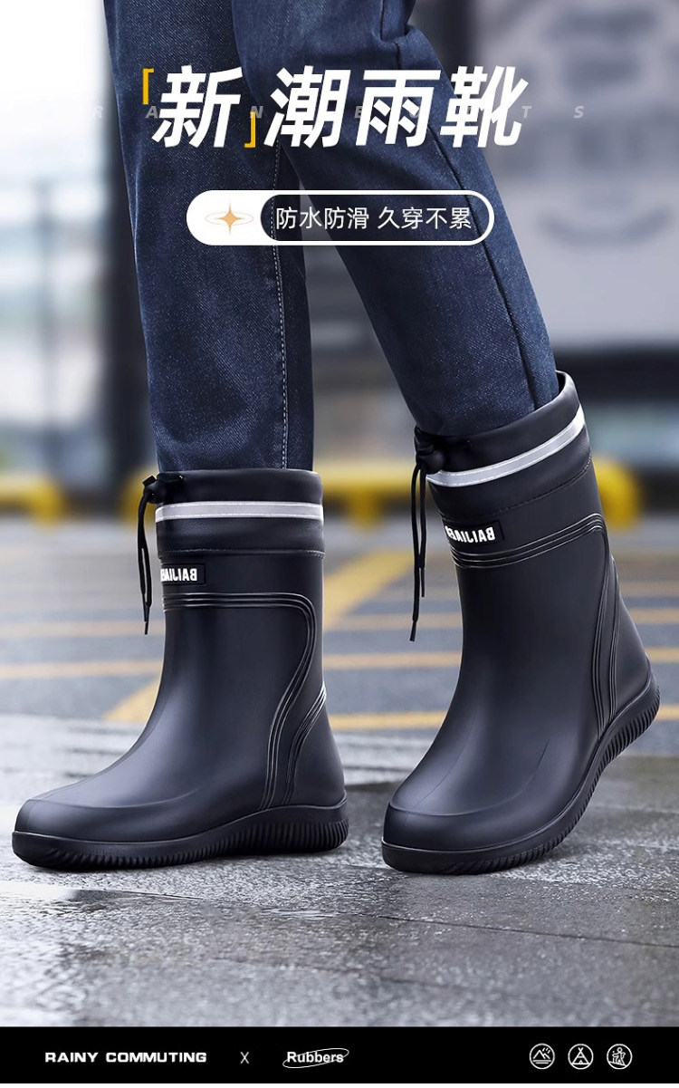 Rain Boots for Men, Waterproof and Non-Slip, Mid-Calf and Short-Calf Rain Boots, Thickened and Wear-Resistant Work Rubber Shoes for Kitchen Delivery Riders