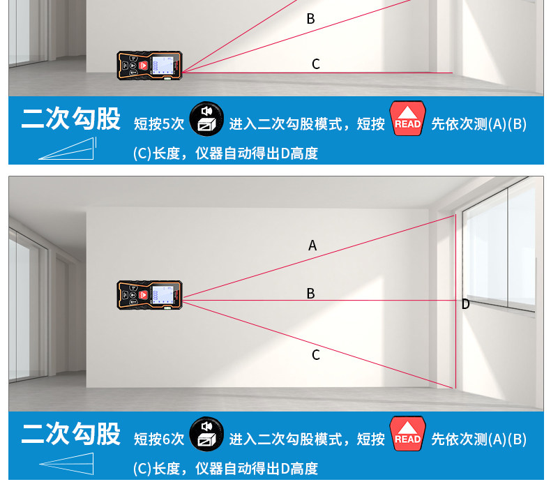 Delixi laser rangefinder infrared high-precision handheld charging room instrument electronic ruler installation measuring instrument