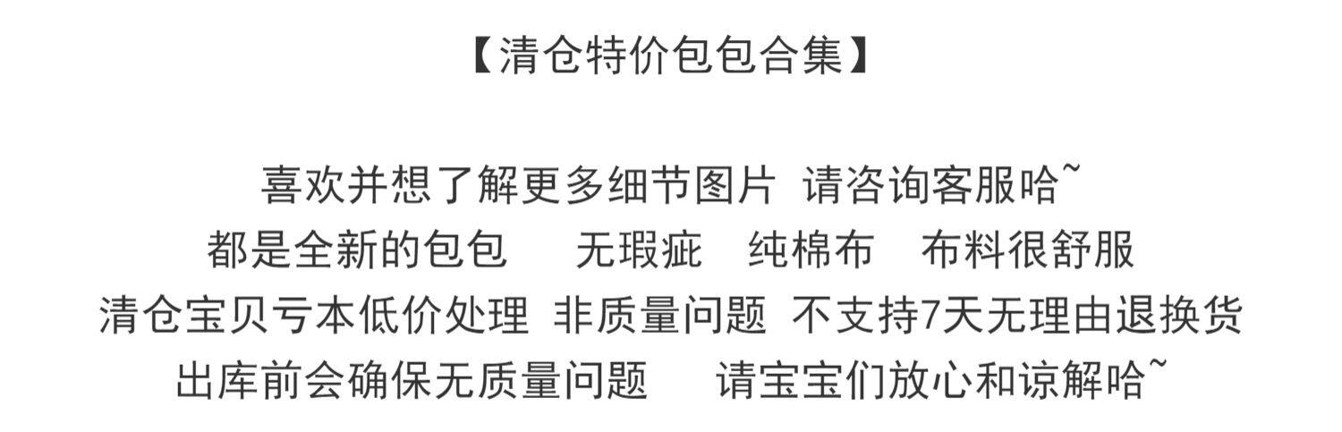Color Classification Must Read before Bidding: Brand New Clearance Items, No Returns or Exchanges!,Random New Cloth Bag 9.9 Free Shipping,Pink Rainbow Small Shoulder Bag,Pink Rainbow Large Shoulder Bag,Vintage Red Floral Print,Green Bag,White Waffle Makeup Bag,Japanese Style Shoulder Crossbody Bag,Pink and Purple Horizontal Stripes,Beige Canvas,Lace-Up Paisley,Cashew Flower White,Cashew Flower Black,Green Letter Green Shoulder Bag,Black Canvas Bag,Letter Knit Coffee Brown,Brown Plush Handbag,Black Schoolbag, Bottom Length 28, Height 38, Width 13,Apricot Toast Bag,Yellow Plaid,Green and White Grid,Flocked Flowers,Sakura Lace Pink,Pink Bow,Blue Bow,Pink Stripes,Blue Stripes,White Bow,Blue and White Porcelain,Candy Knit Crossbody Bag,Bamboo Rhyme Bag,Ink Green Floral,Budding Green Bag