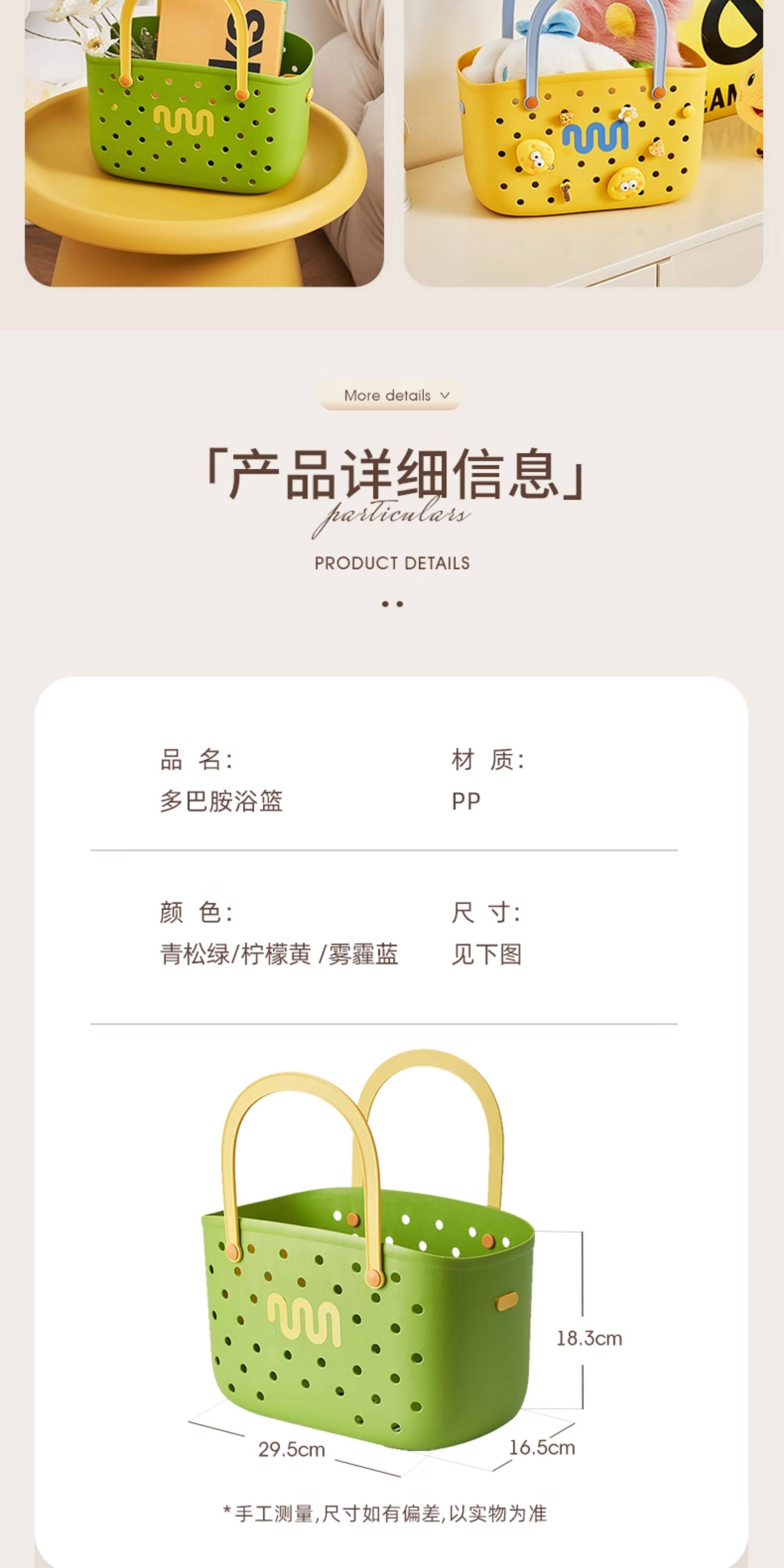 Sort by color Dopamine bath basket + soap dish haze blue,Dopamine Bath Basket + Soap Dish Lemon Yellow,Dopamine bath basket + soap dish turquoise green,Dopamine bath basket + soap box + trinkets haze blue,Dopamine bath basket + soap dish + trinkets lemon yellow,Dopamine bath basket + soap box + trinkets turquoise green,Bath basket dopamine-haze blue,Dopamine bath basket - haze blue with accessories delivered,Dopamine Bath Basket - Haze Blue with built-in sidebar,Dopamine bath basket - haze blue with accessories + built-in sidebar,Bath Basket Dopamine Bath Basket-Lemon Yellow,Dopamine Bath Basket-Lemon Yellow Delivered with Accessories,Dopamine Bath Basket - Lemon Yellow with built-in sidebar,Dopamine bath basket - lemon yellow with accessories + built-in sidebar,Dopamine bath basket drain basket-green pine,Dopamine bath basket-turquoise with accessories delivered,Dopamine bath basket-turquoise green with built-in sidebar,Dopamine bath basket - turquoise green with accessories + built-in sidebar,Three-piece toiletry set, bath basket + soap dish + bath ball, turquoise green - hollow water filter/dopamine contrasting design,Three-piece toiletry set, bath basket + soap dish + bath ball, haze blue - hollow water filter/dopamine contrasting design,Three-piece toiletry set, lemon yellow bath basket + soap dish + bath ball, hollow water filter/dopamine contrasting color design,Bath basket + two-in-one wash cup turquoise green,Bath basket + 2-in-1 wash cup lemon yellow,Dopamine bath basket + two-in-one wash cup haze blue,Four-piece wash set, haze blue (bath basket + small washbasin + soap dish + blue wash cup),Four-piece toiletry set, lemon yellow (bath basket + small washbasin + soap dish + black toilet cup),Four-piece toiletry set, turquoise green (bath basket + small washbasin + soap dish + green toilet cup),Four-piece wash set, haze blue (bath basket + large washbasin + soap dish + blue wash cup),Four-piece toiletry set, lemon yellow (bath basket + large basin + soap dish + black toilet cup),Four-piece toiletry set, turquoise green (bath basket + large washbasin + soap dish + green toilet cup),Back-to-school five-piece set, haze blue-small size,Back-to-school five-piece set lemon yellow-small size,Back-to-school five-piece set, pine green-small size,Back-to-school five-piece set haze blue-large size,Back-to-school five-piece set lemon yellow-large size,Back-to-school five-piece set turquoise-large size,Dopamine bath basket + soap box with lid + bear hook - pine green,Dopamine bath basket + soap dish with lid + bear hook - lemon yellow,Dopamine bath basket + soap box with lid + bear hook - haze blue,Dopamine bath basket - with storage basket + bear hook - haze blue,Dopamine bath basket - with storage basket + bear hook - lemon yellow,Dopamine Bath Basket - With Storage Basket + Bear Hook - Green Pine,Wide Striped Hand Basket - Lime Green Transparent and Visible Quick Draining,Wide Striped Hand Basket - Fresh White Transparent and Visible Quick Draining