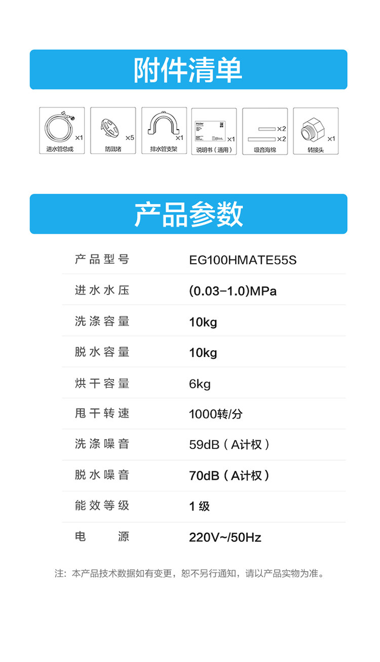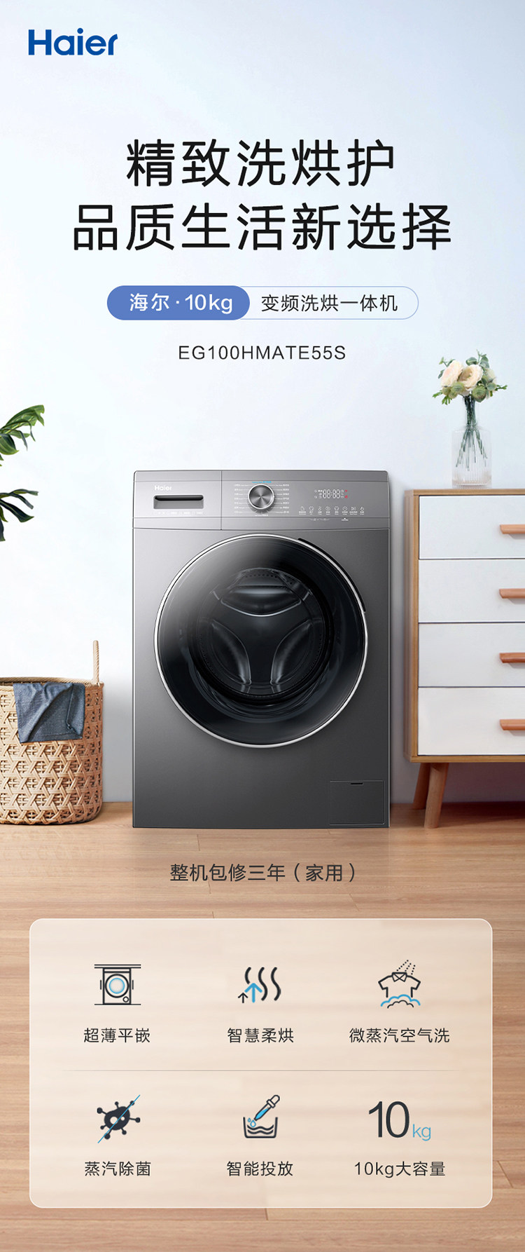 Haier Eg100Hmate55S Fully Automatic Variable Frequency Intelligent Washing and Drying Integrated Drum Washing Machine 10kg