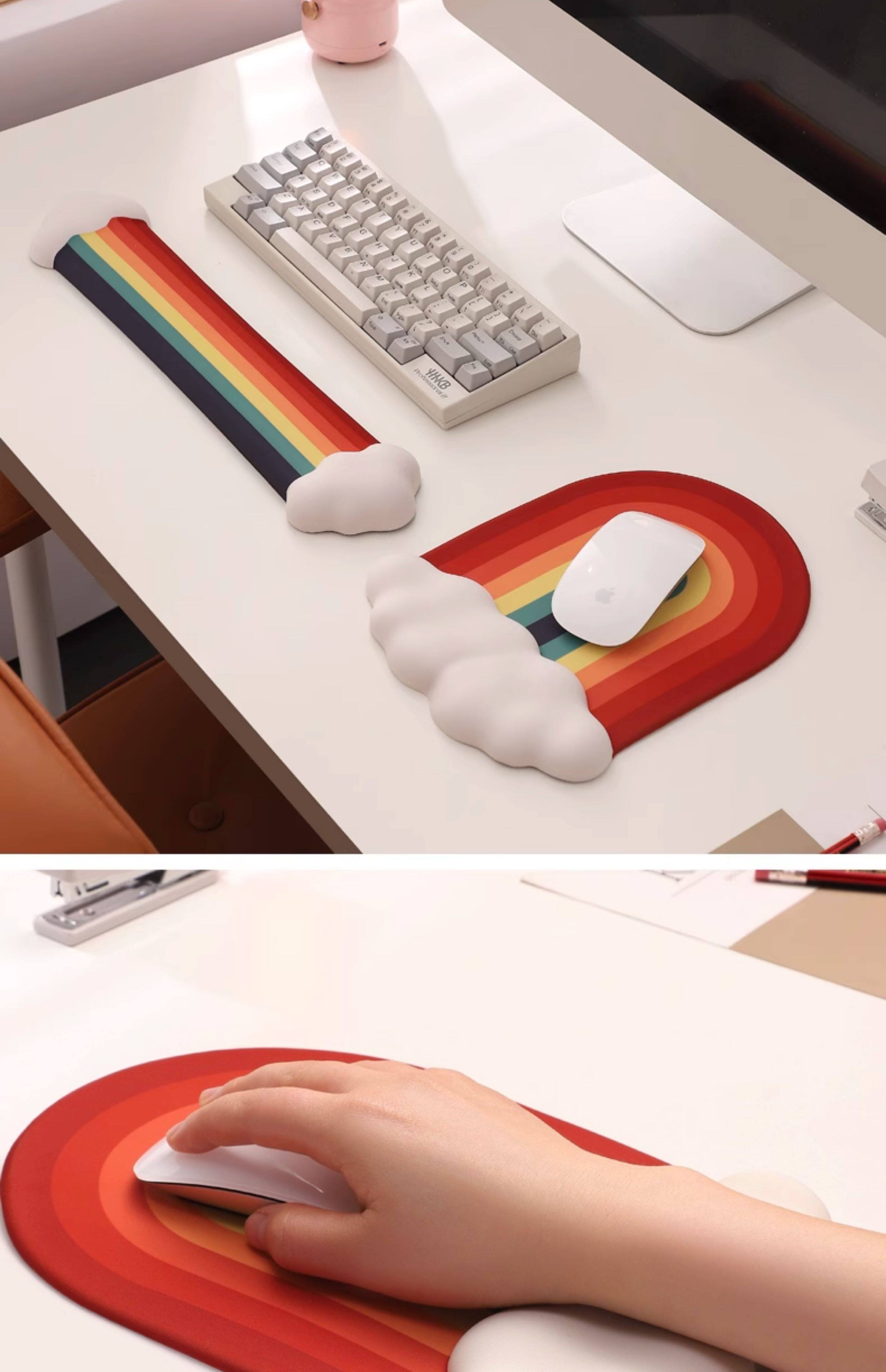 Creative Cloud Rainbow Silicone Wrist Rest Mouse Pad Memory Foam Keyboard Hand Rest Mouse Pad Cute for Girls Office