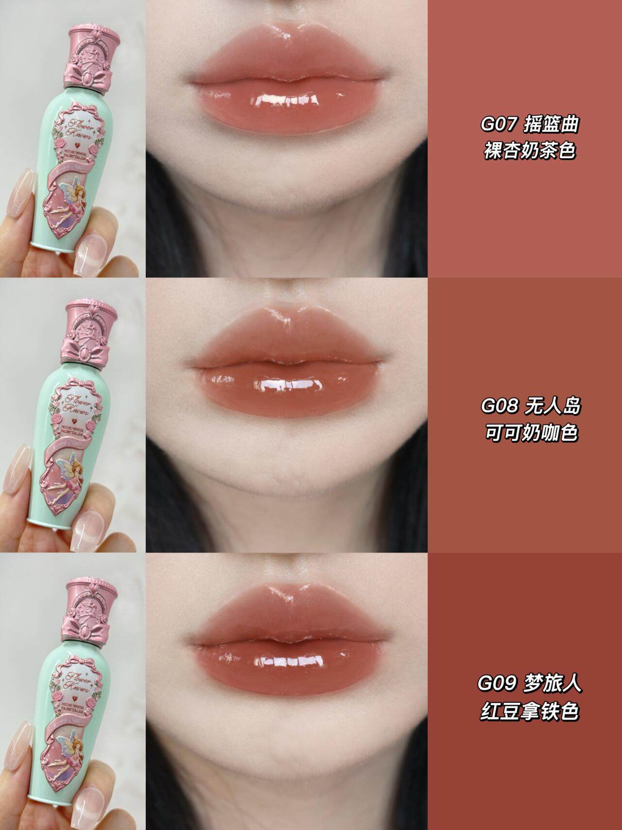 Flower Knows Midsummer Night Lip Gloss G04 Go to the Moon Film-Forming Mirror Water Gloss Moisturizing Non-Sticky Non-Transfer Lip Glaze 01