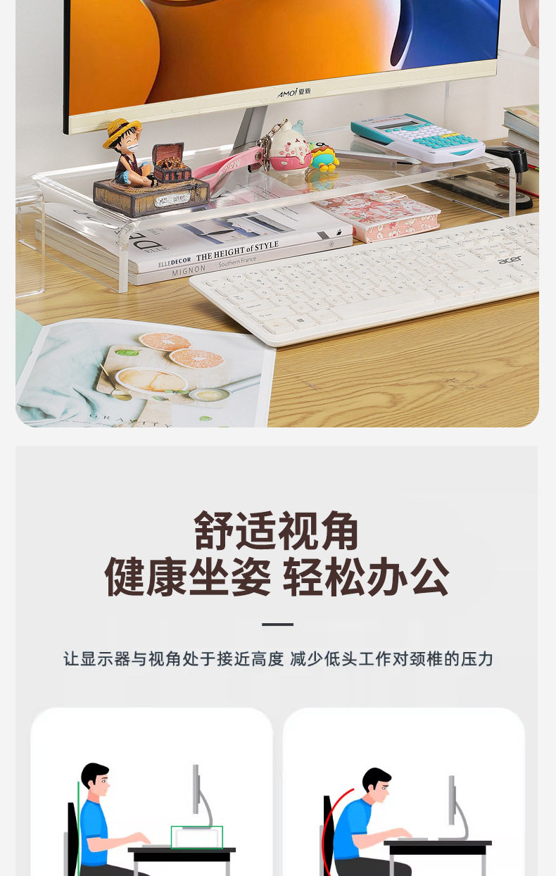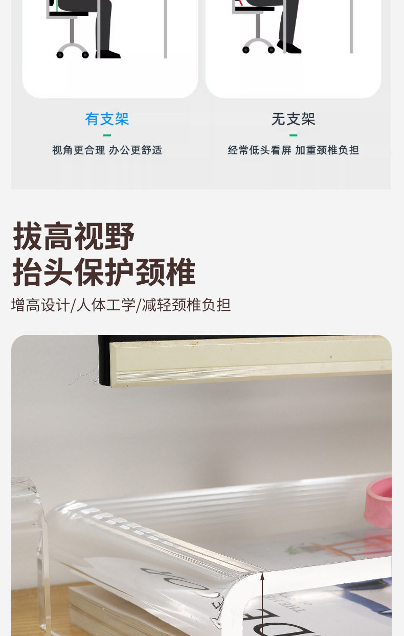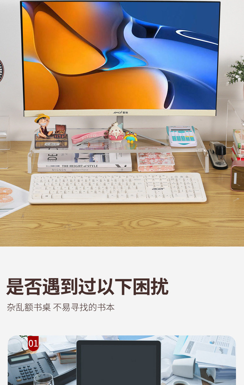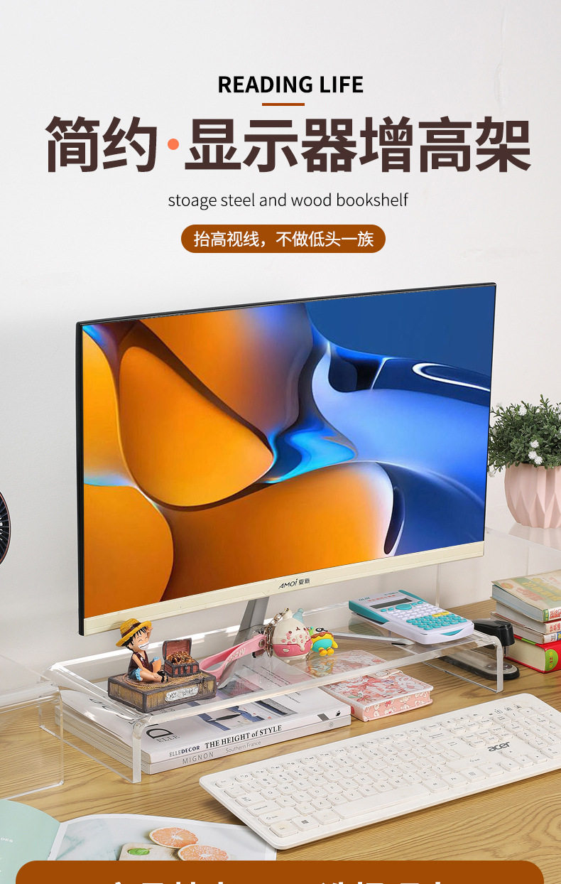 Acrylic Elevated Monitor Stand Workstation Computer Desktop Storage Laptop Office Desktop Storage Rack