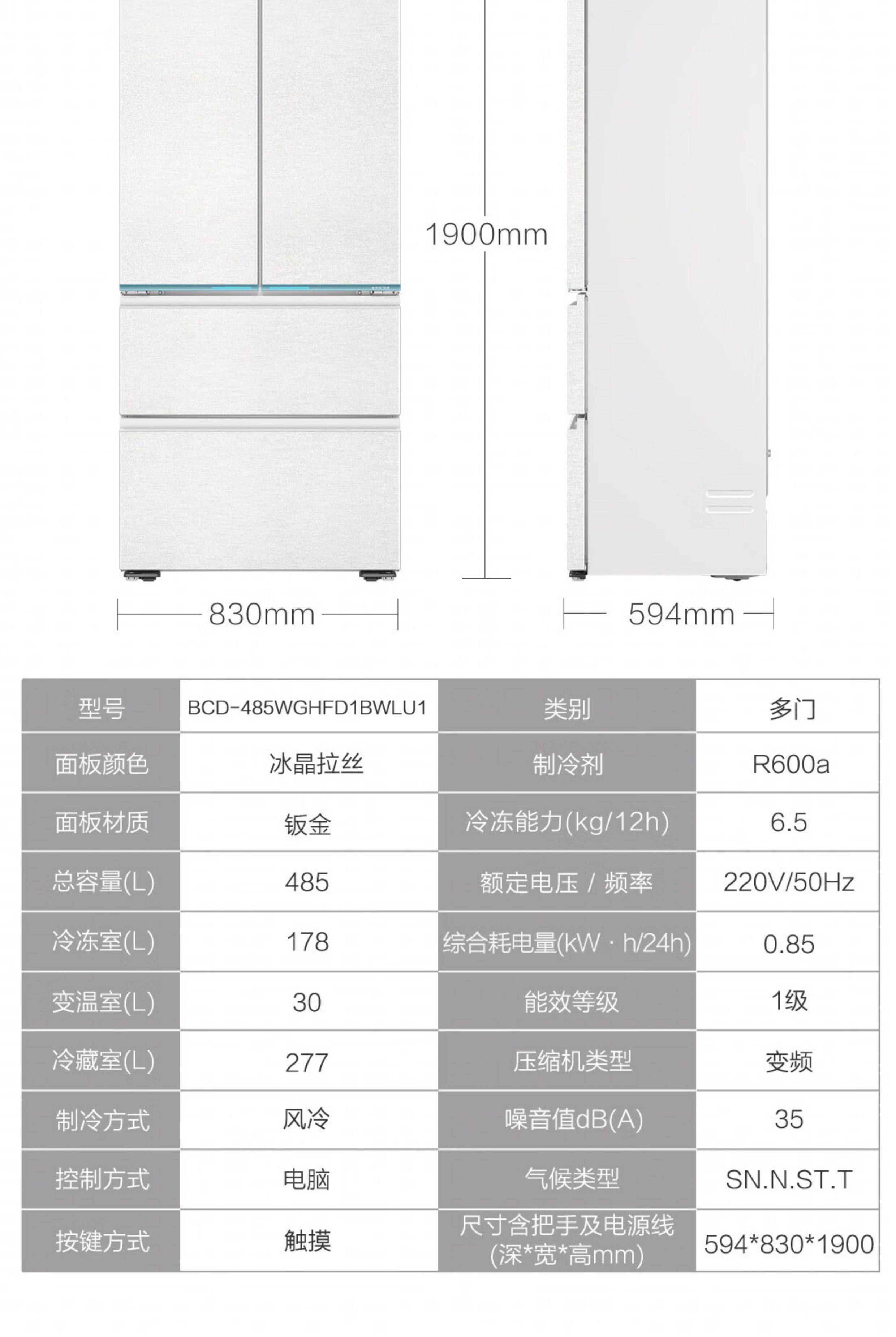 Haier Refrigerator French-Style Multi-Door Full-Space Preservation Home-Use Frost-Free Built-In Bcd-485Wghfd1Bwlu1