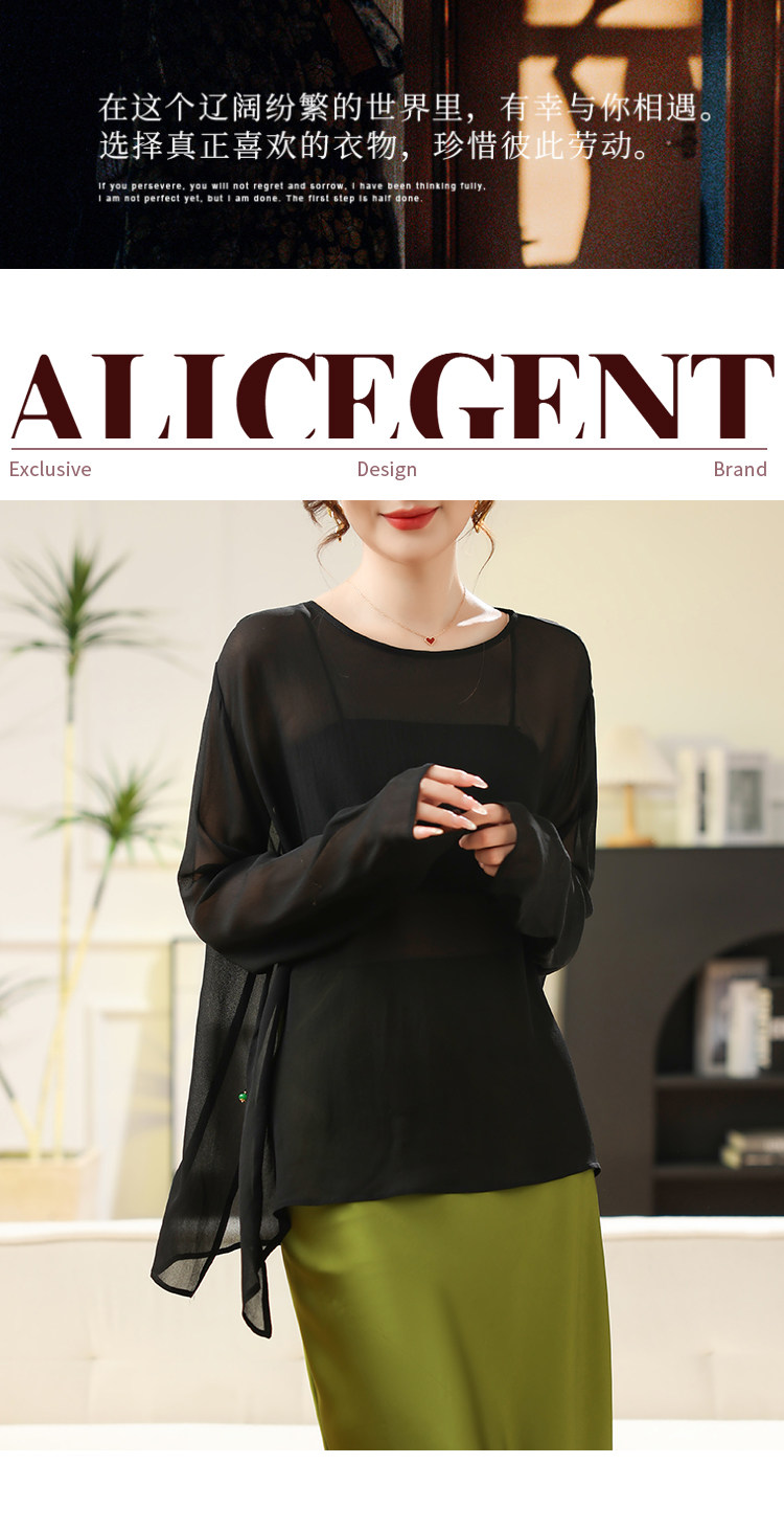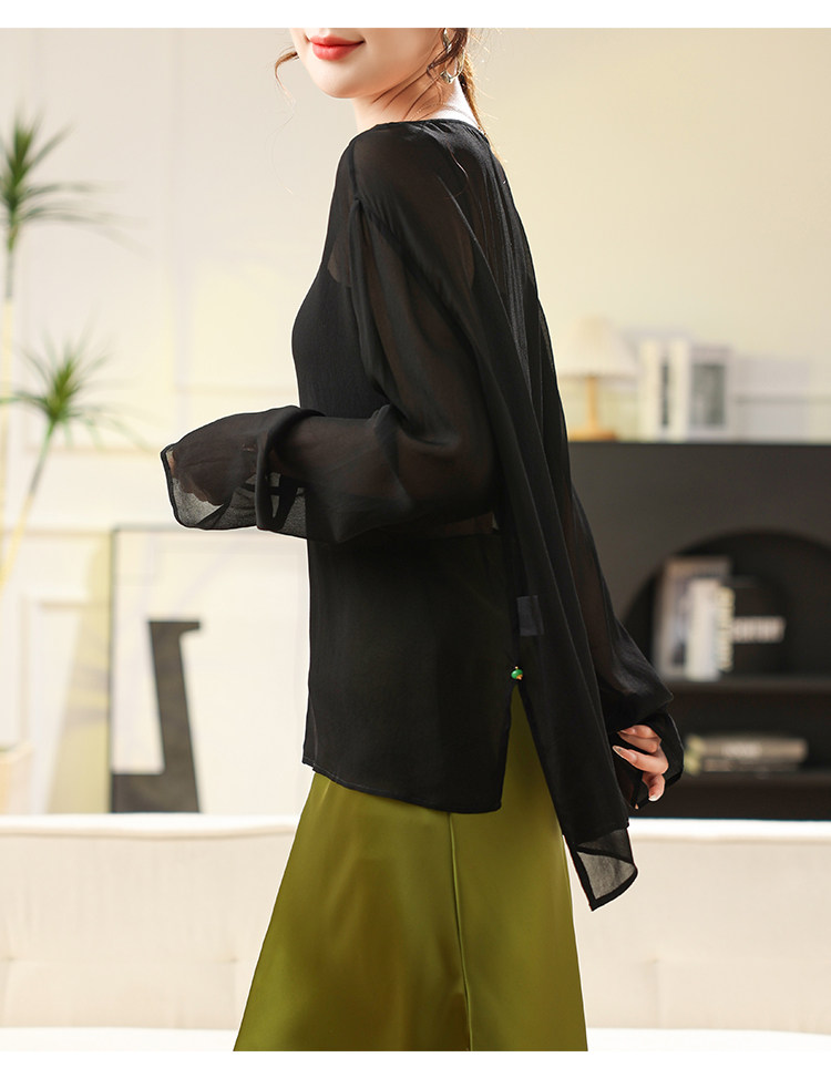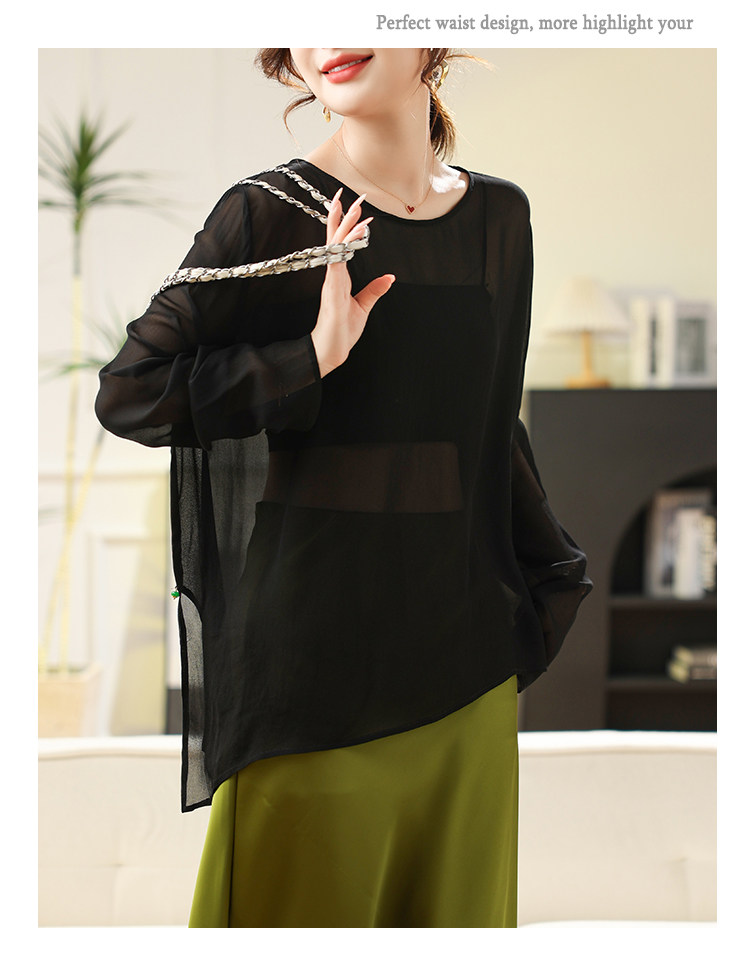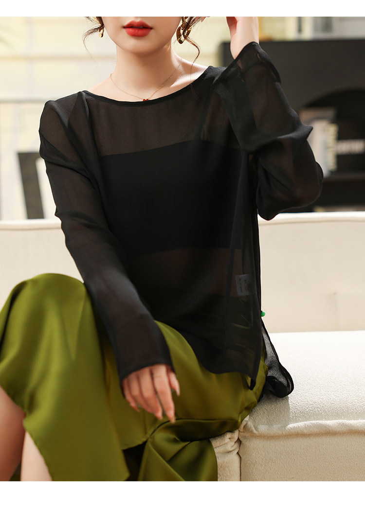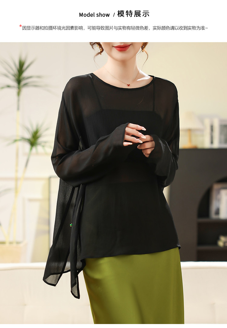 Black High-End Silk Blouse, Sheer Top for Women, 2024 Summer New Style, Lightweight Mulberry Silk Sun Protection Shirt
